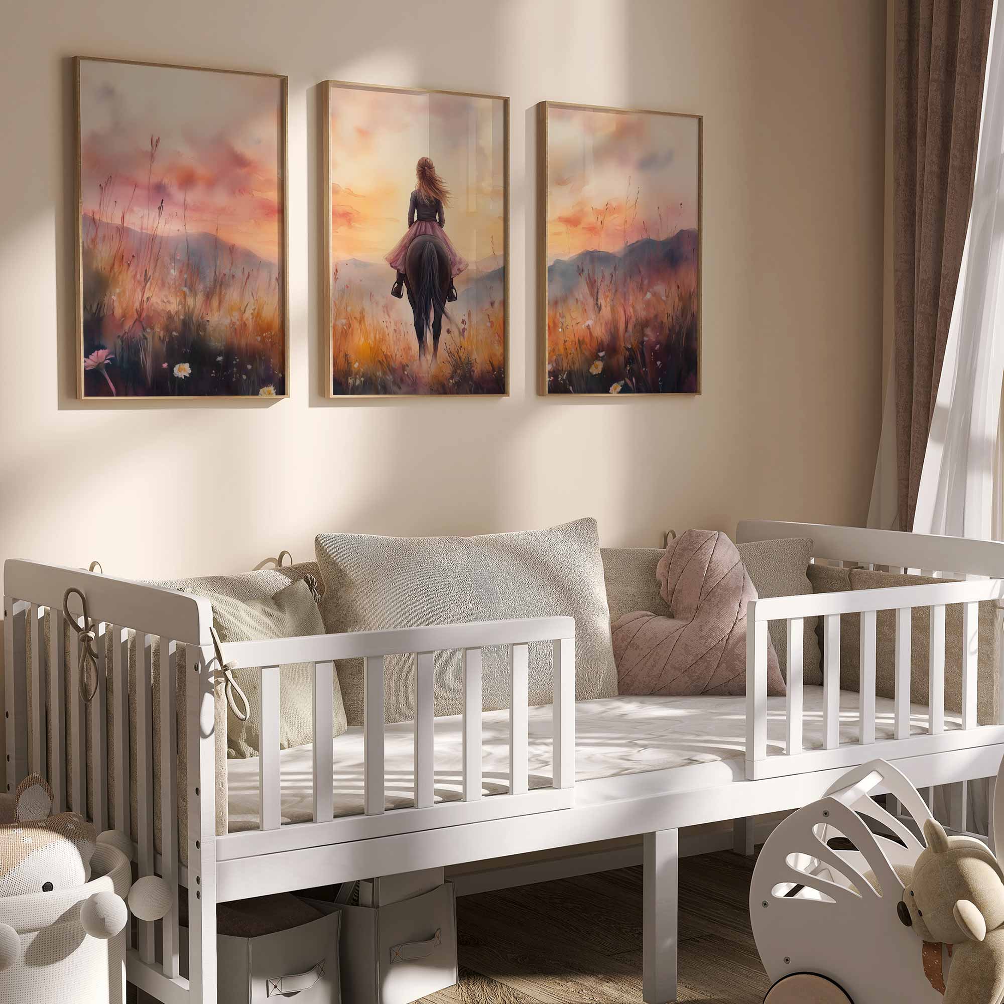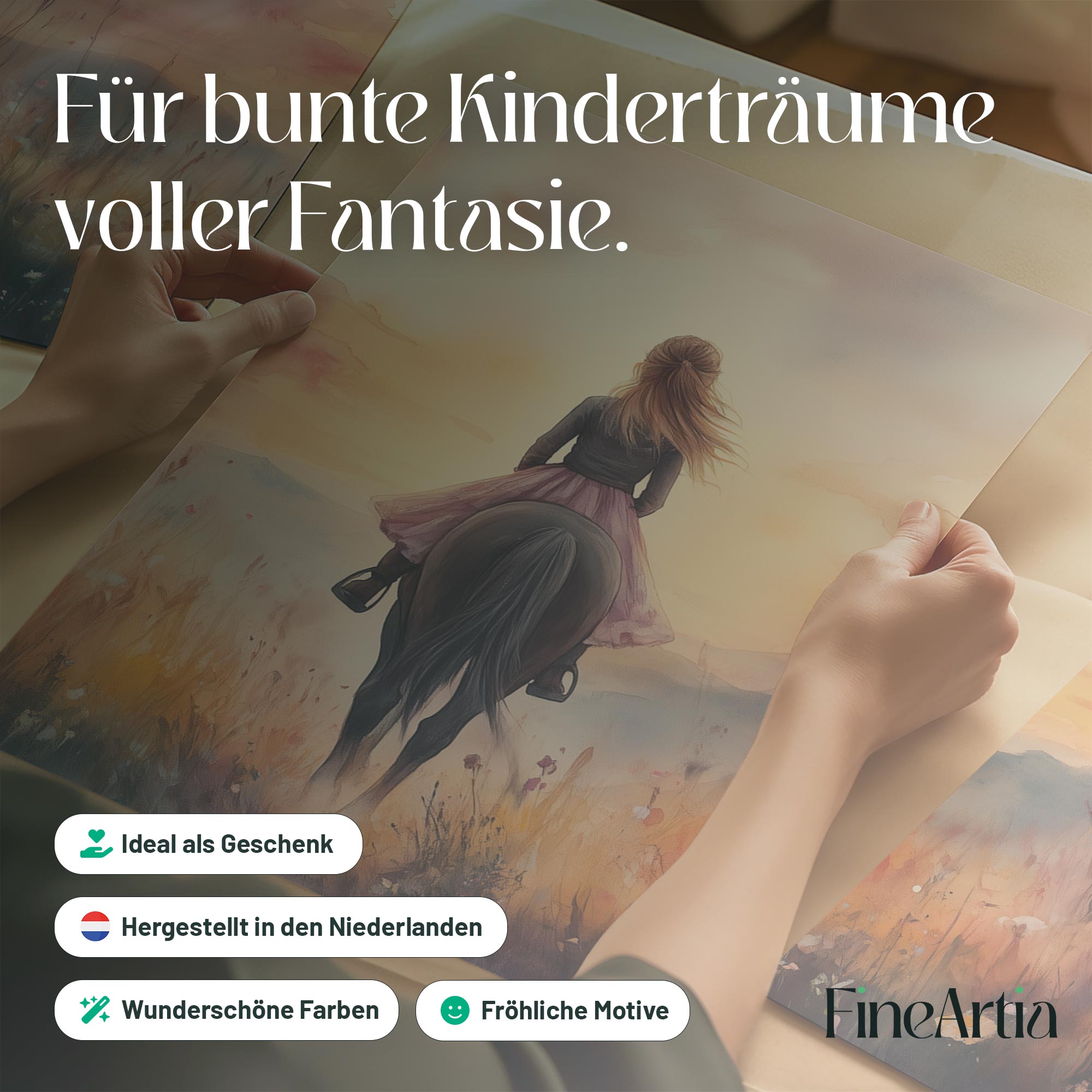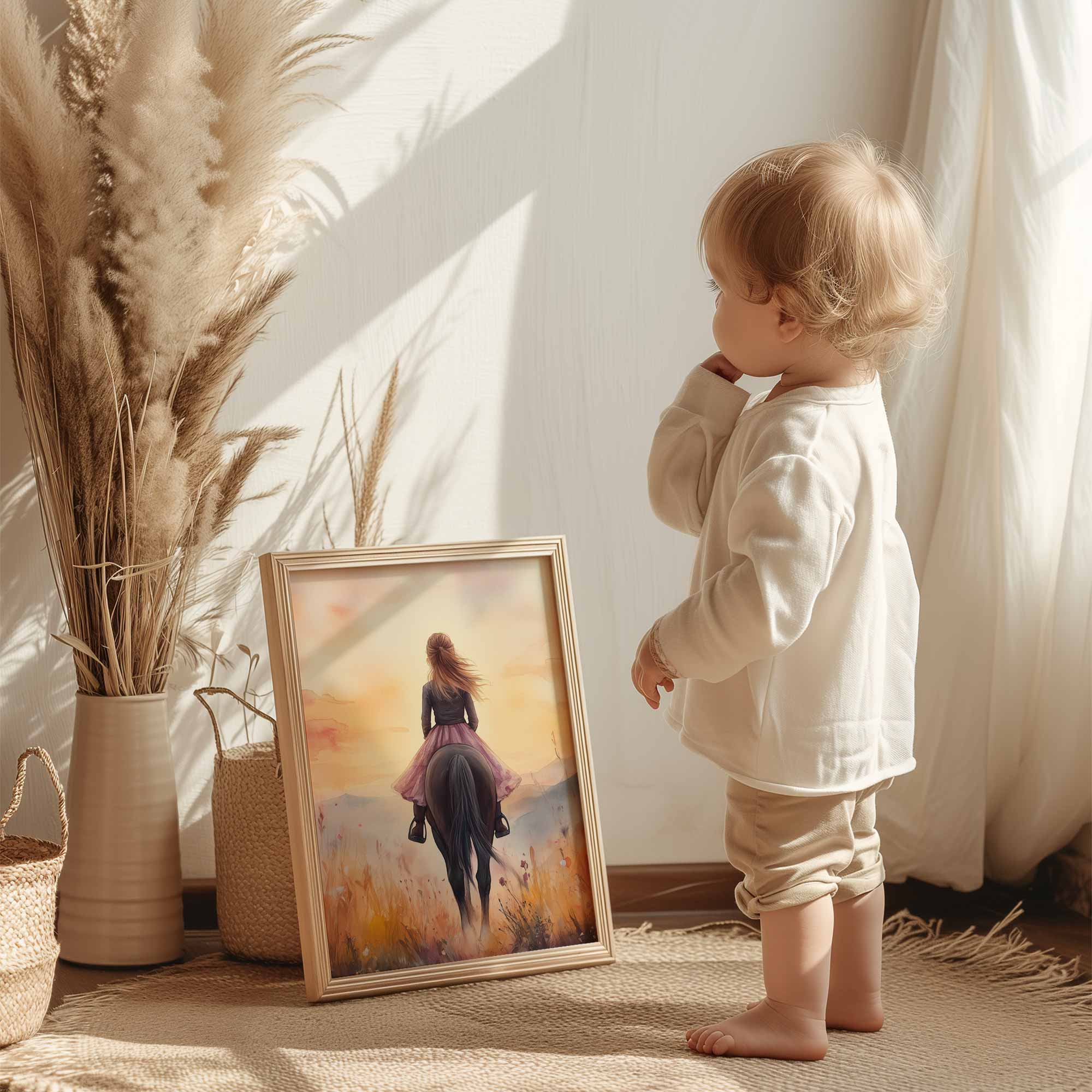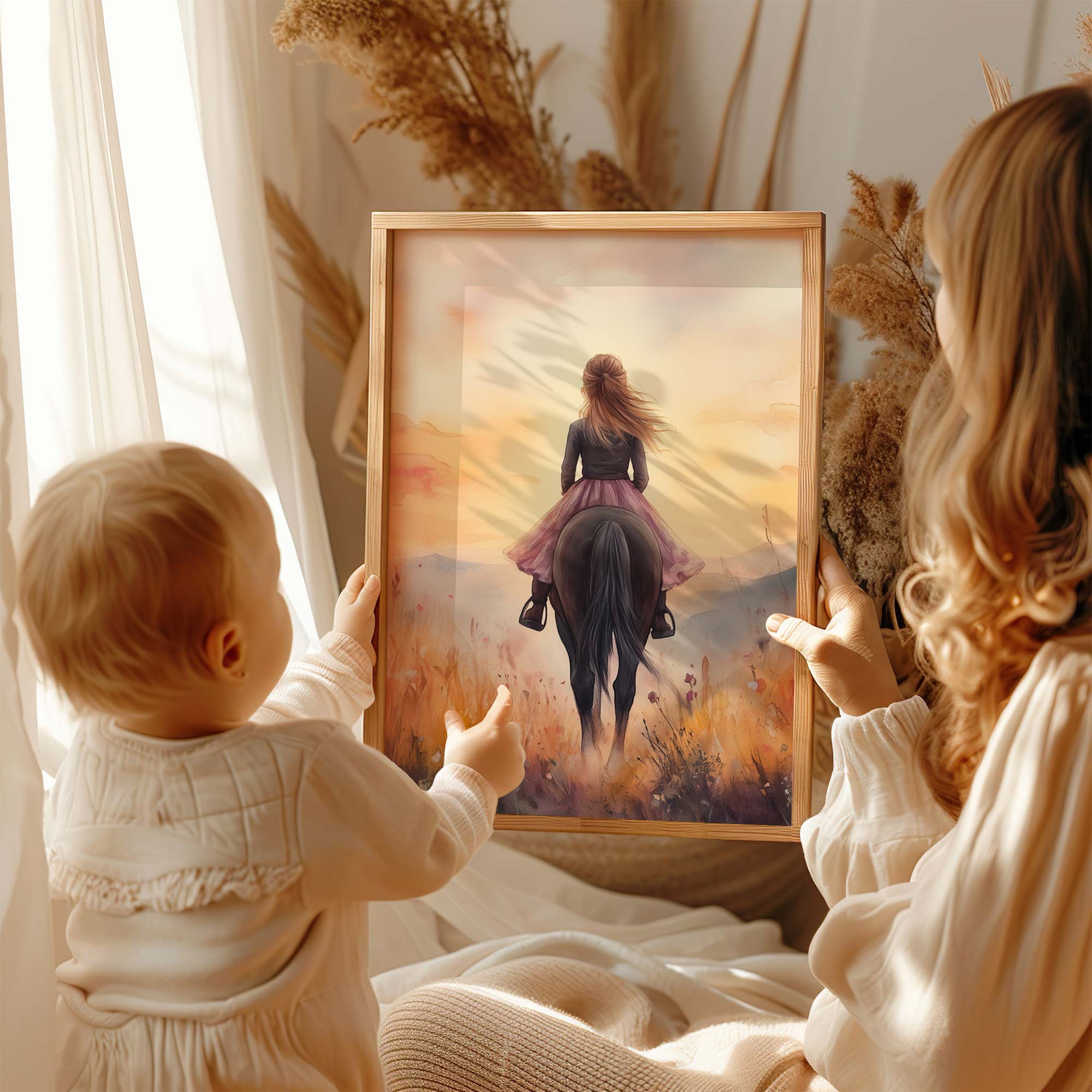 Zacht Roze Droom: Vrouw te Paard in Bloemenveld