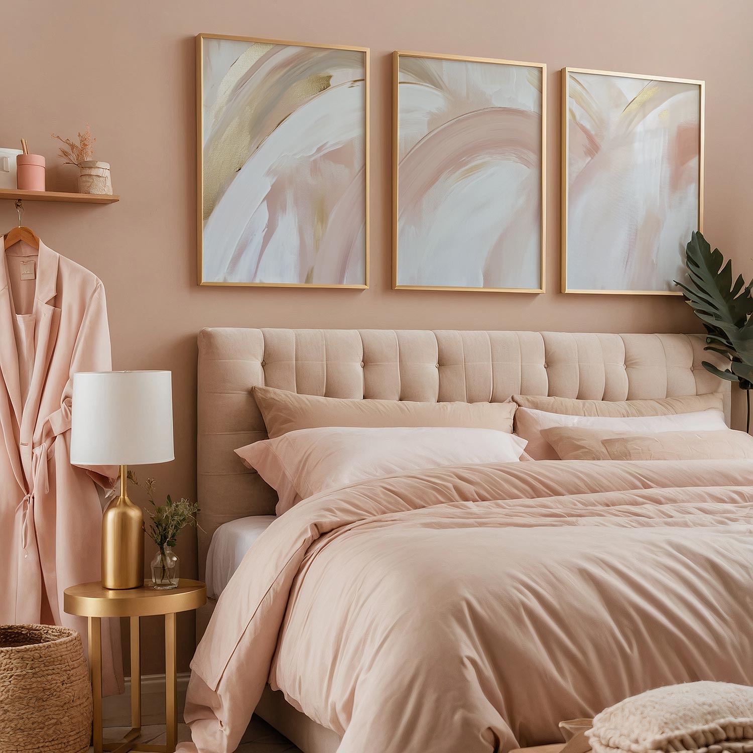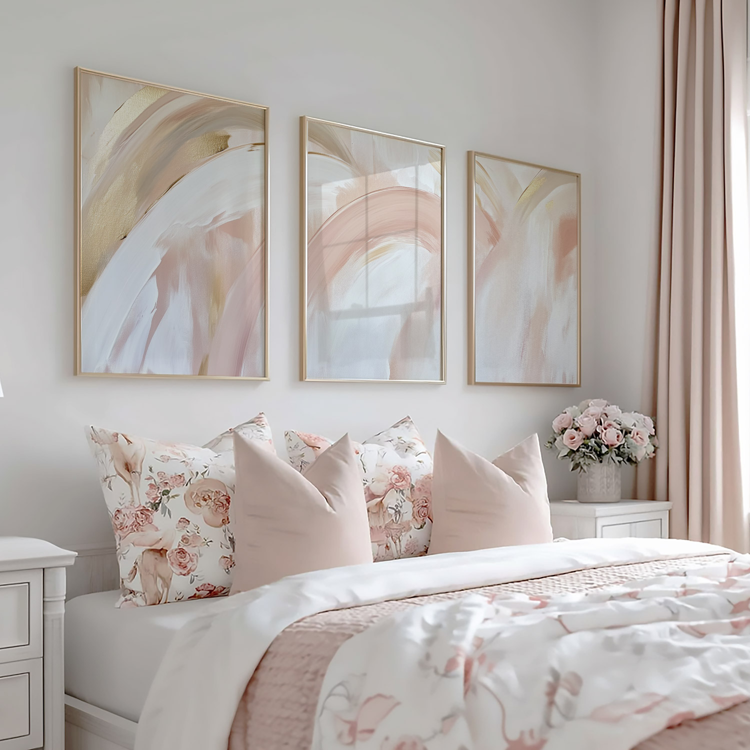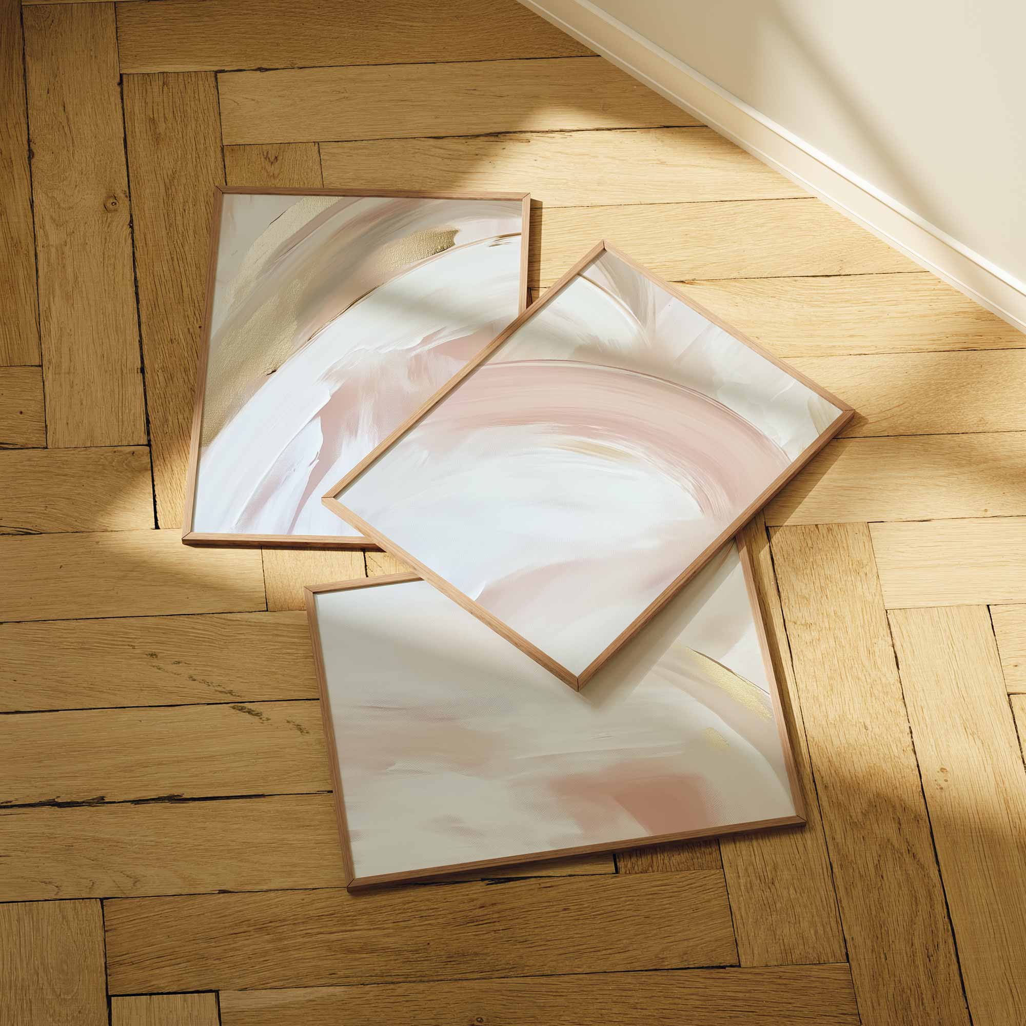 Zacht Roze & Gouden Abstracte Beweging – Elegante Wanddecoratie