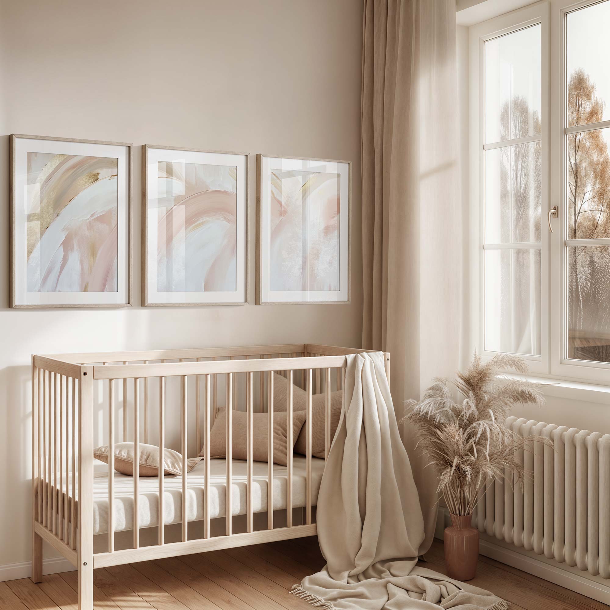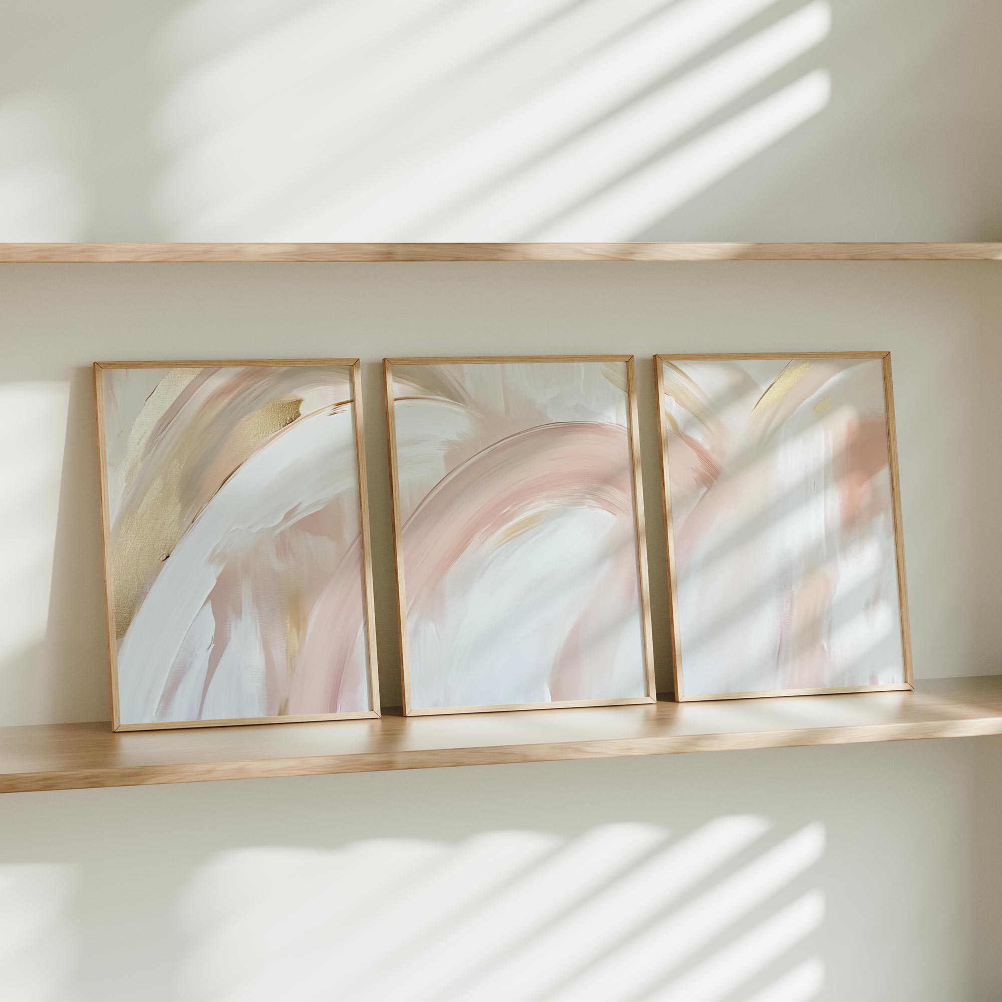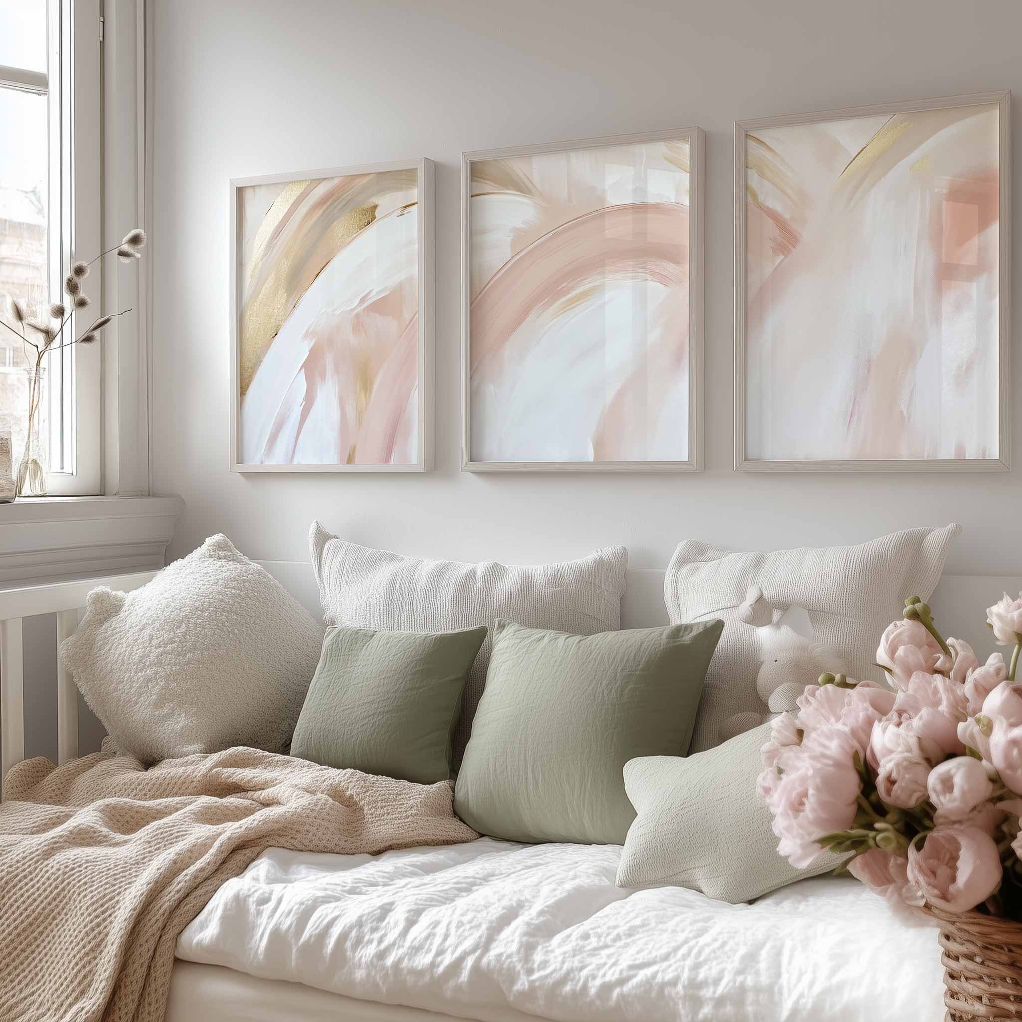 Zacht Roze & Gouden Abstracte Beweging – Elegante Wanddecoratie