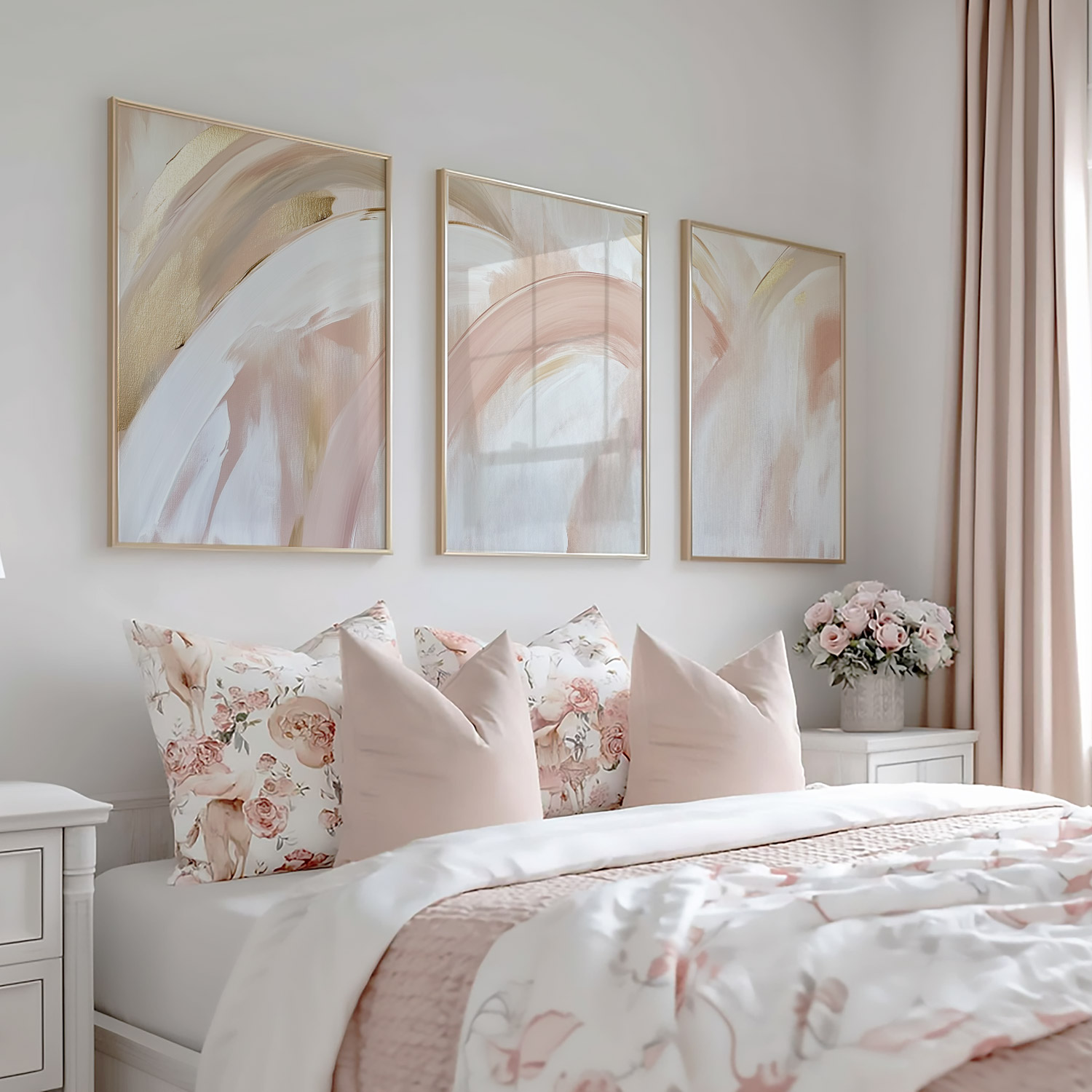 Terug naar collectie Posters Zacht Roze & Gouden Abstracte Beweging – Speels & Stijlvol