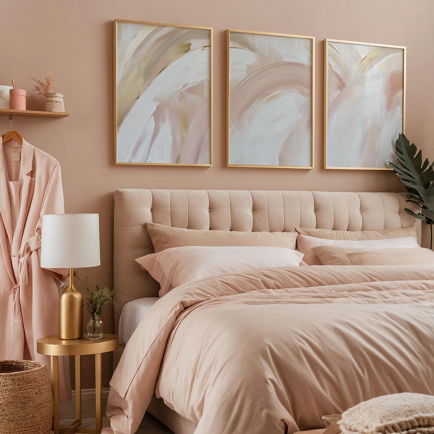 Zacht Roze & Gouden Abstracte Beweging – Speels & Stijlvol