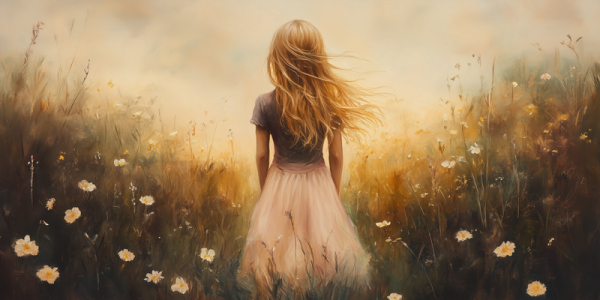 Zacht Roze Meisje in Bloeiend Bloemenveld