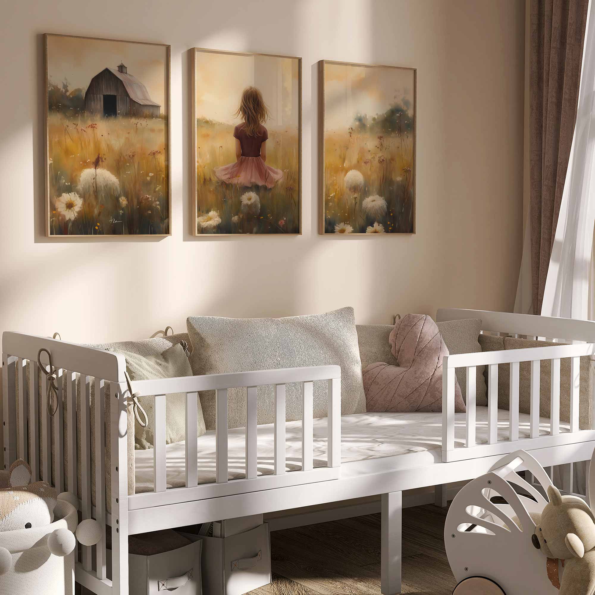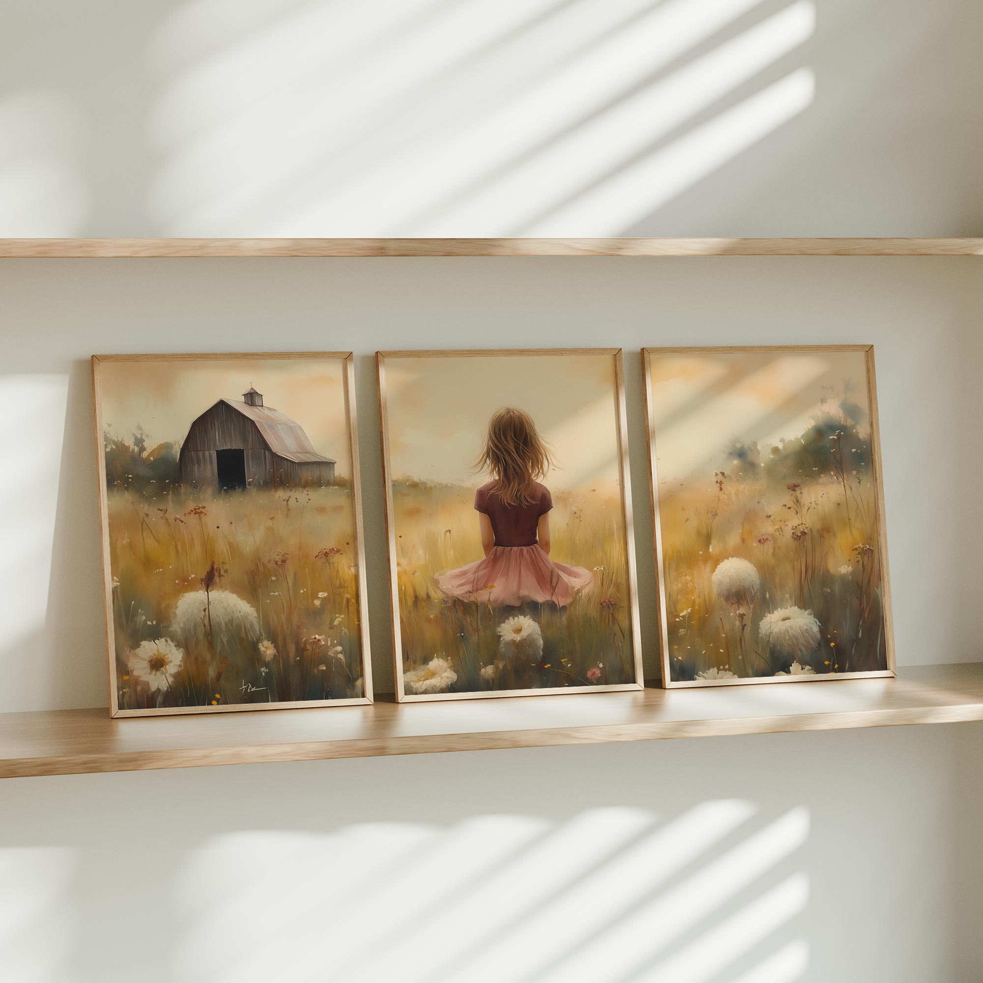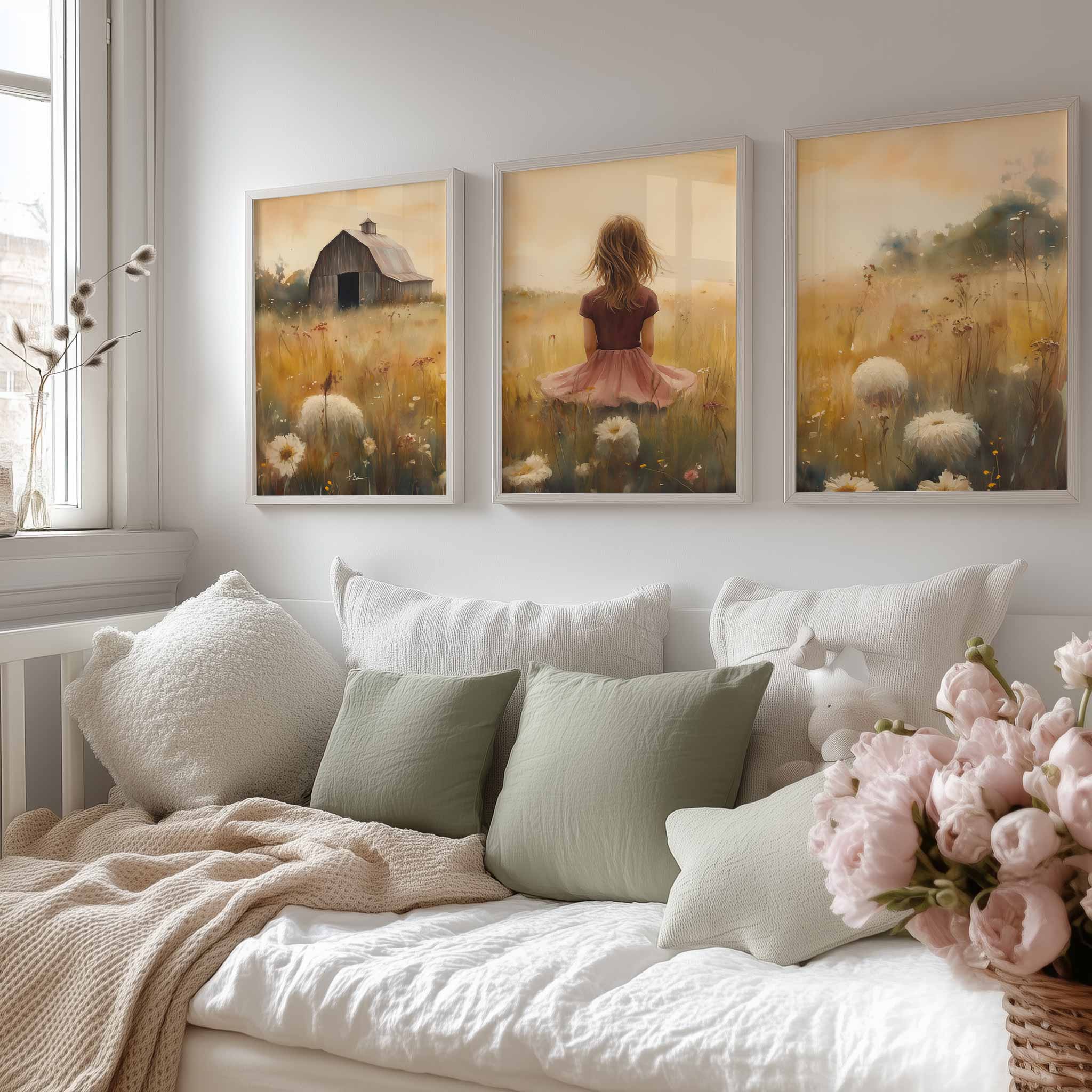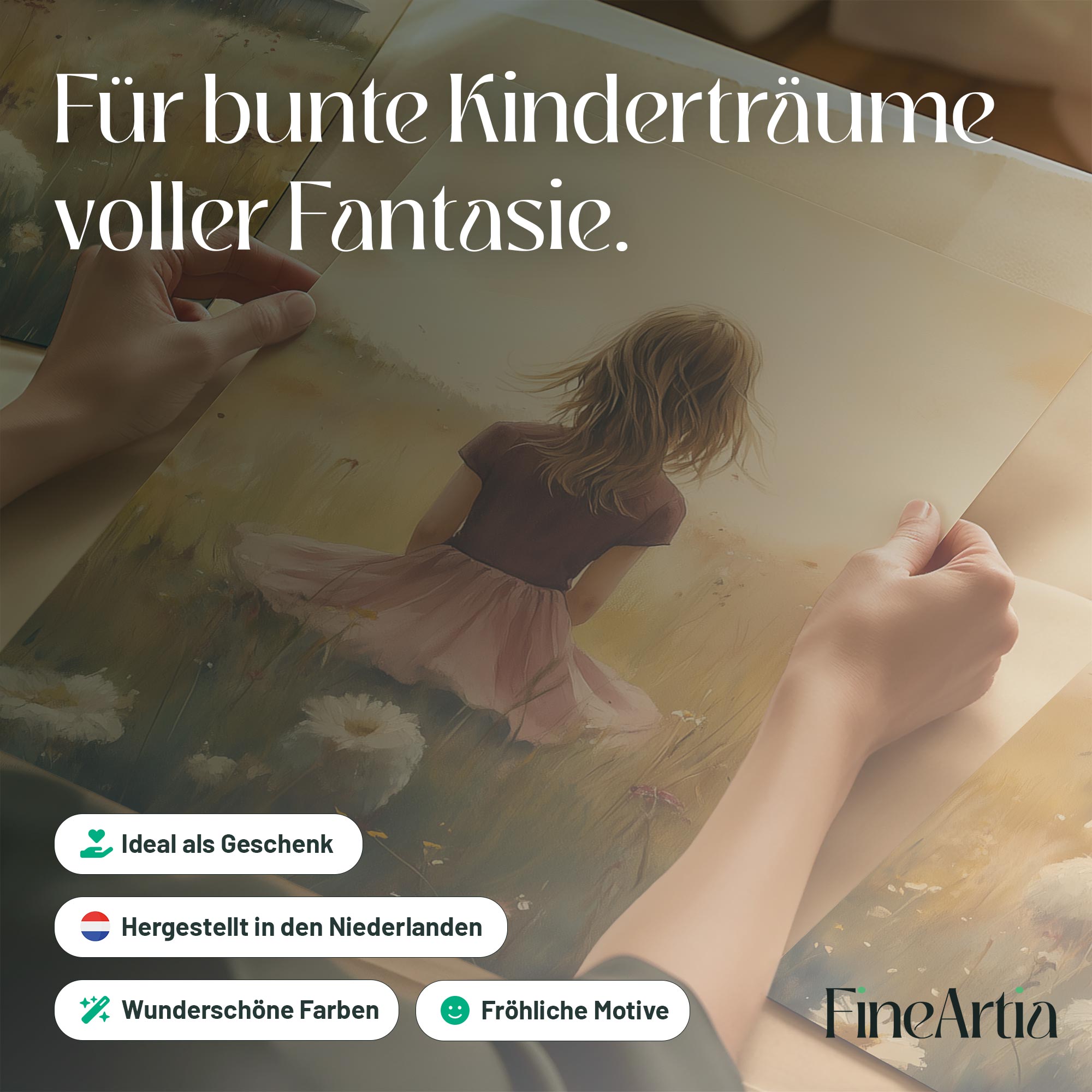 Terug naar collectie Posters Zacht Roze Meisje in Bloemenveld bij de Schuur