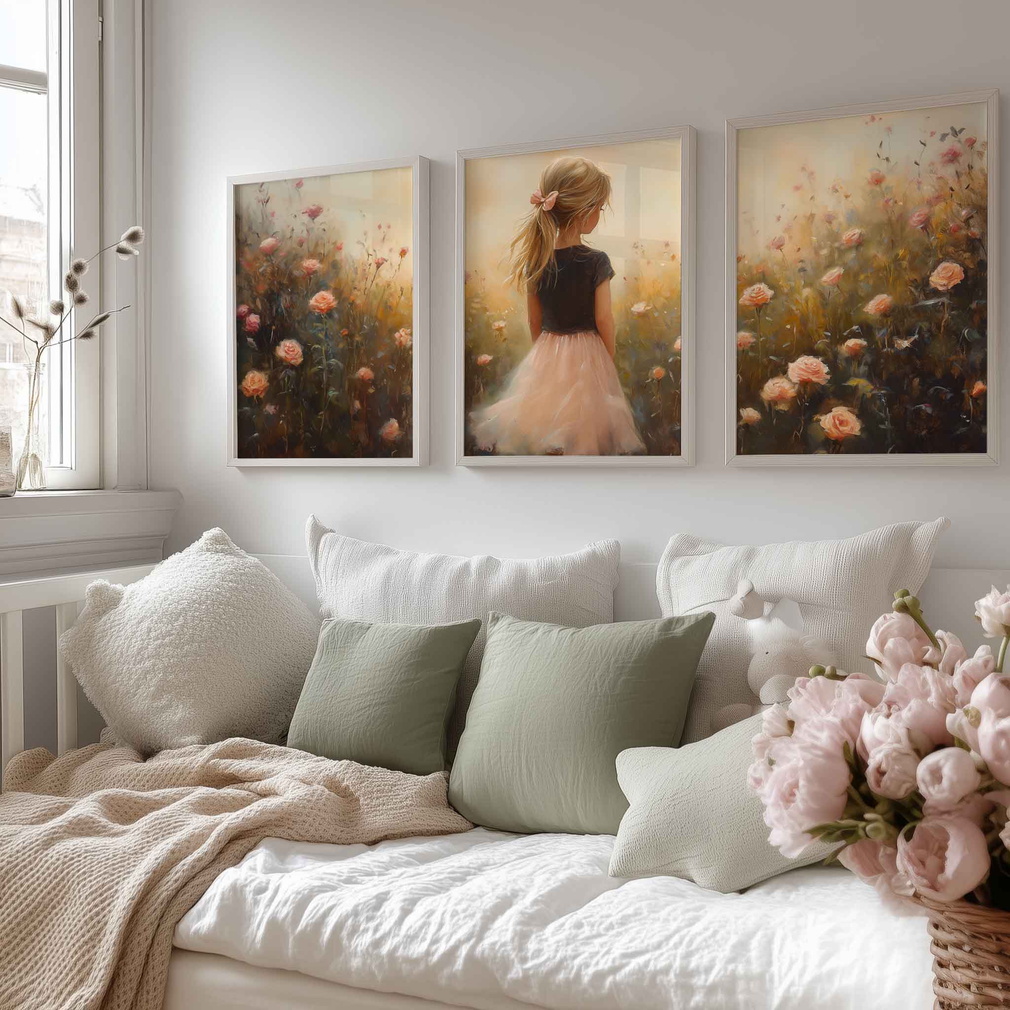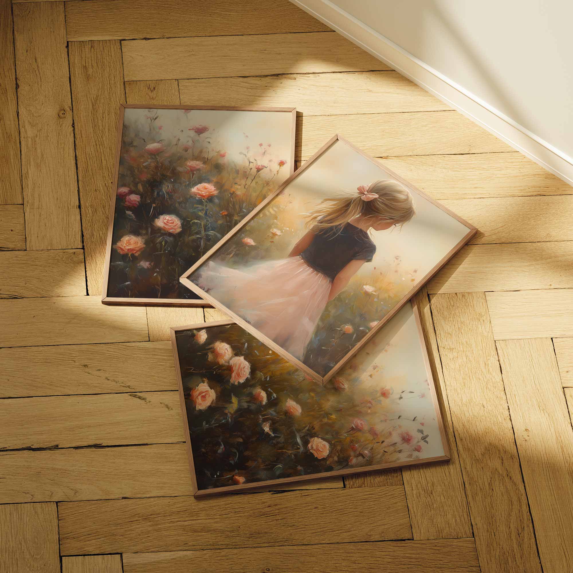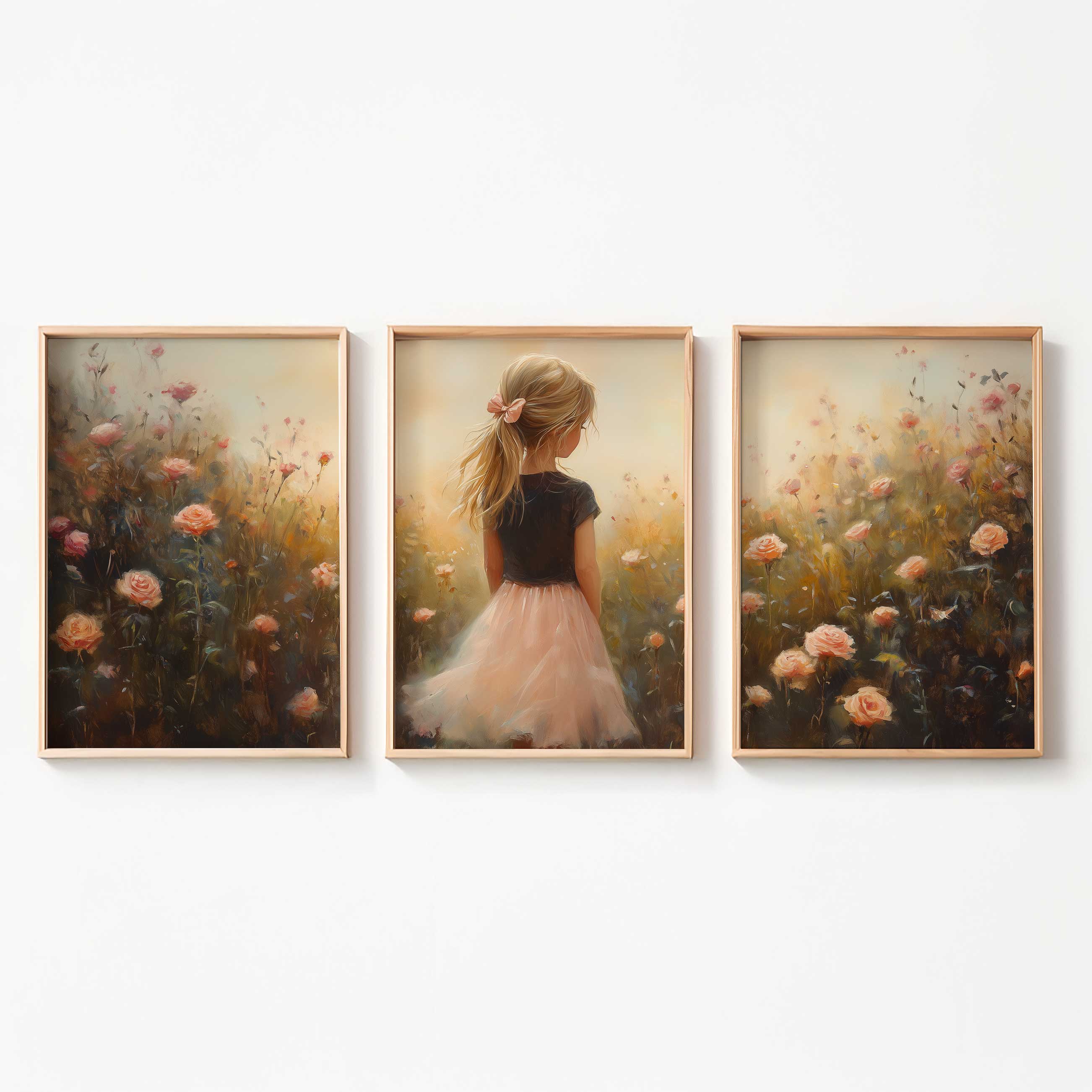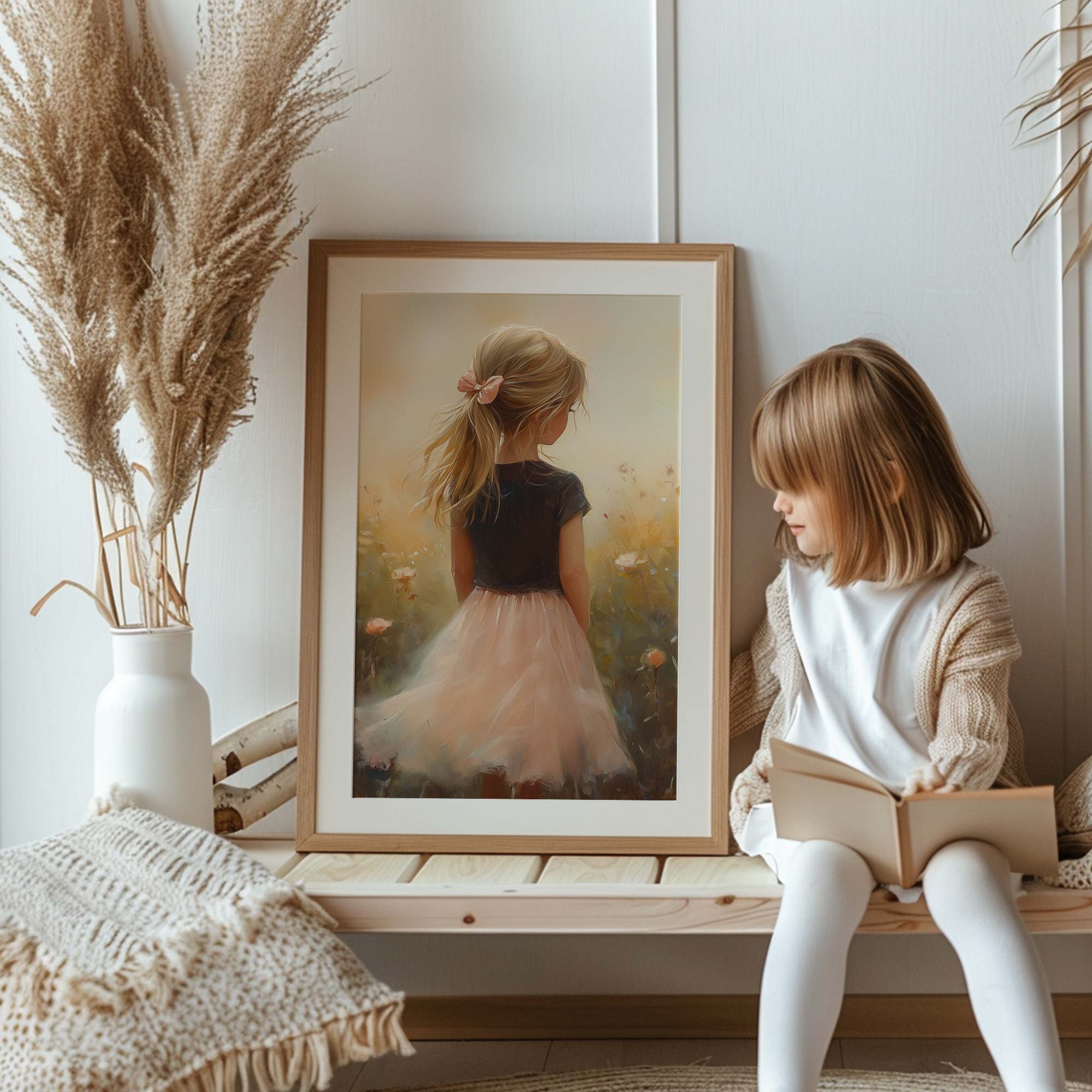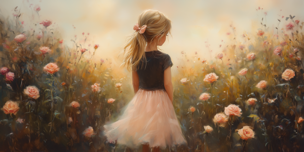 Zacht Roze Meisje in Bloemenveld – Dromerige Sfeer