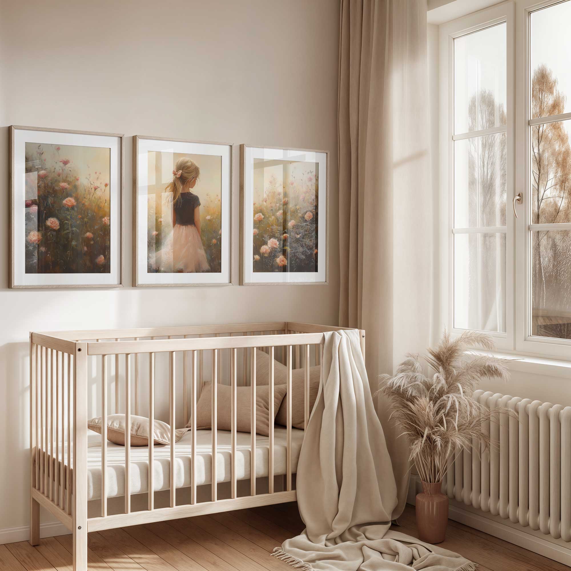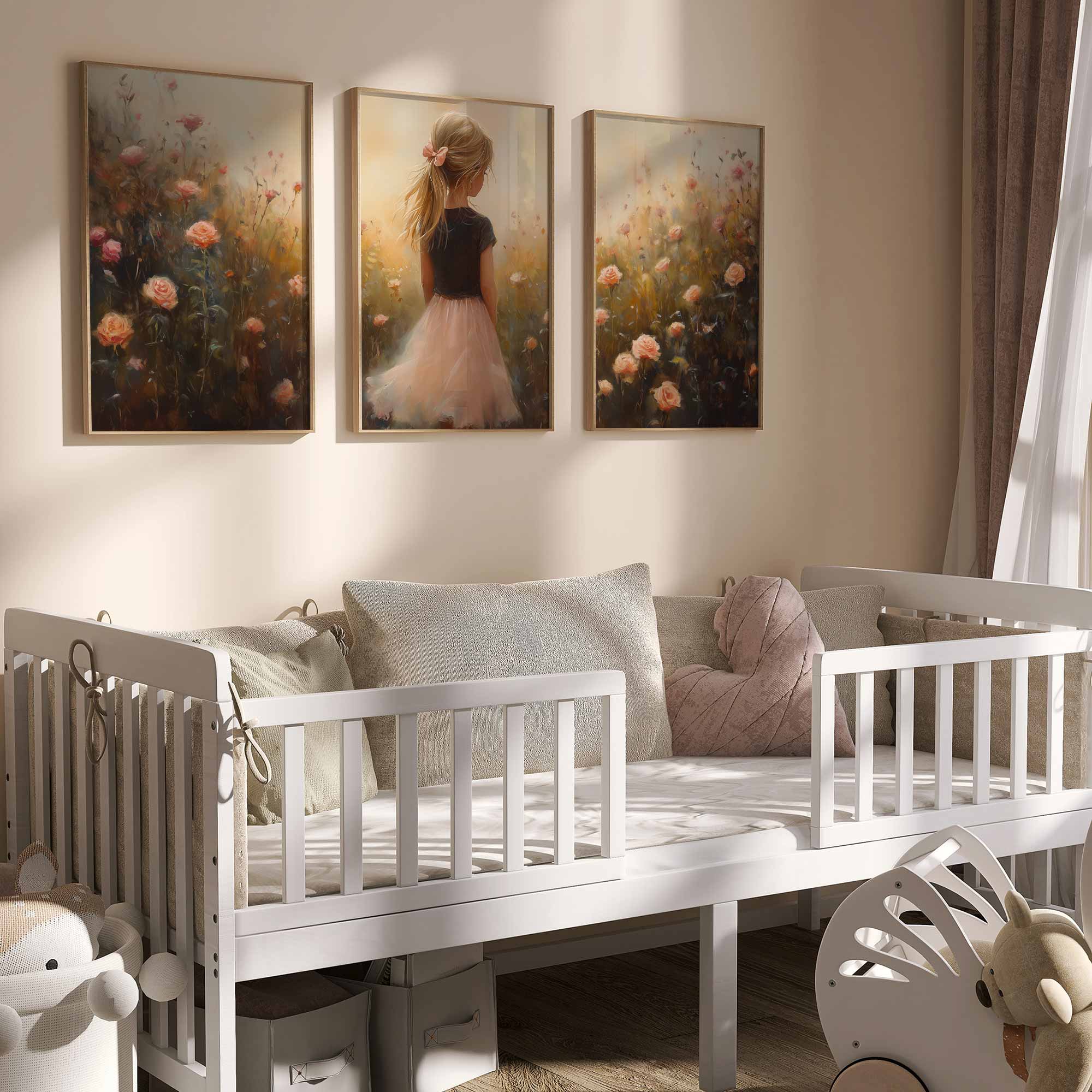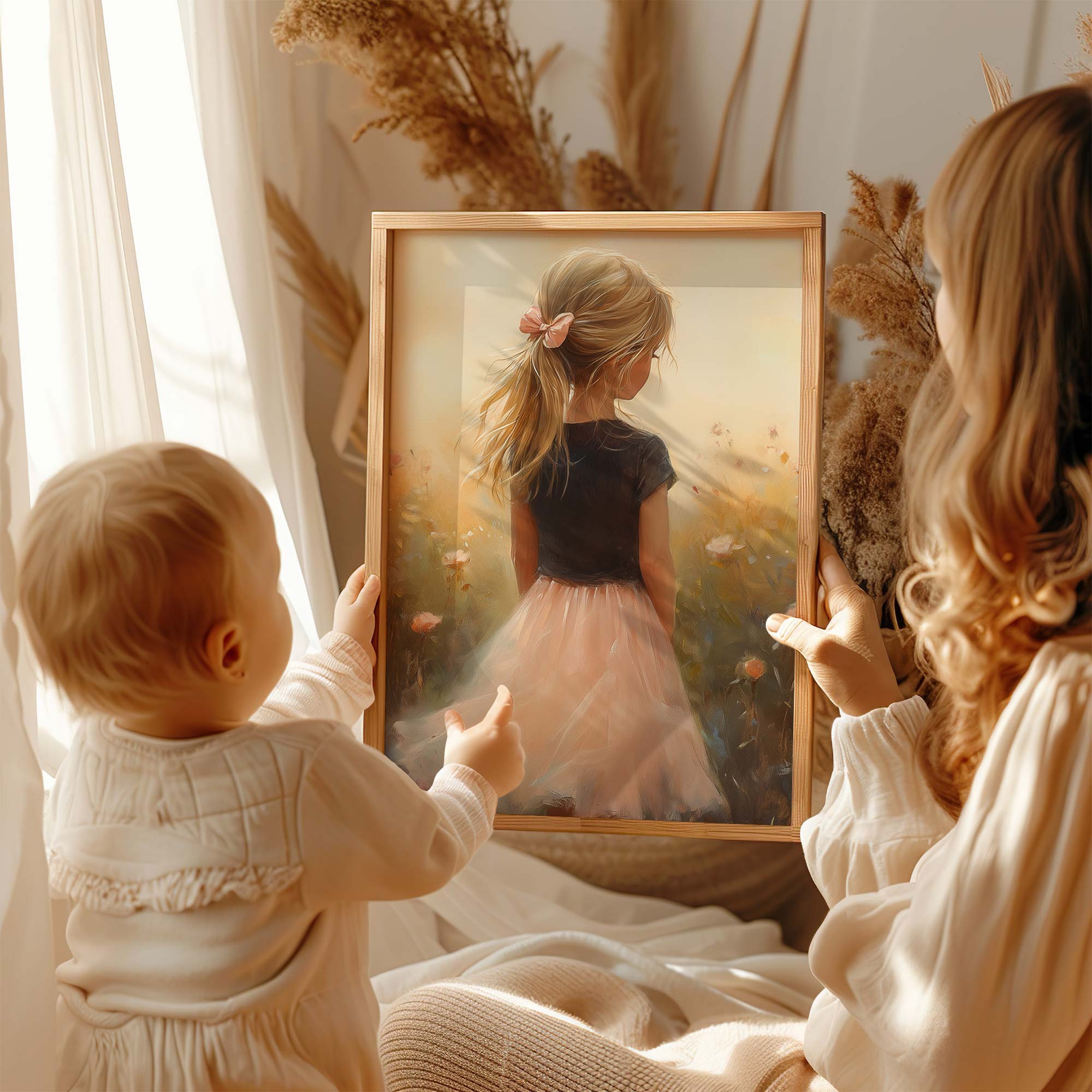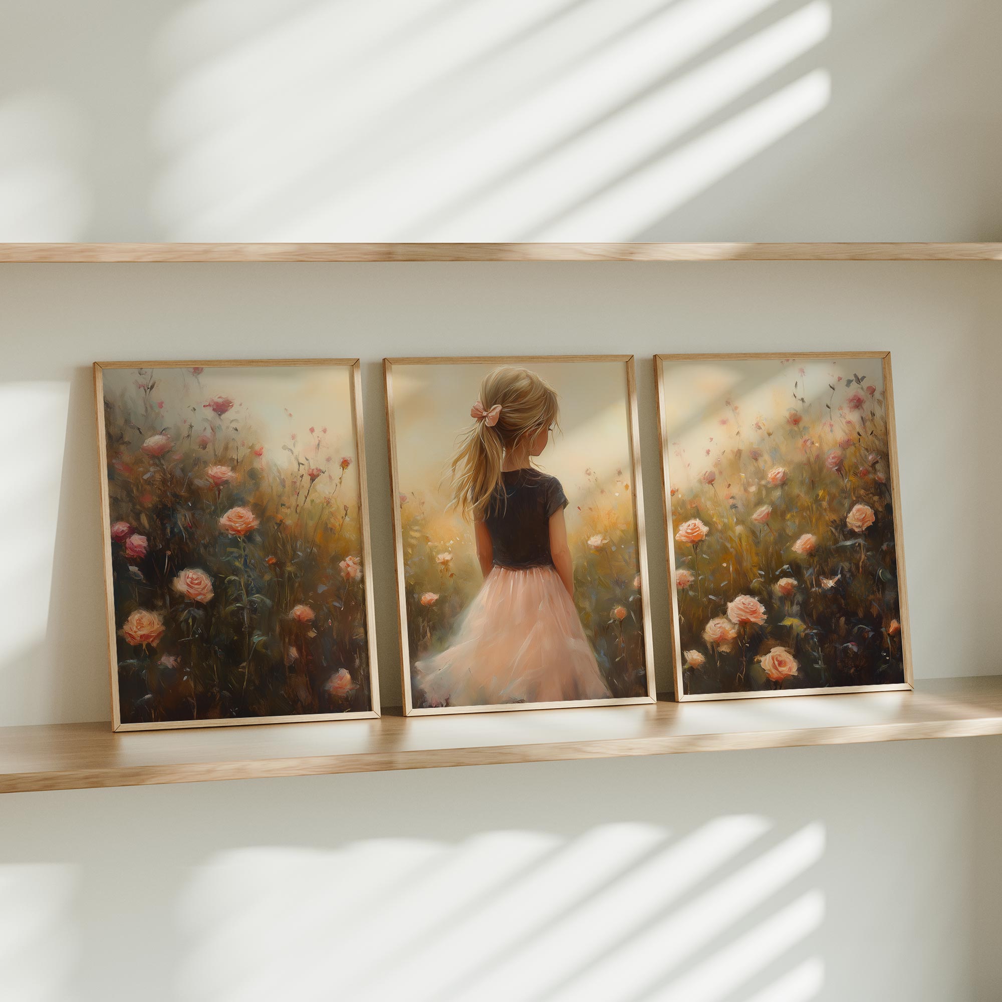 Zacht Roze Meisje in Bloemenveld – Dromerige Sfeer