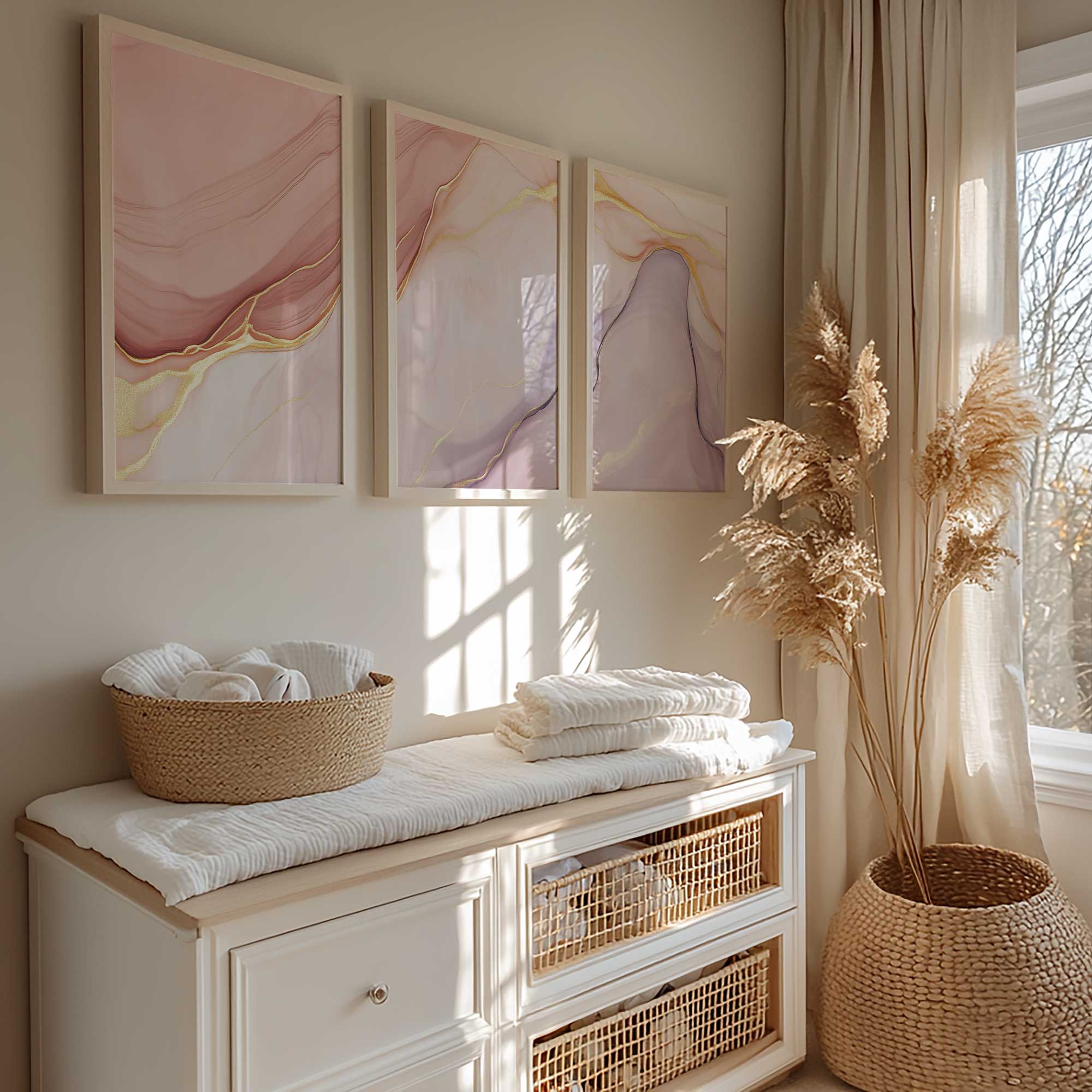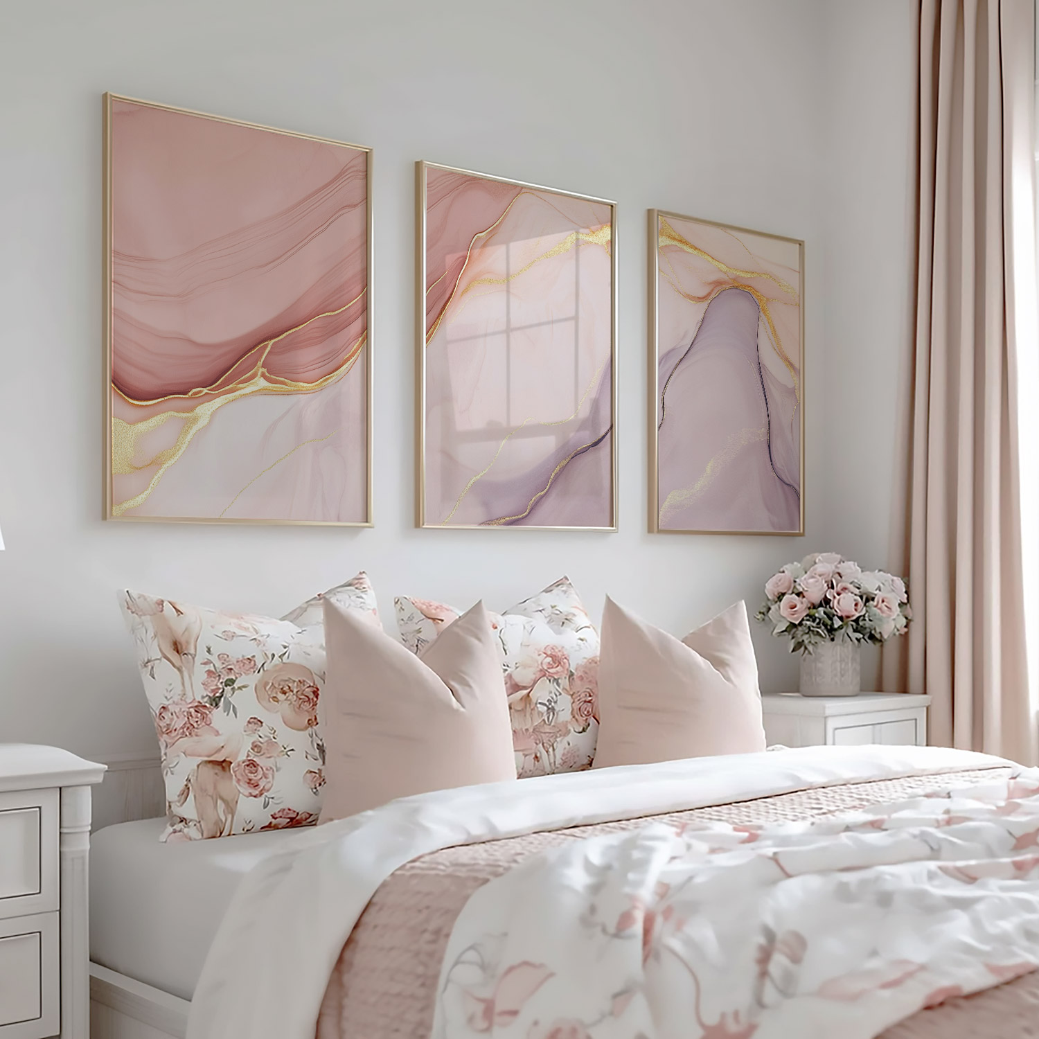 Zacht Roze & Paars Marmer Design met Gouden Accenten