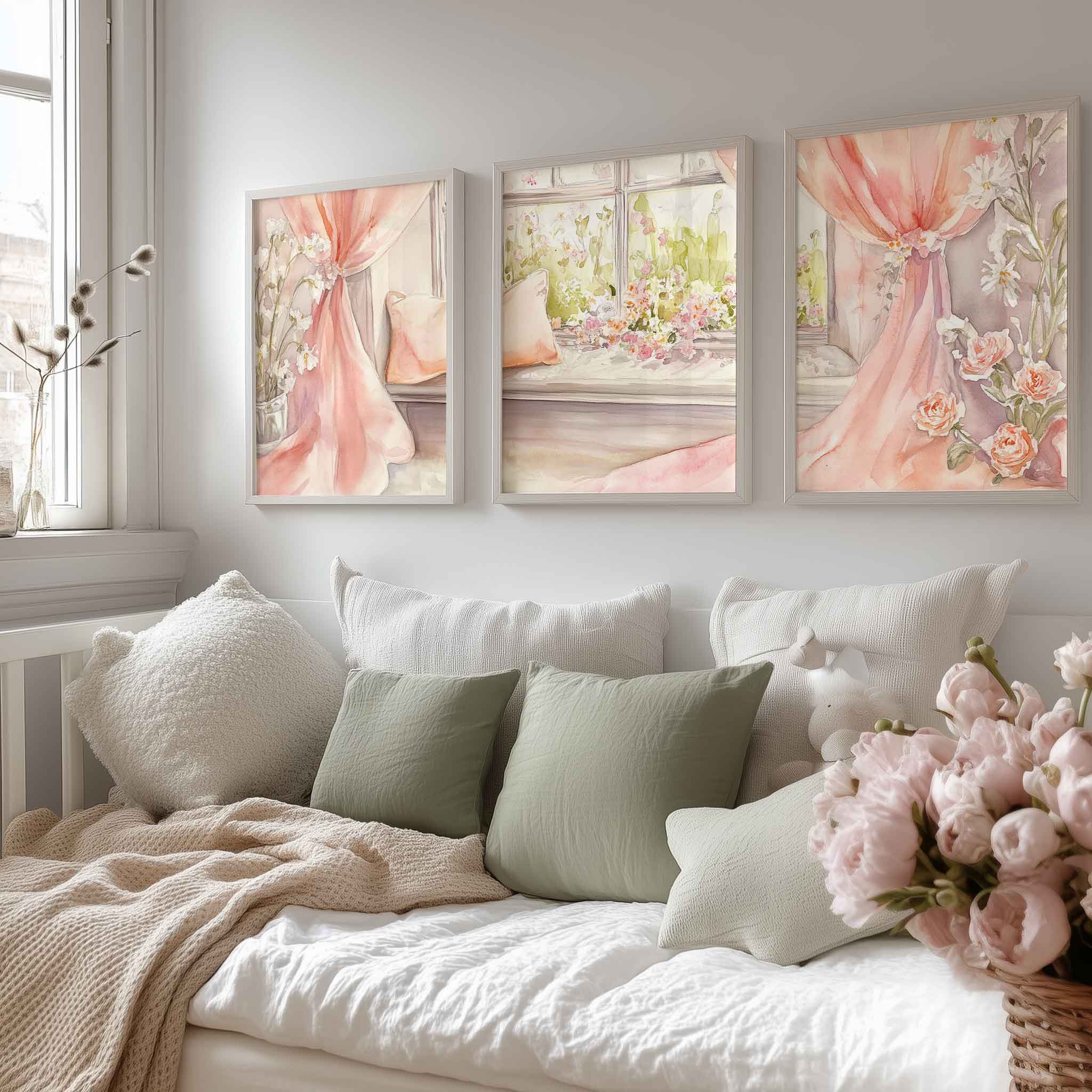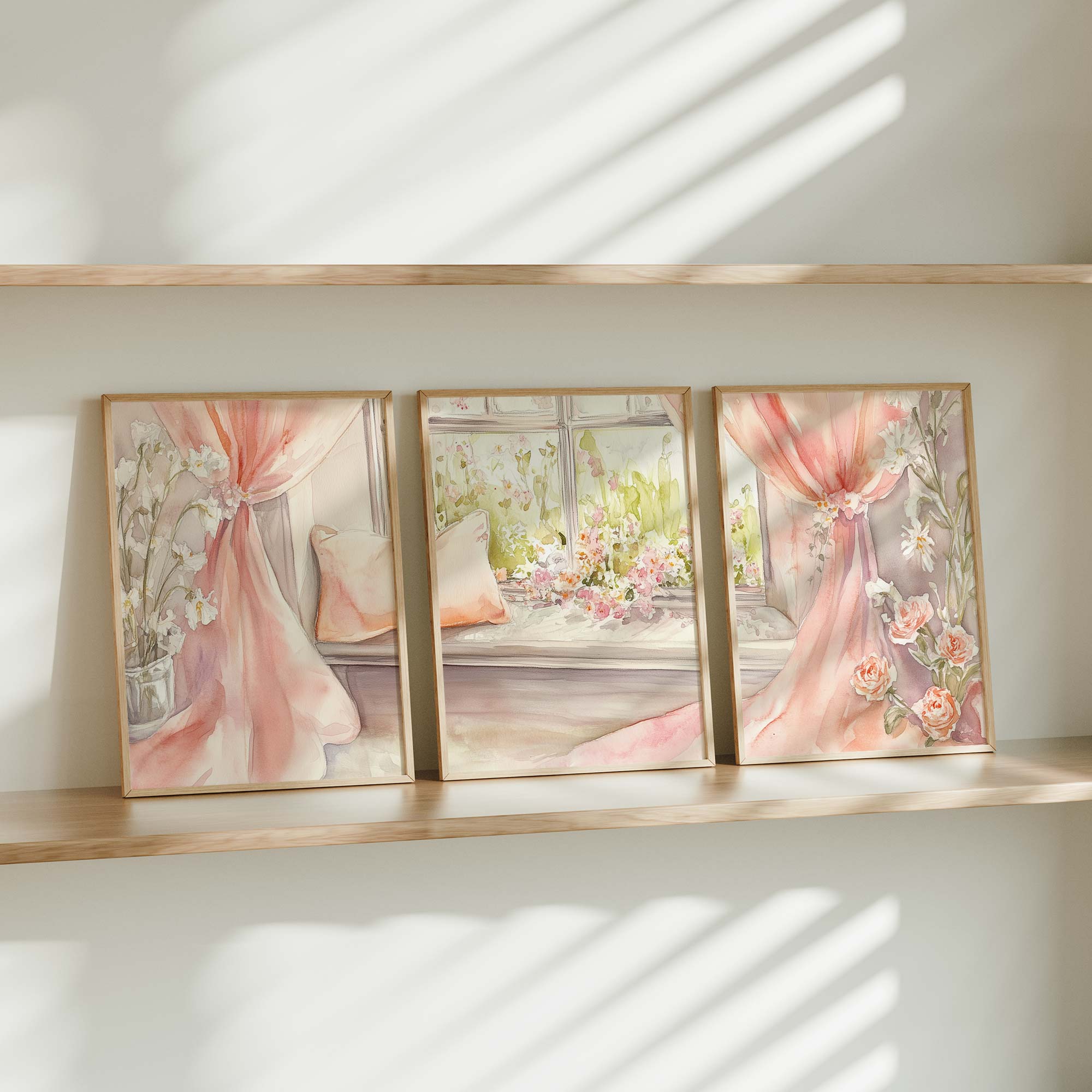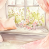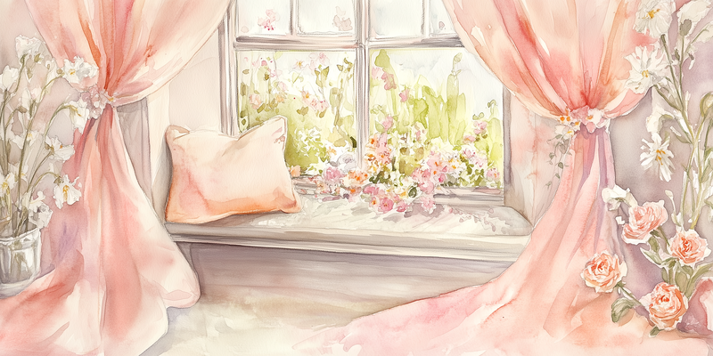 Zacht Roze Raam met Bloemen – Betoverend Sfeertafereel