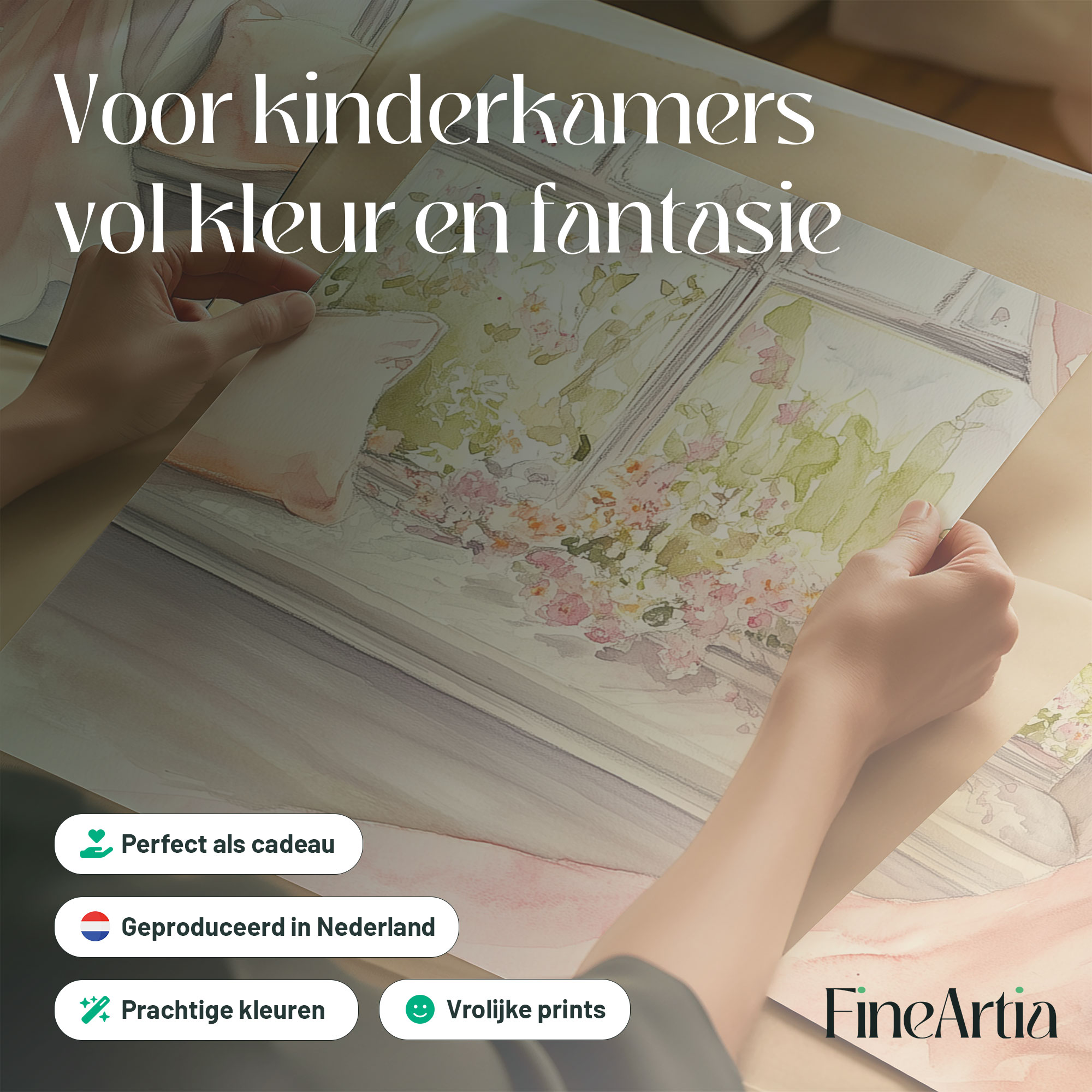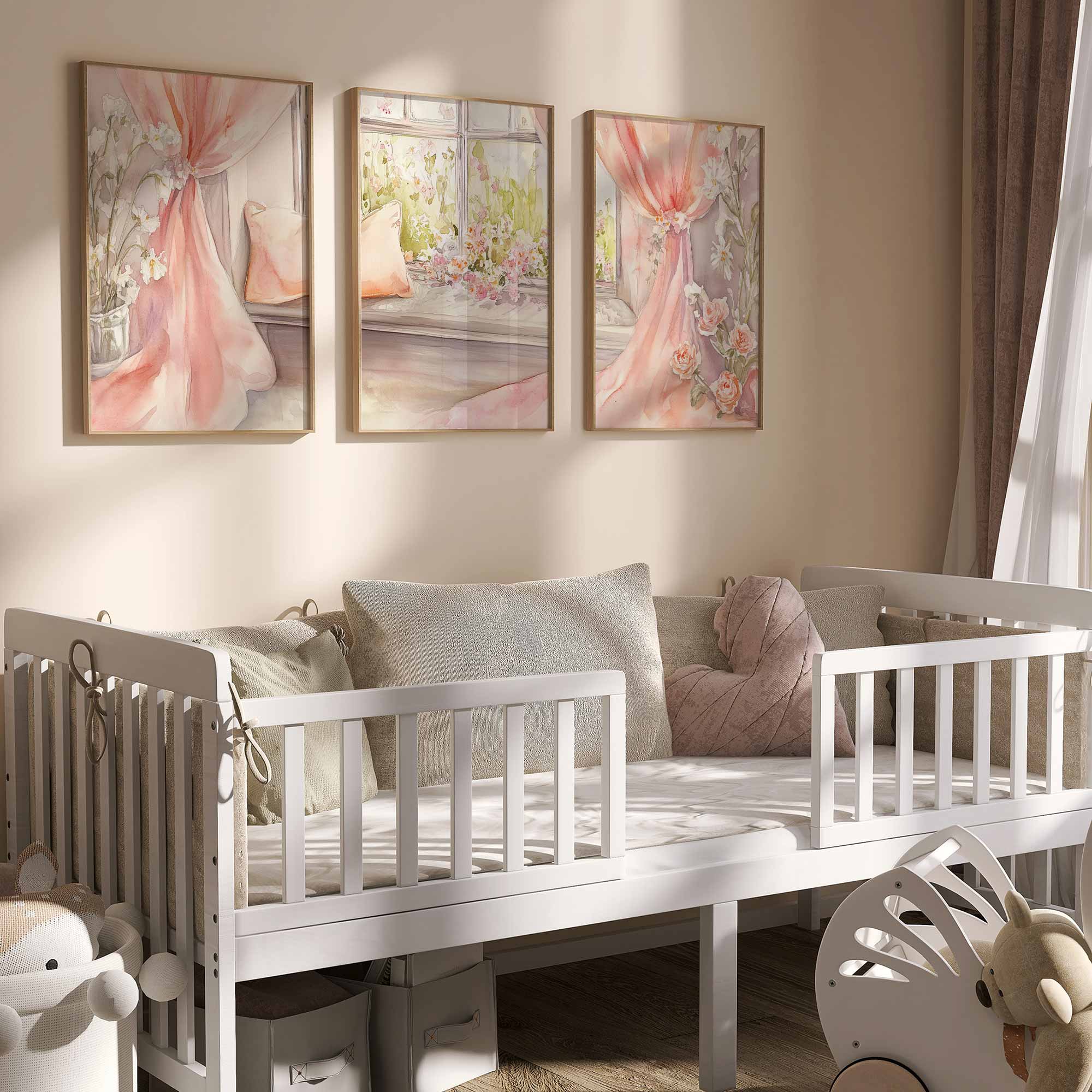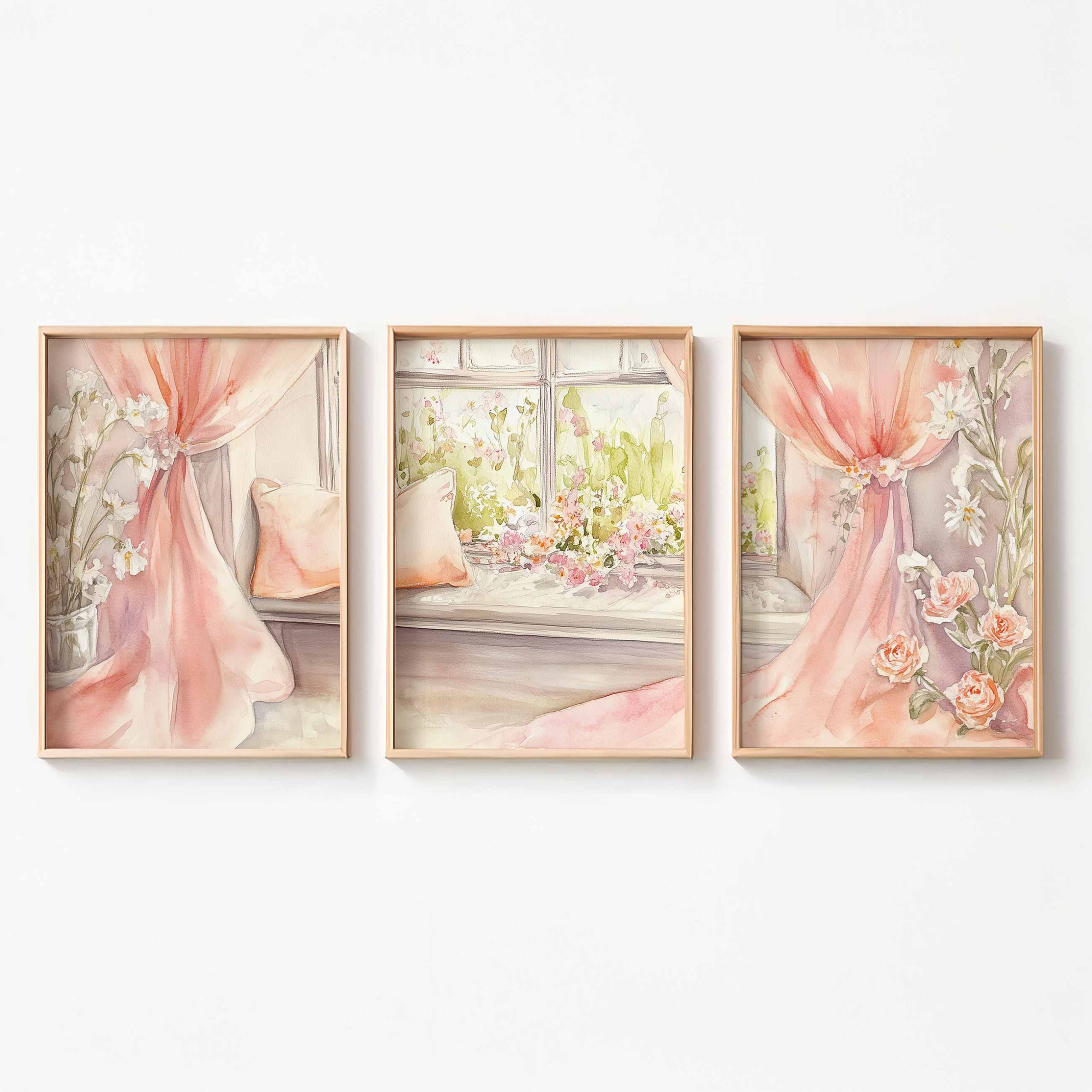 Zacht Roze Raam met Bloemen – Betoverend Sfeertafereel