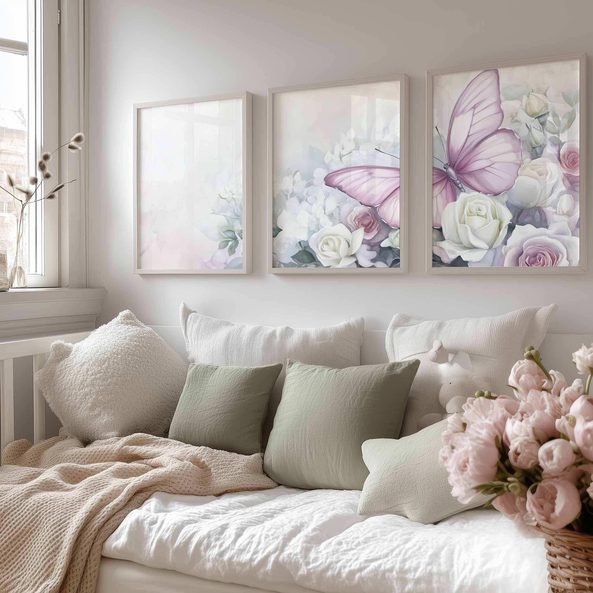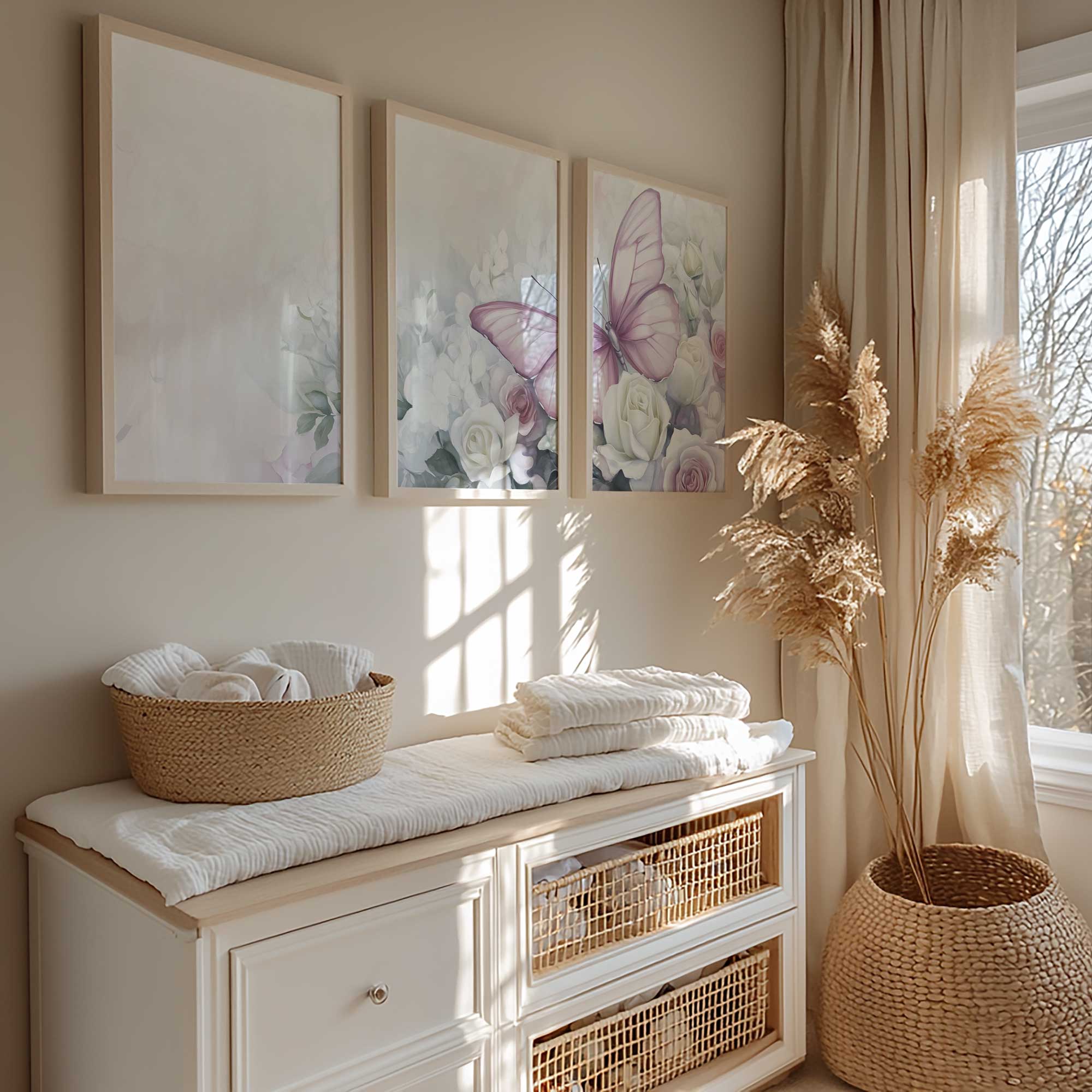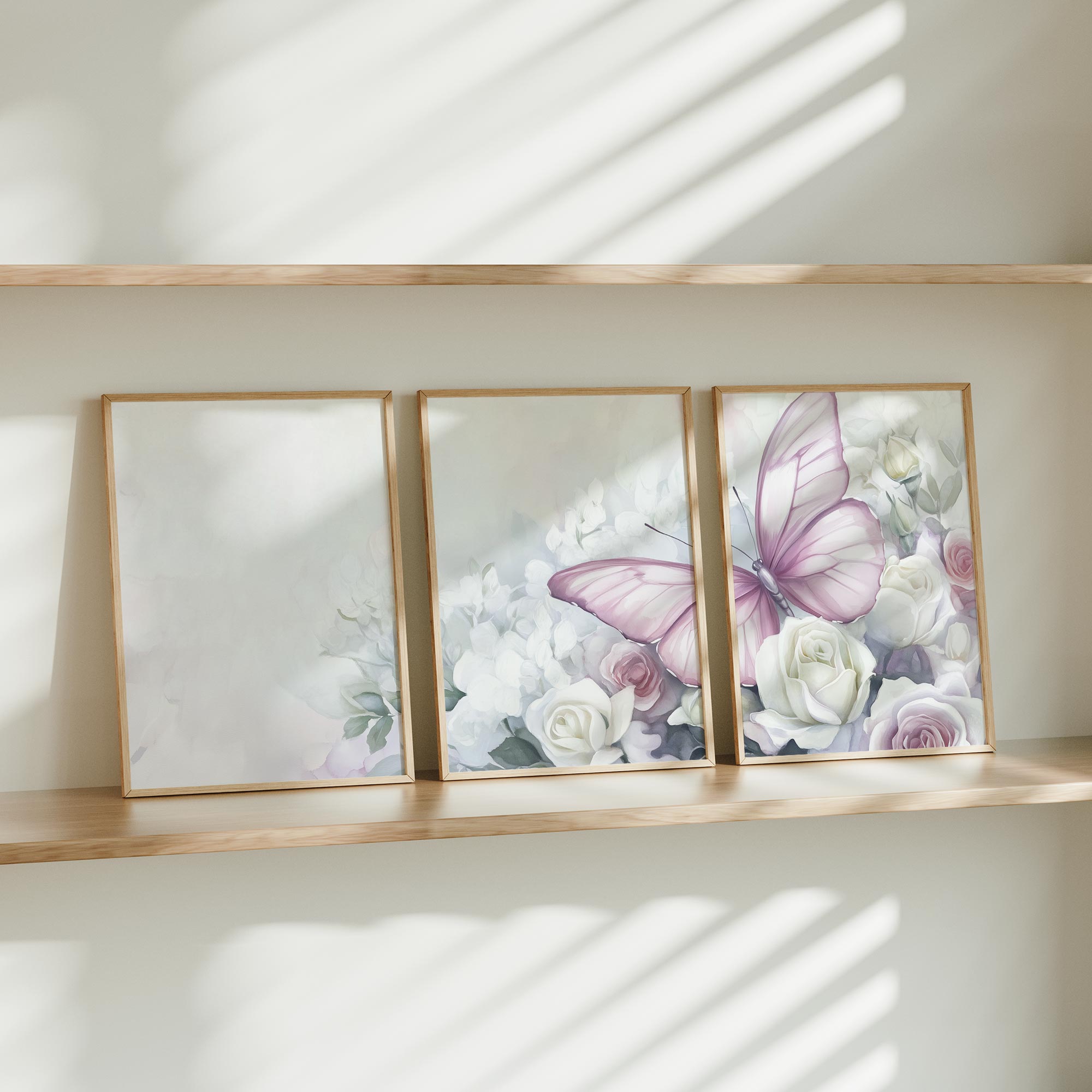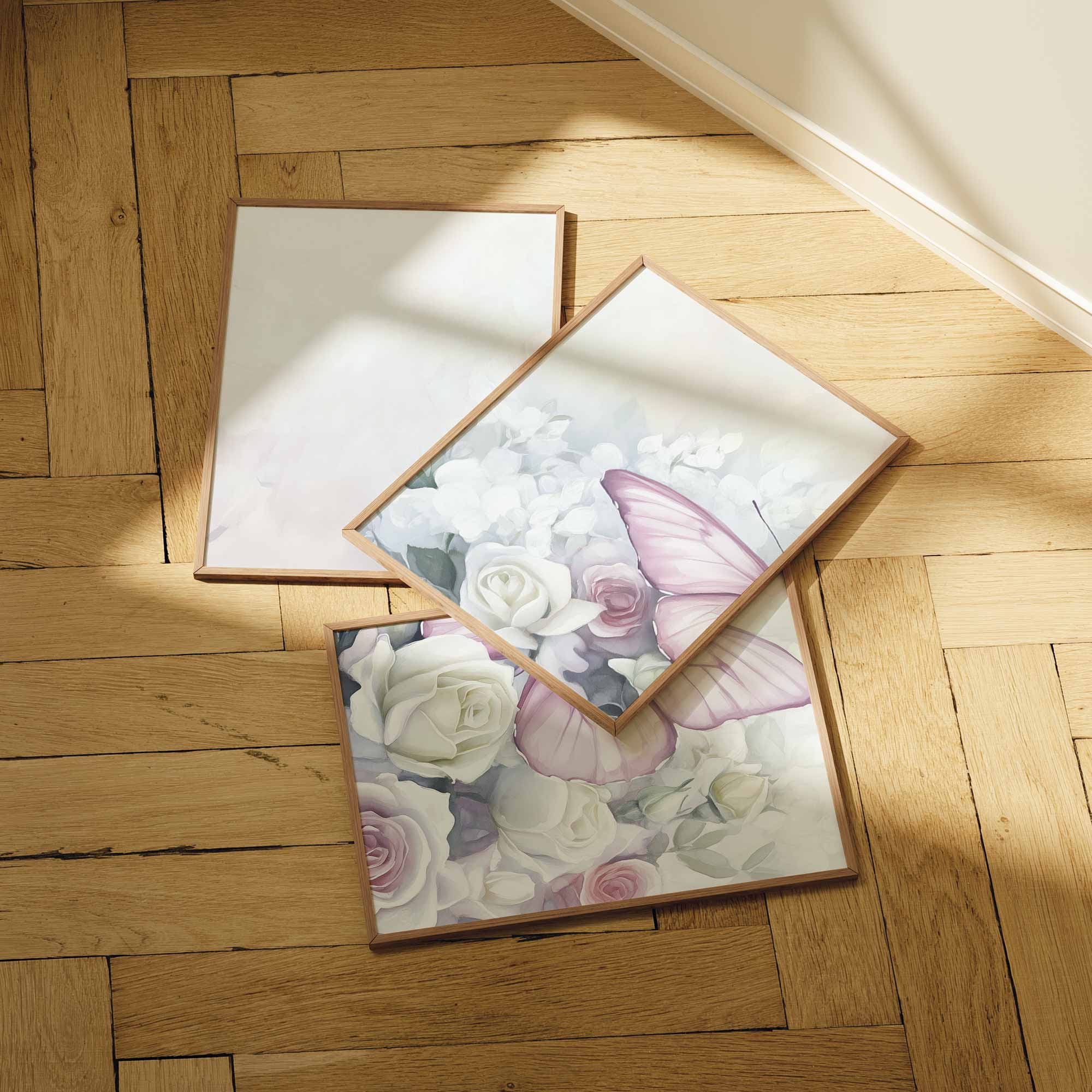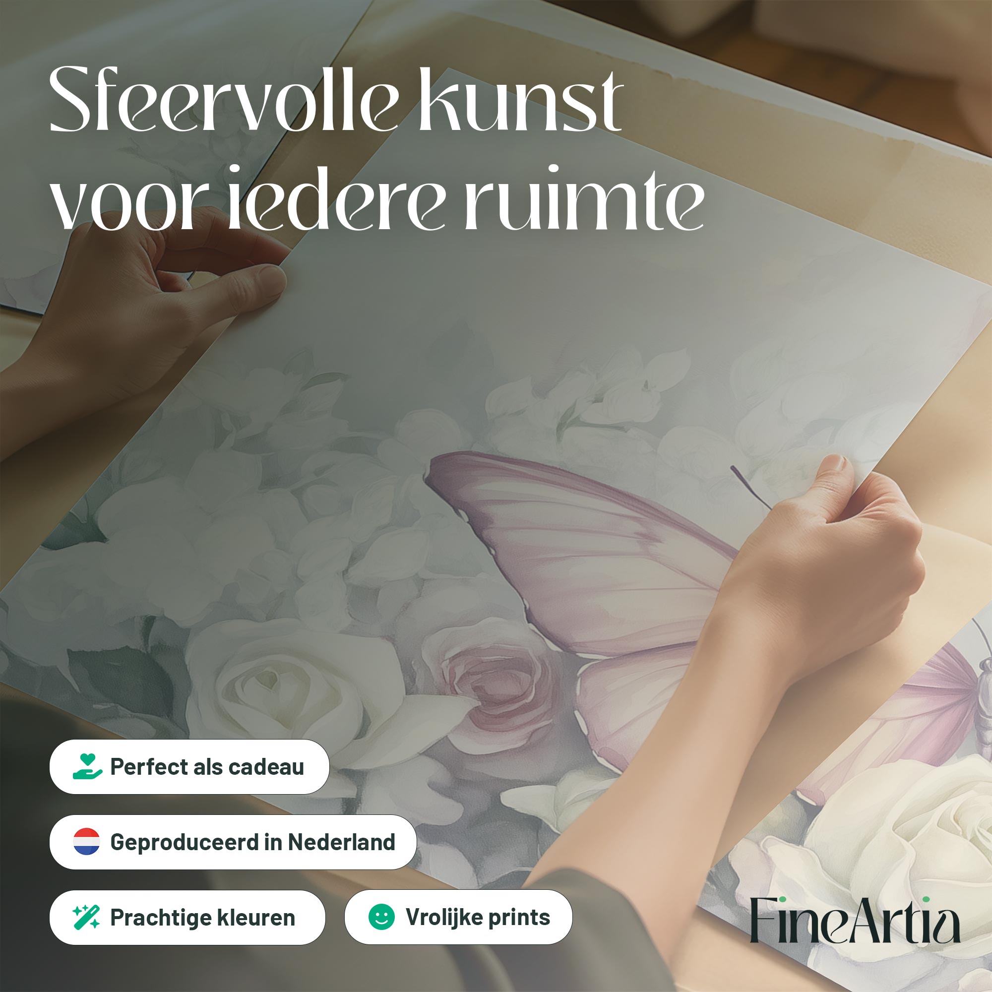Zacht Roze Rozen en Vlinder – Serene Wanddecoratie