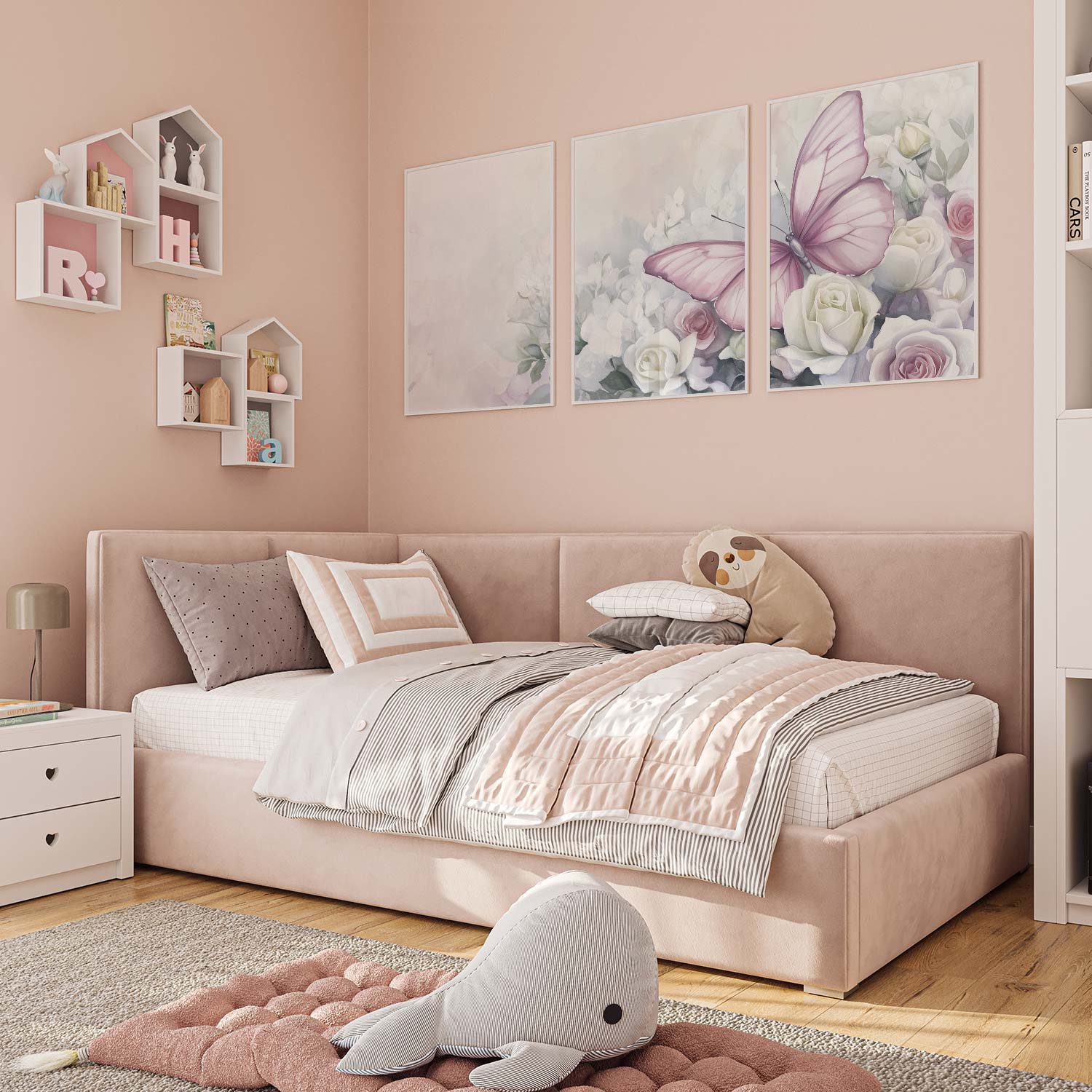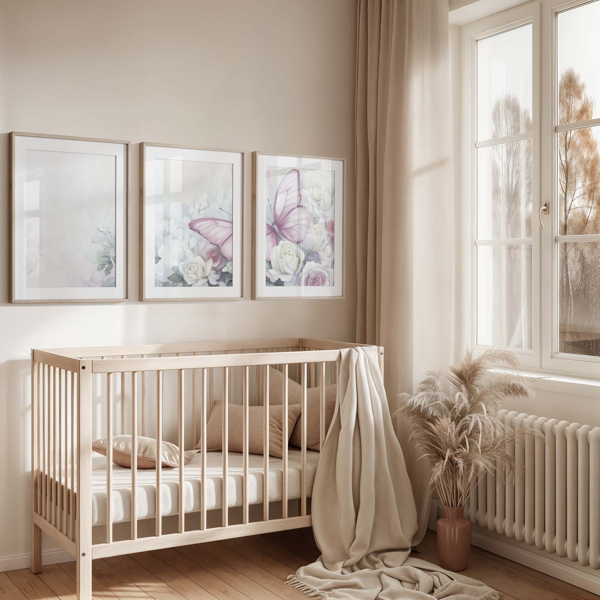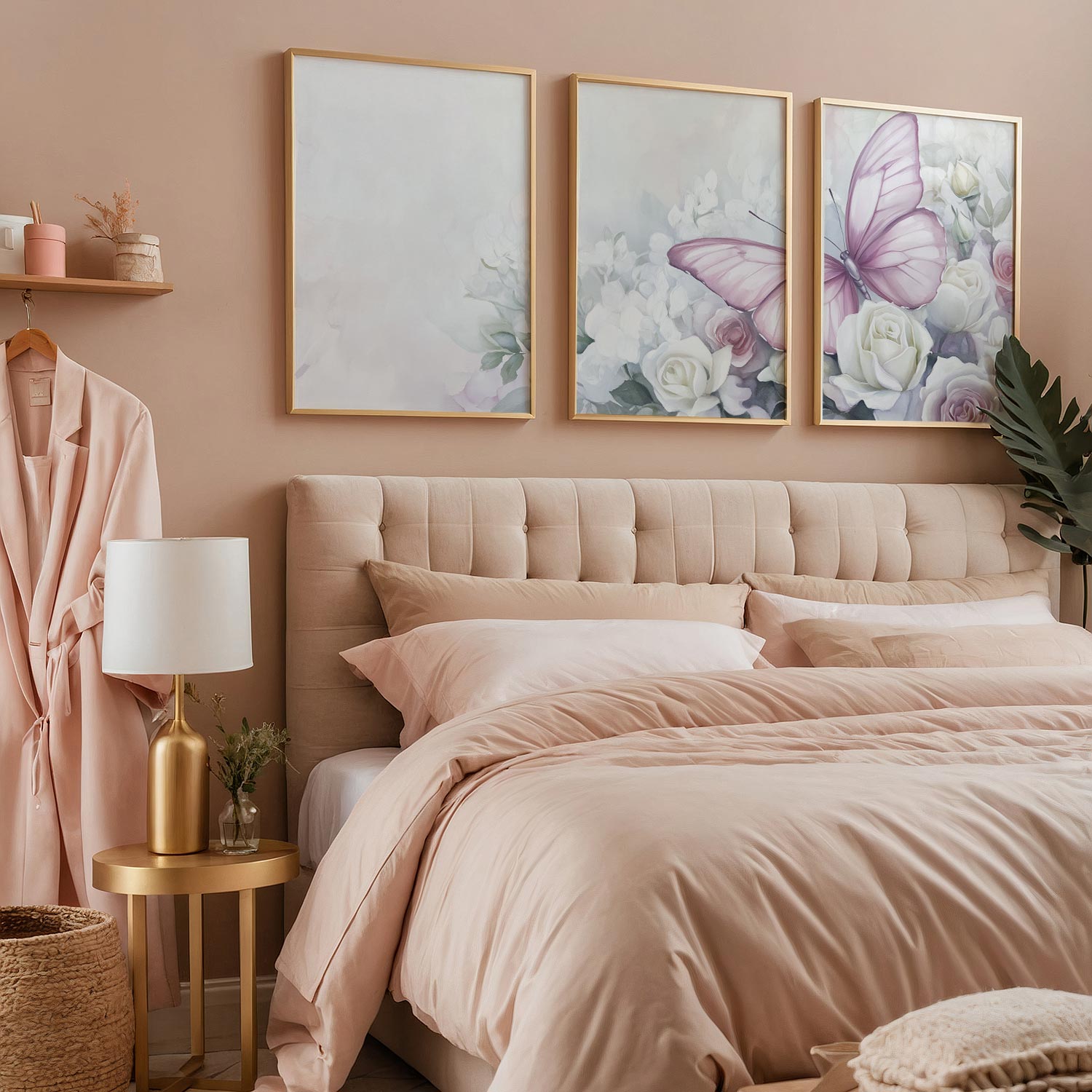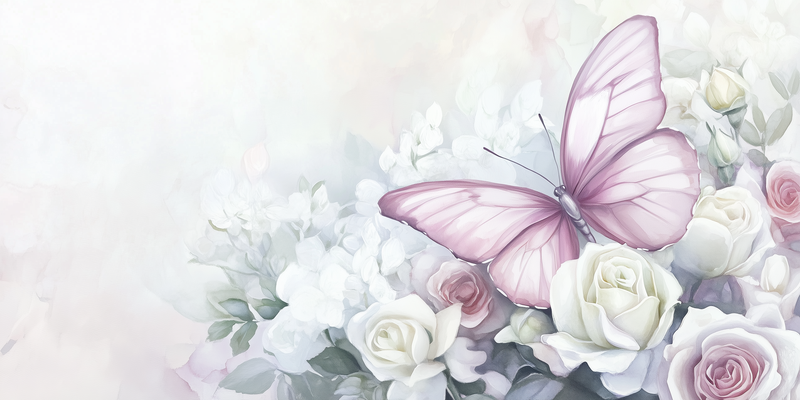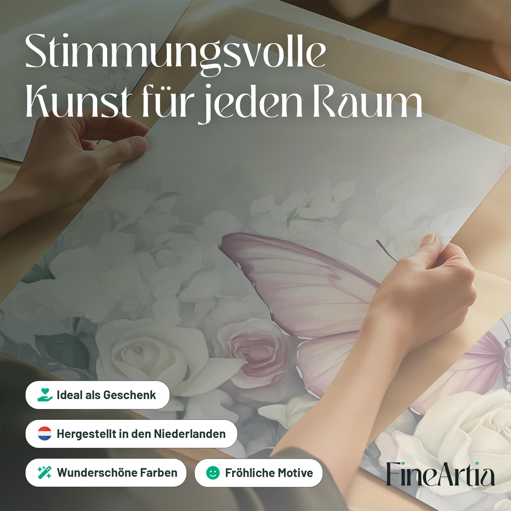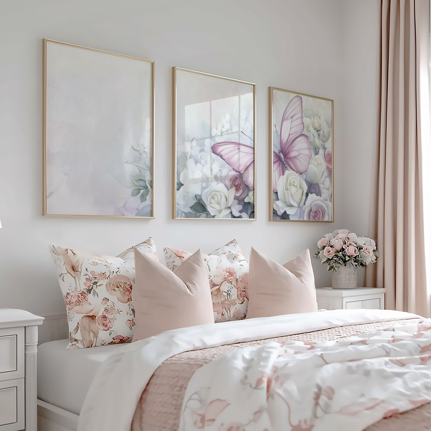 Zacht Roze Rozen en Vlinder – Serene Wanddecoratie