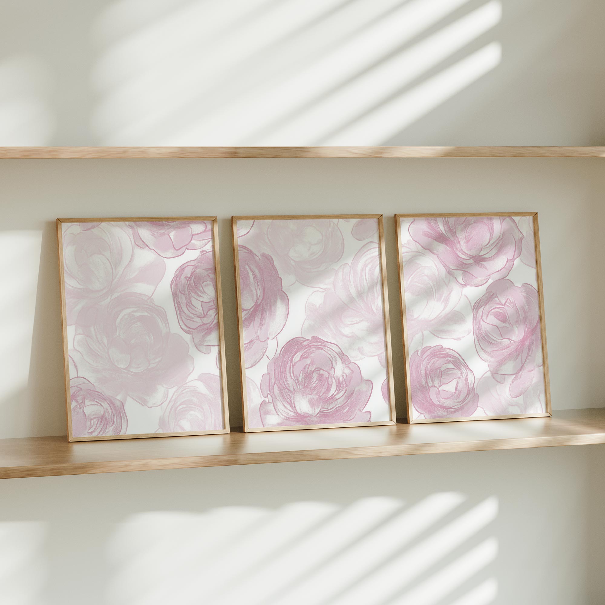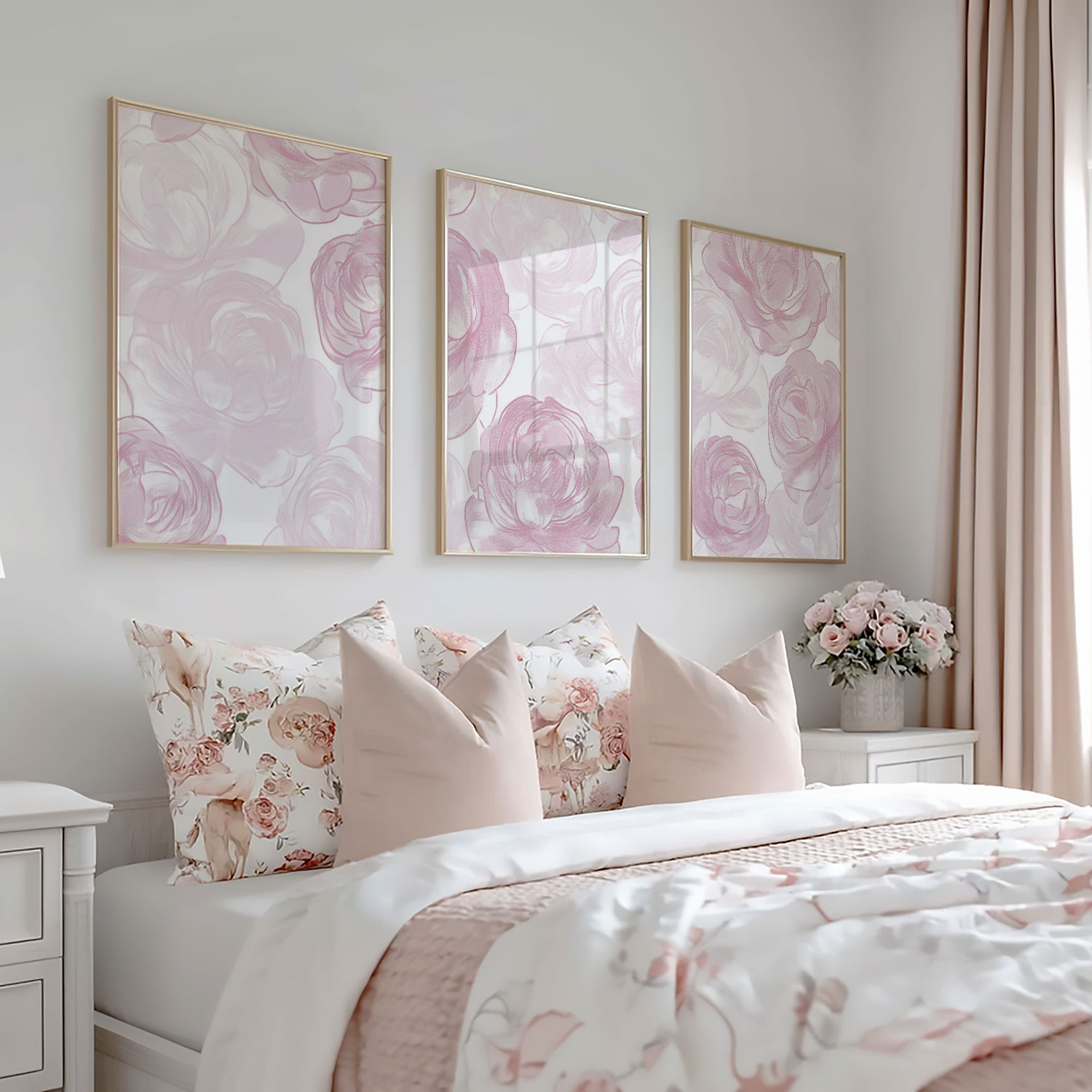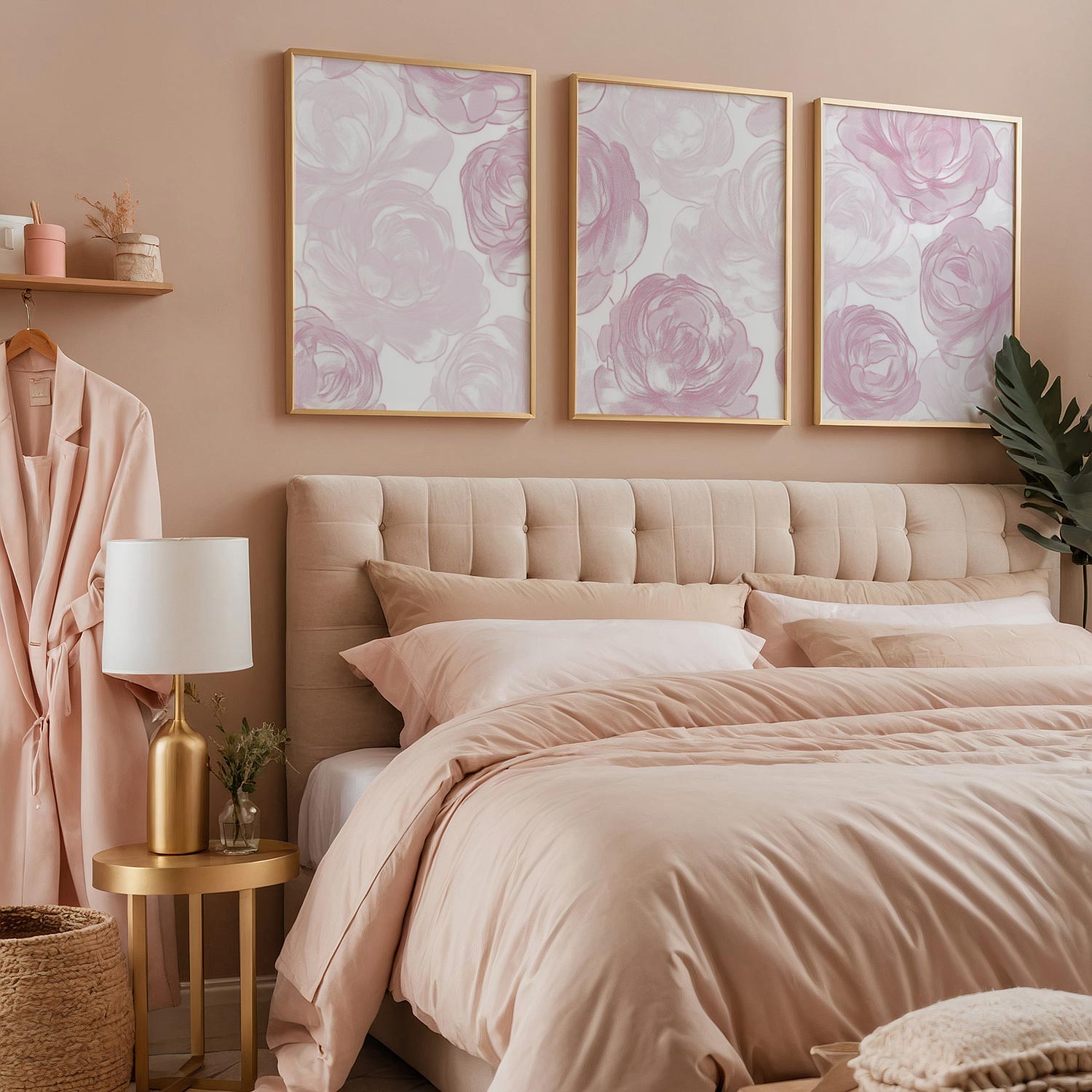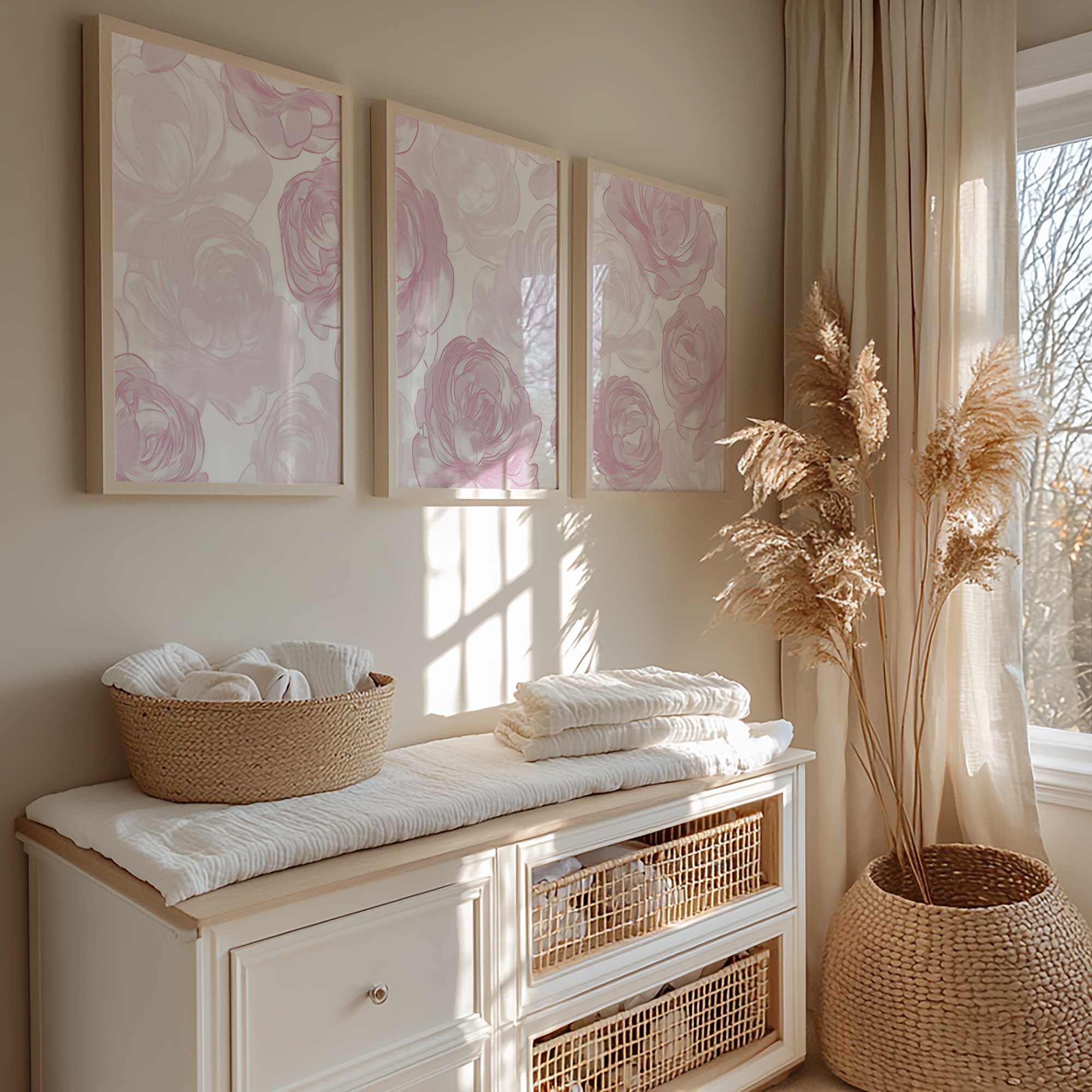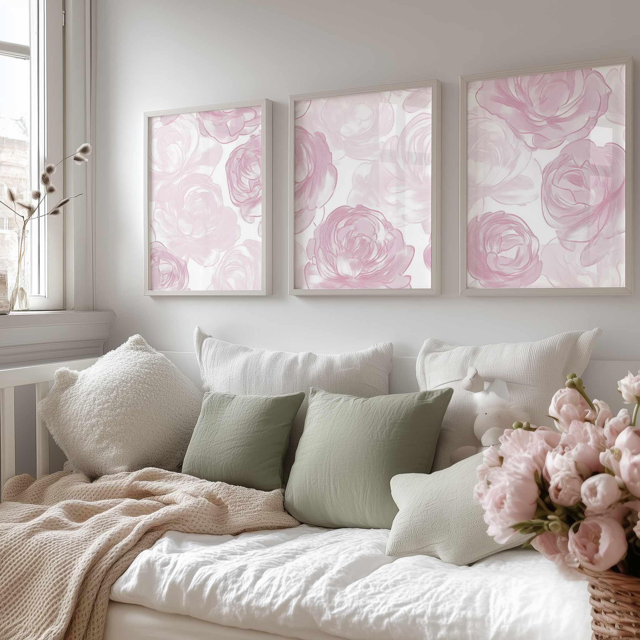 Zacht Roze Watercolor Bloemenpatroon – Elegante Wanddecoratie