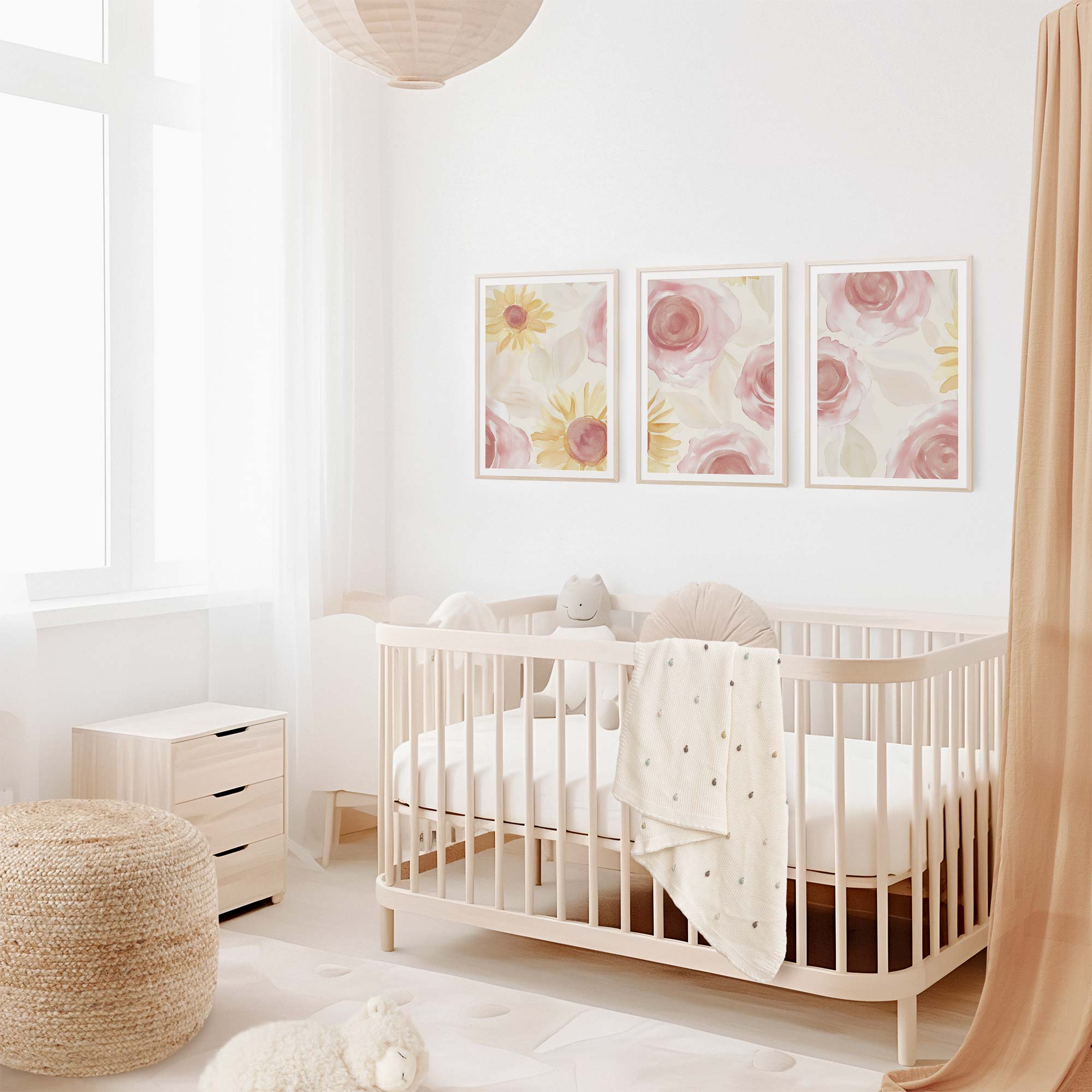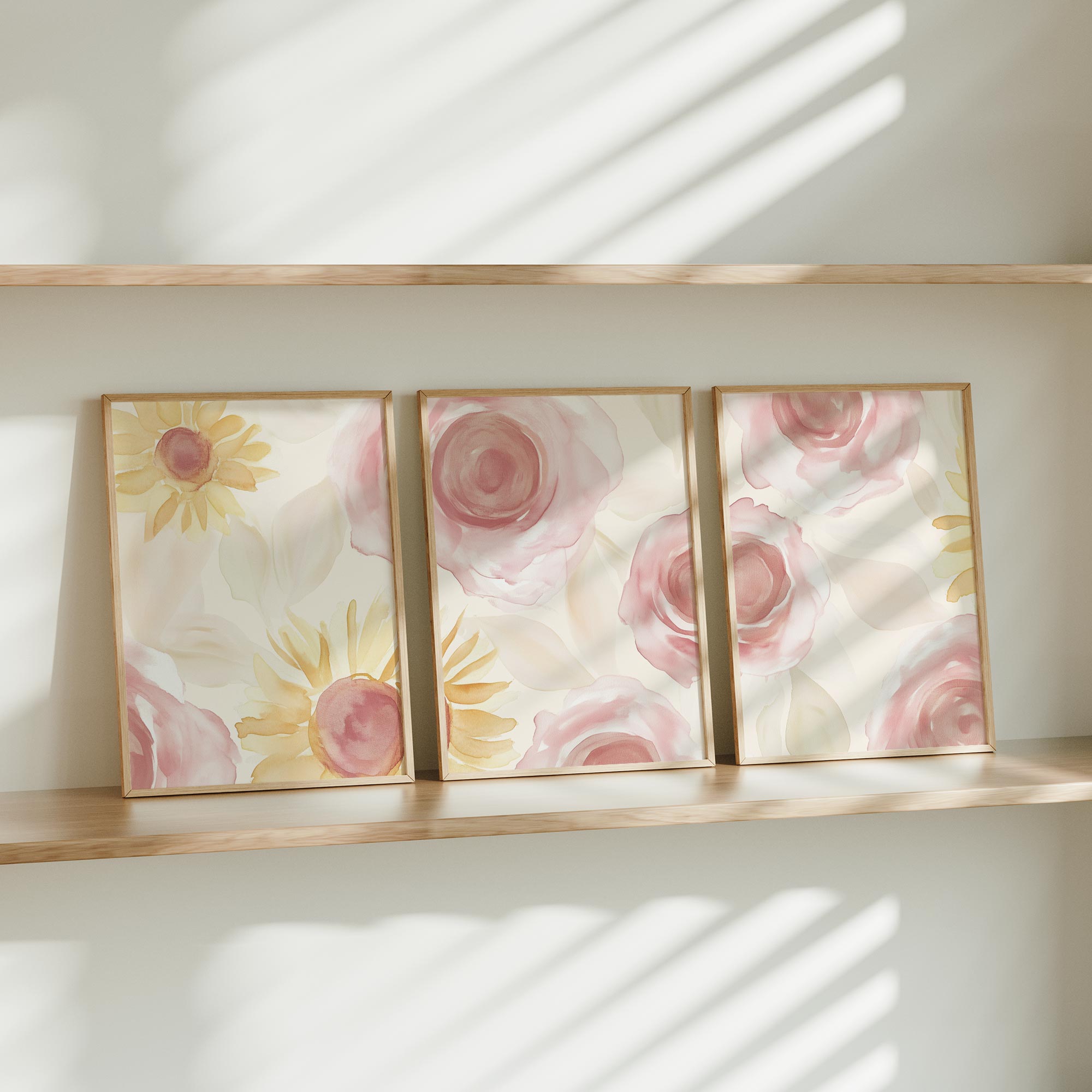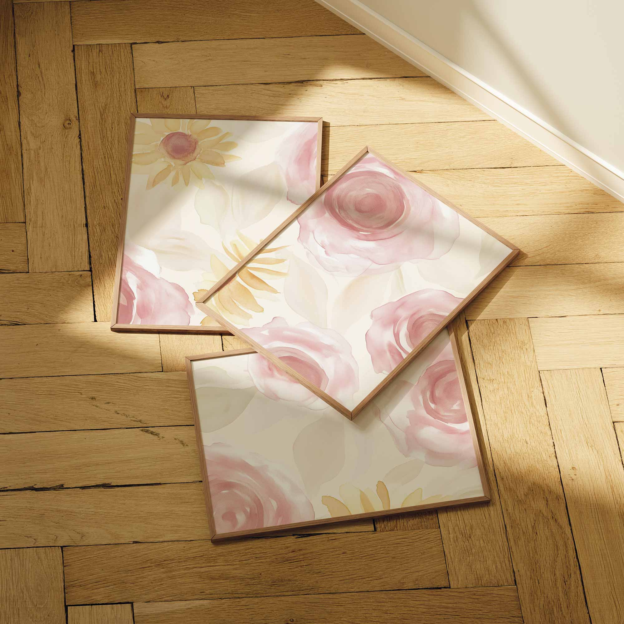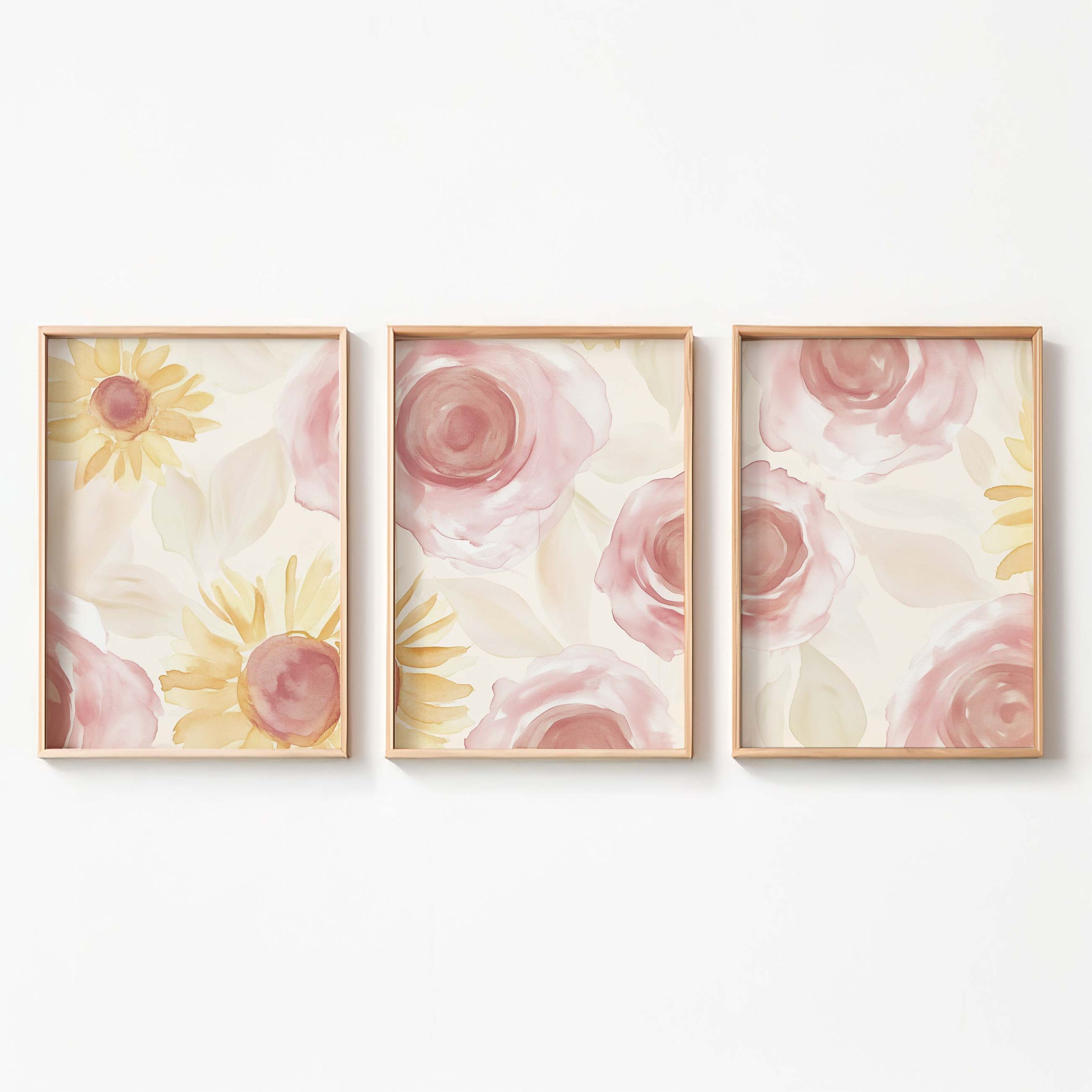 Terug naar collectie Posters Zacht Watercolor Bloemenmotief in Roze en Geel