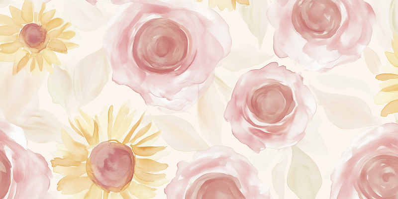Zacht Watercolor Bloemenmotief in Roze en Geel