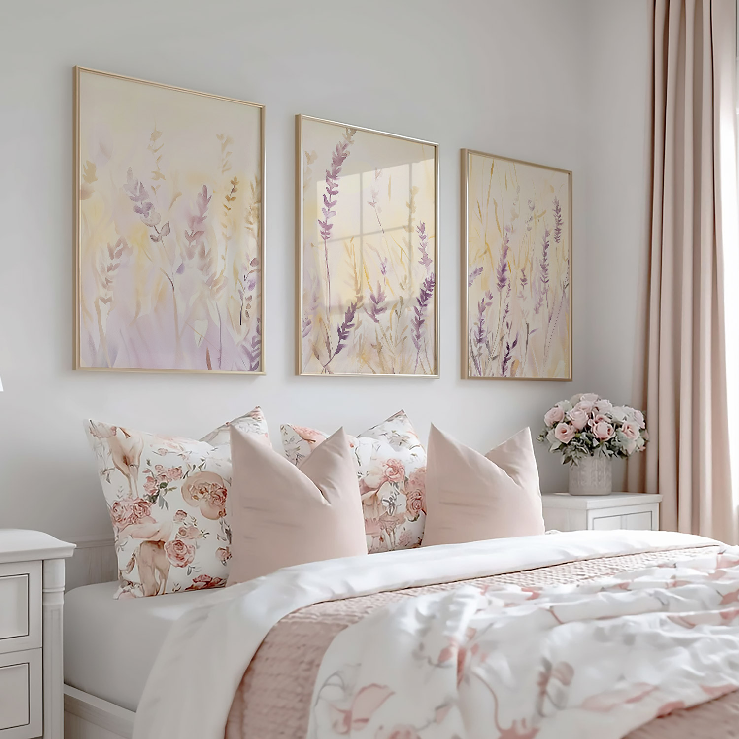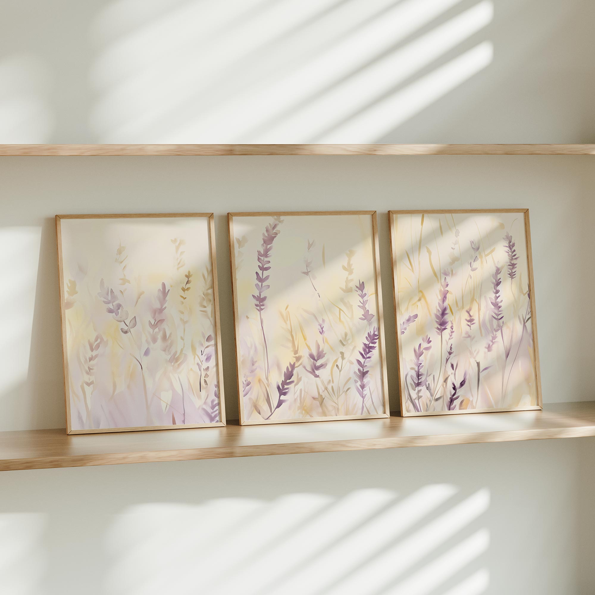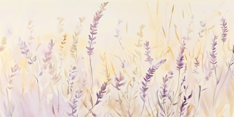 Zacht Watercolor Veld met Paarse Bloemen en Elegante Stengels