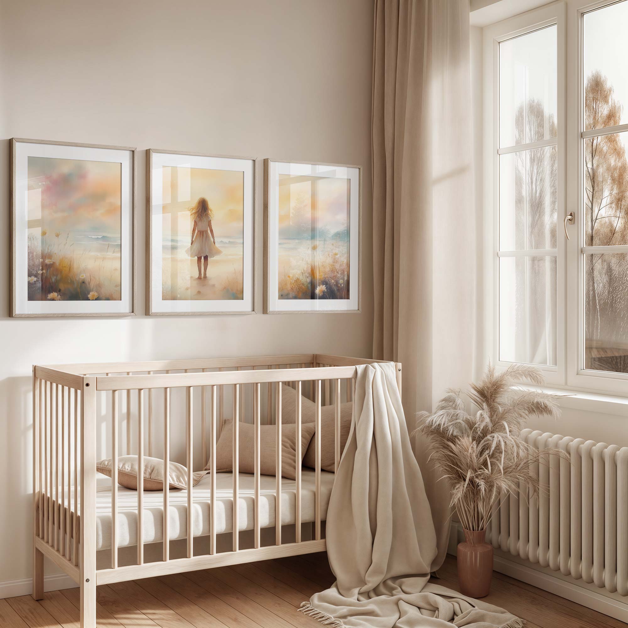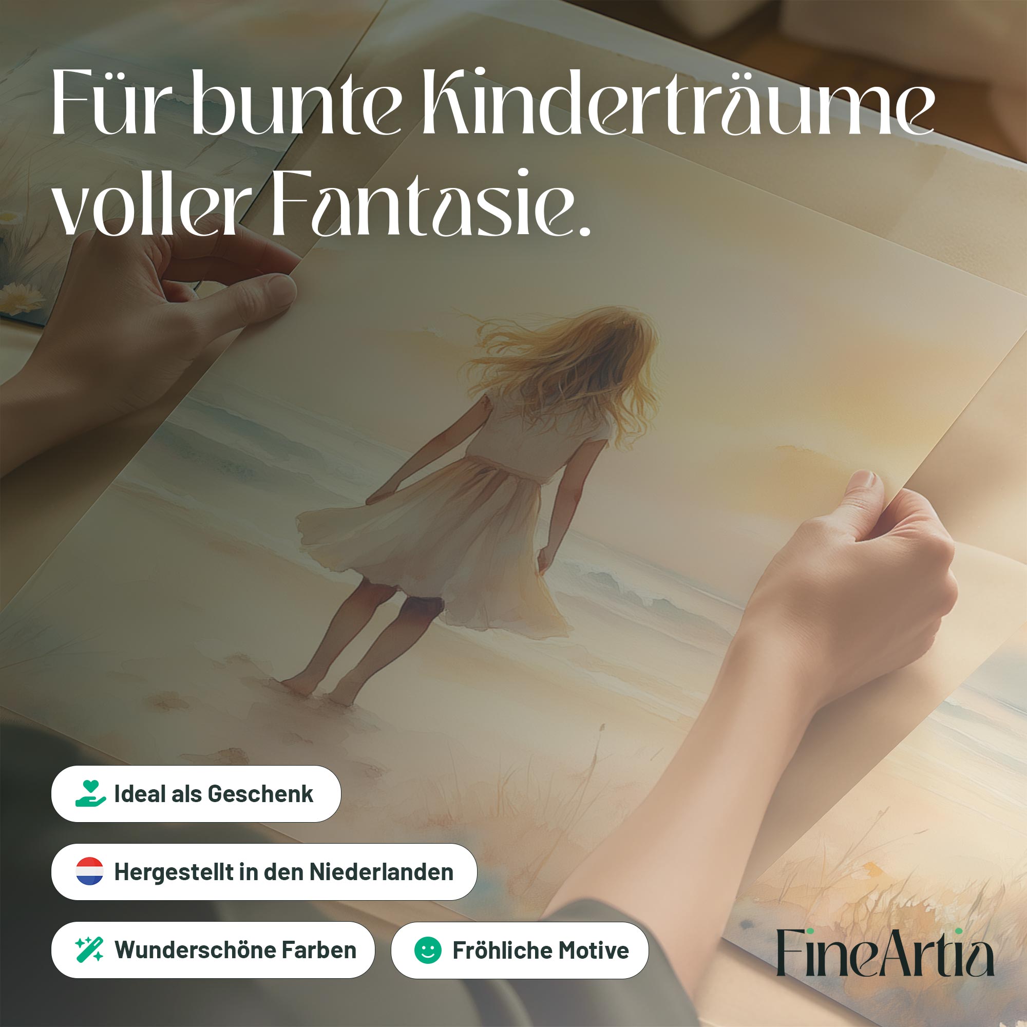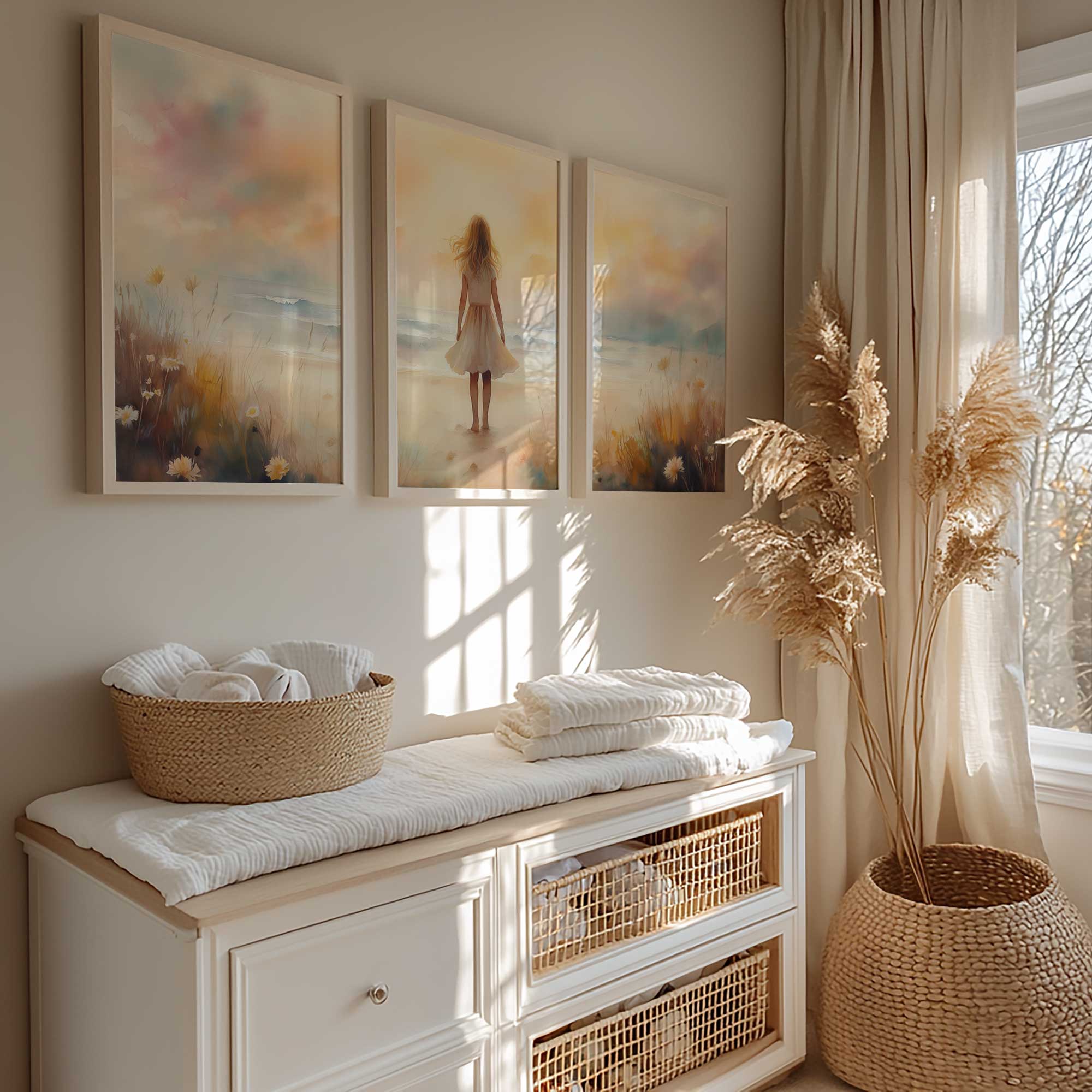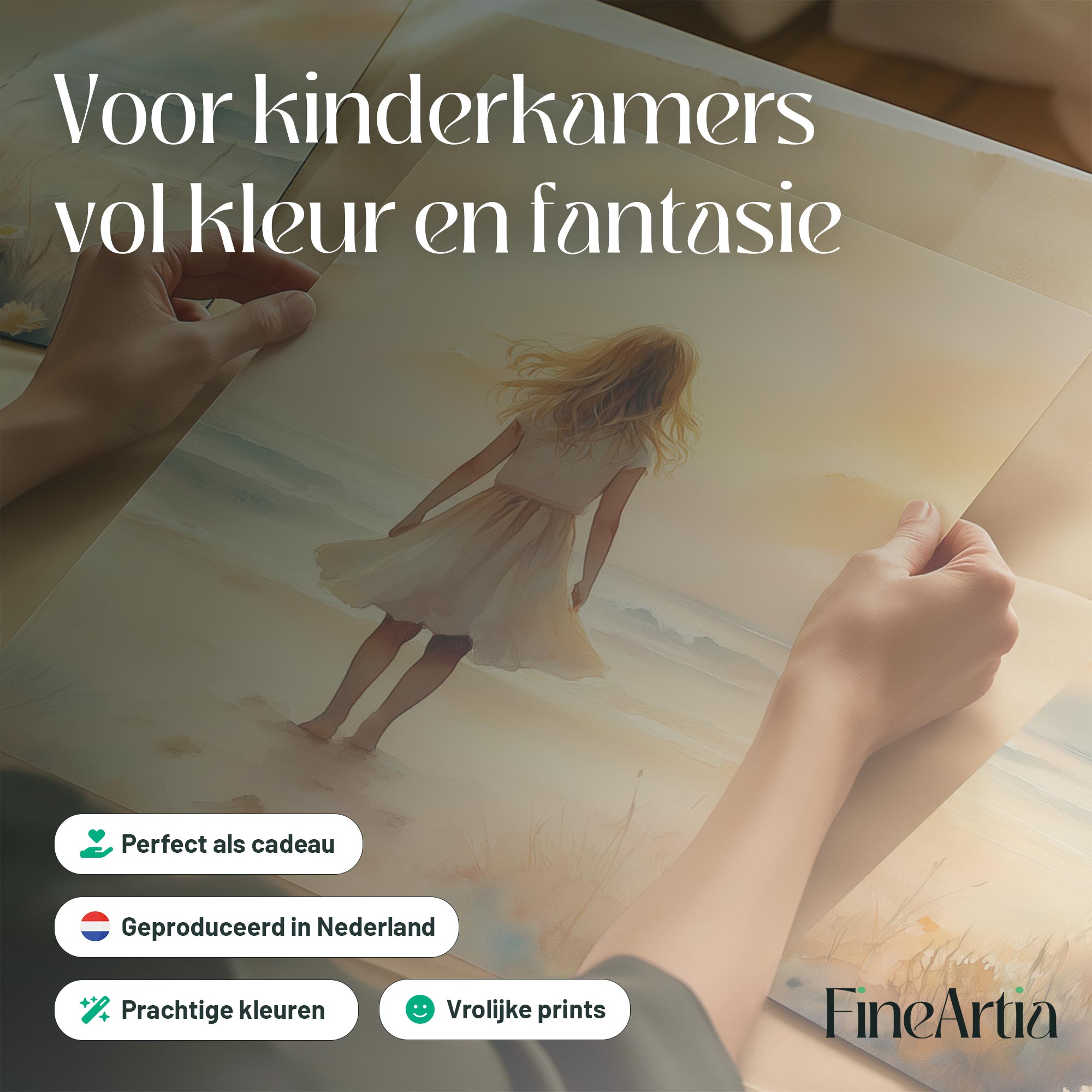 Zacht Zeegezicht: Meisje in Witte Jurk bij Zonsondergang