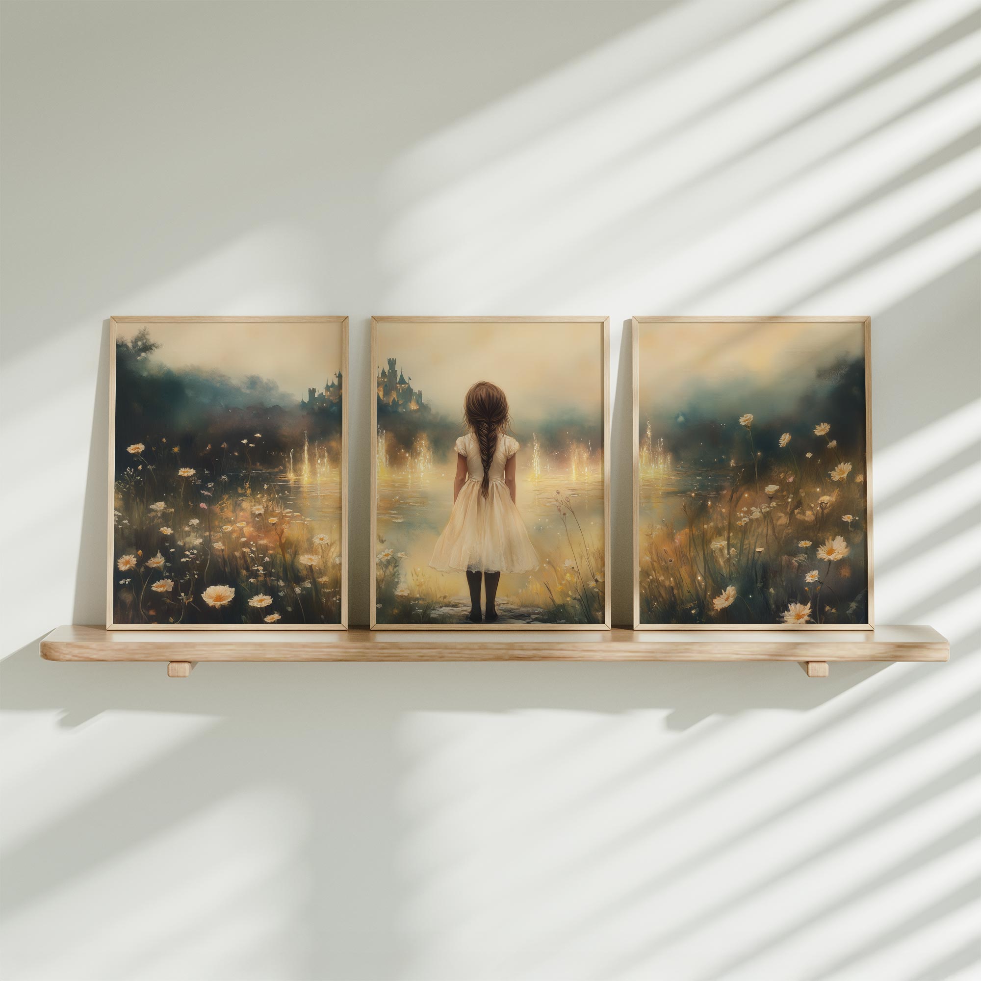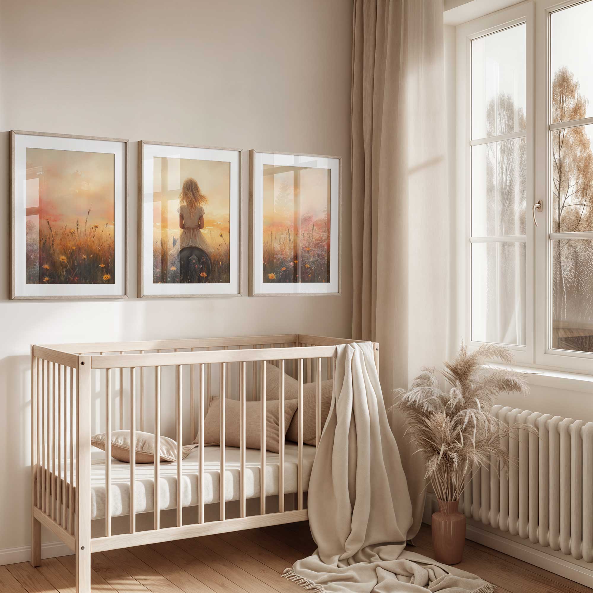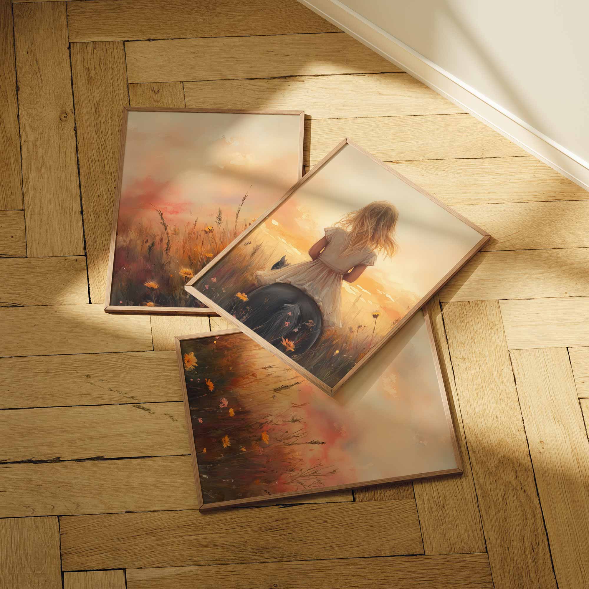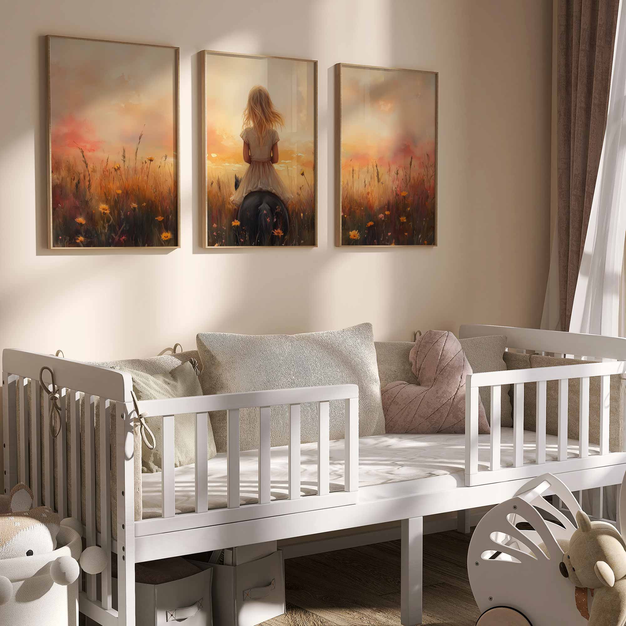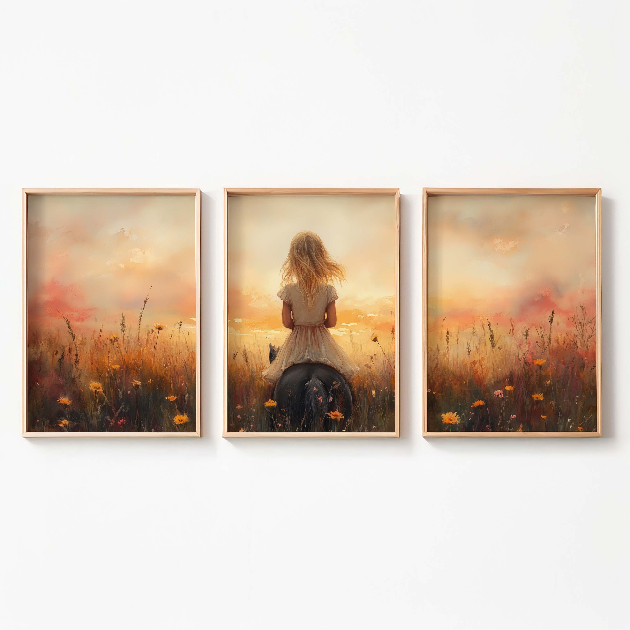 Zacht Zonlicht: Meisje te Paard tussen Bloemen