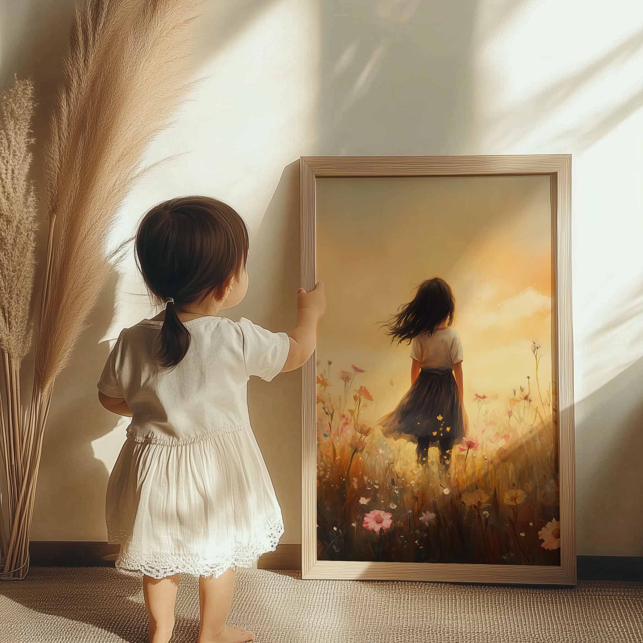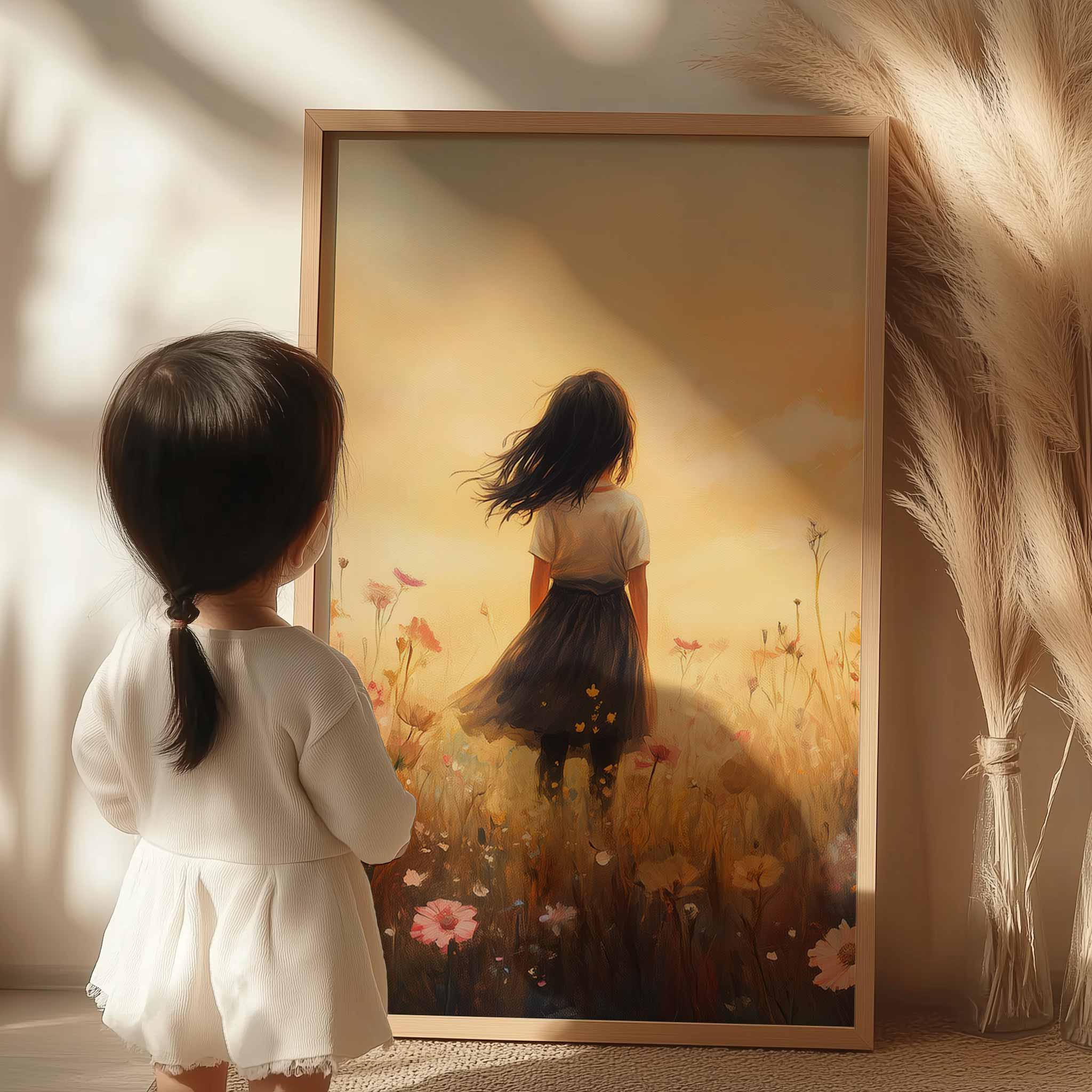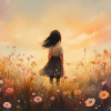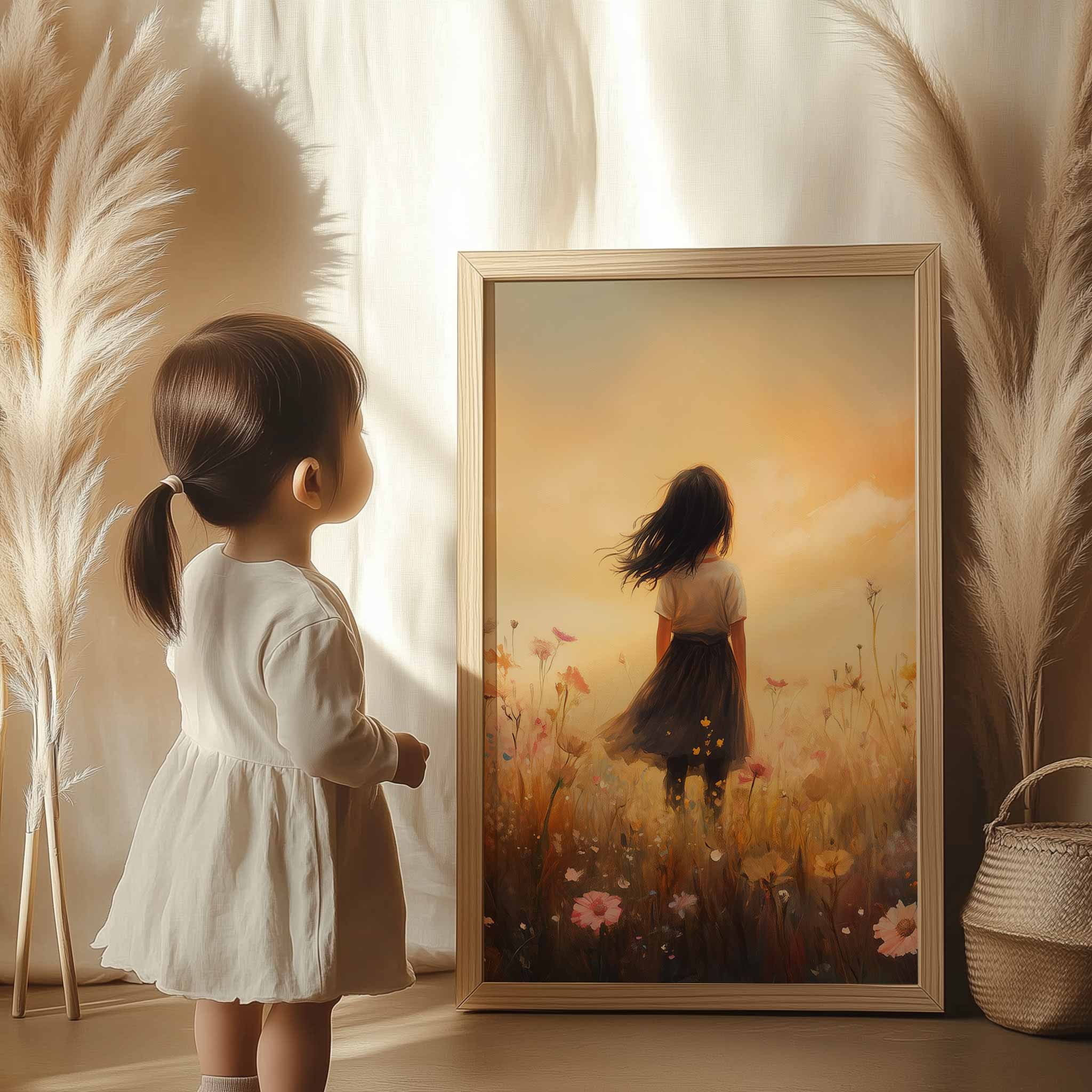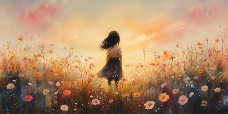 Zacht Zonnestralen Meisje in Bloemenveld