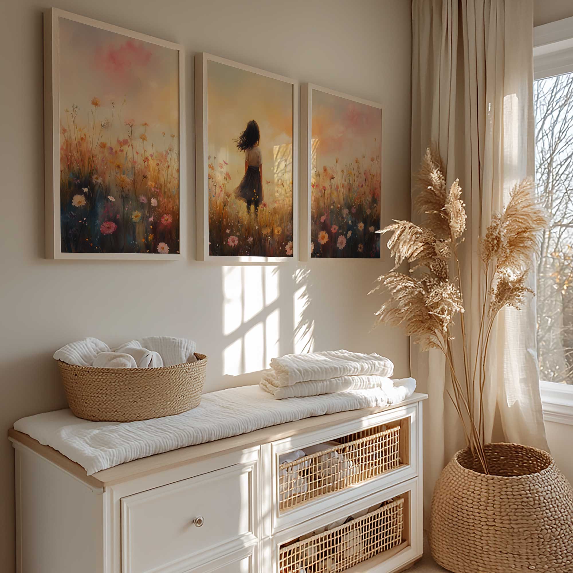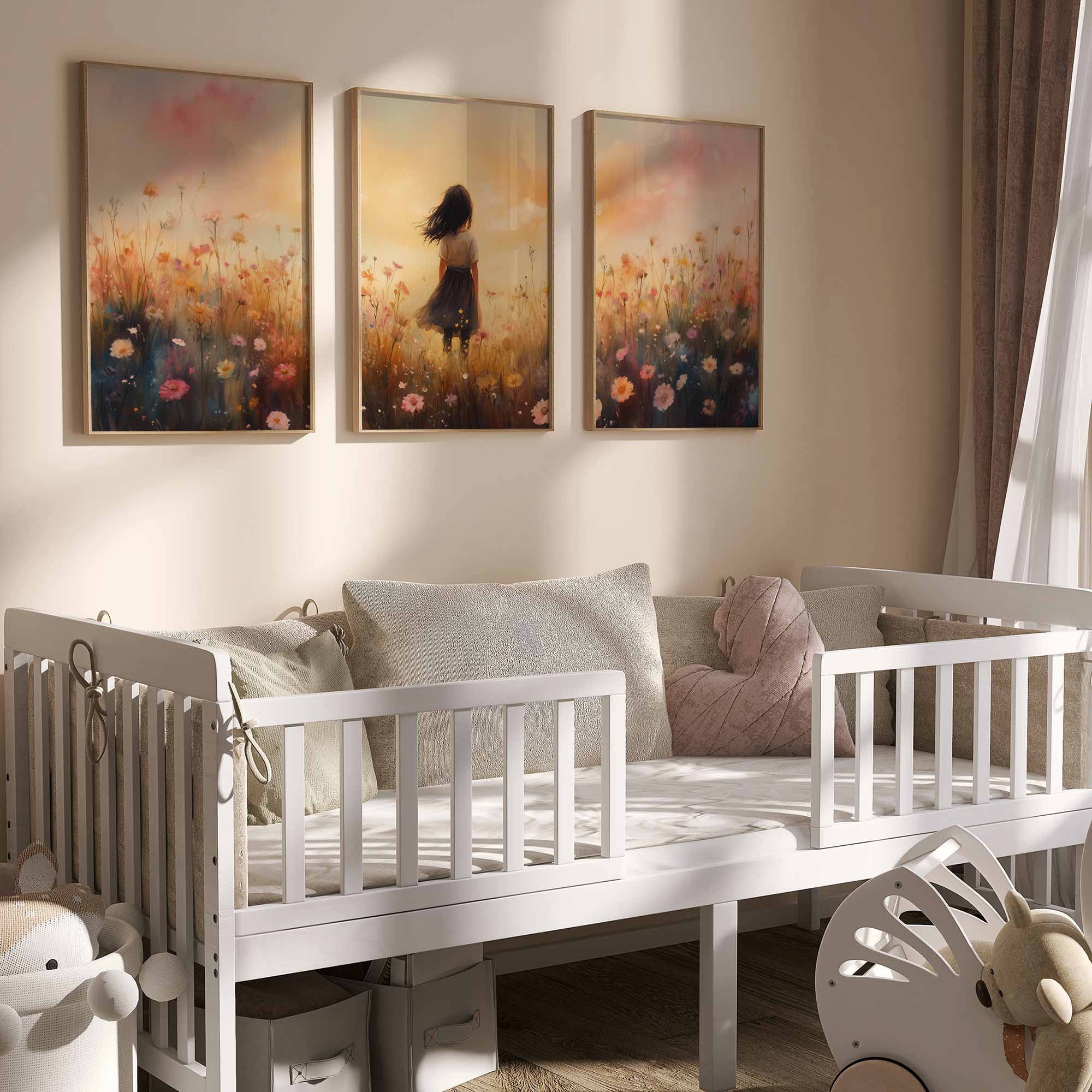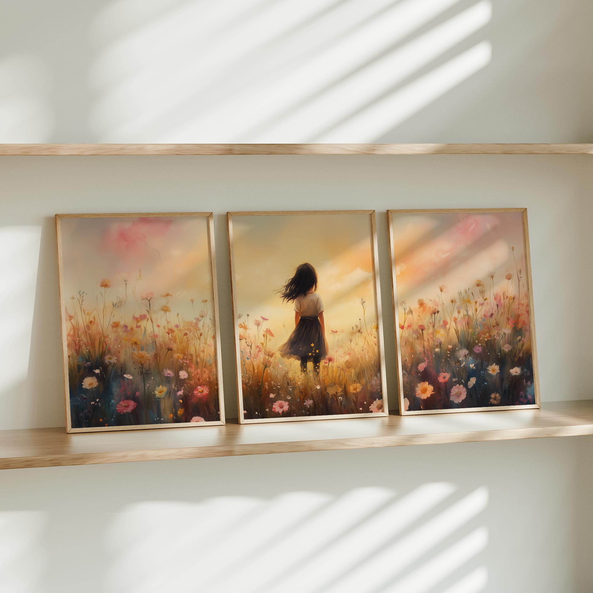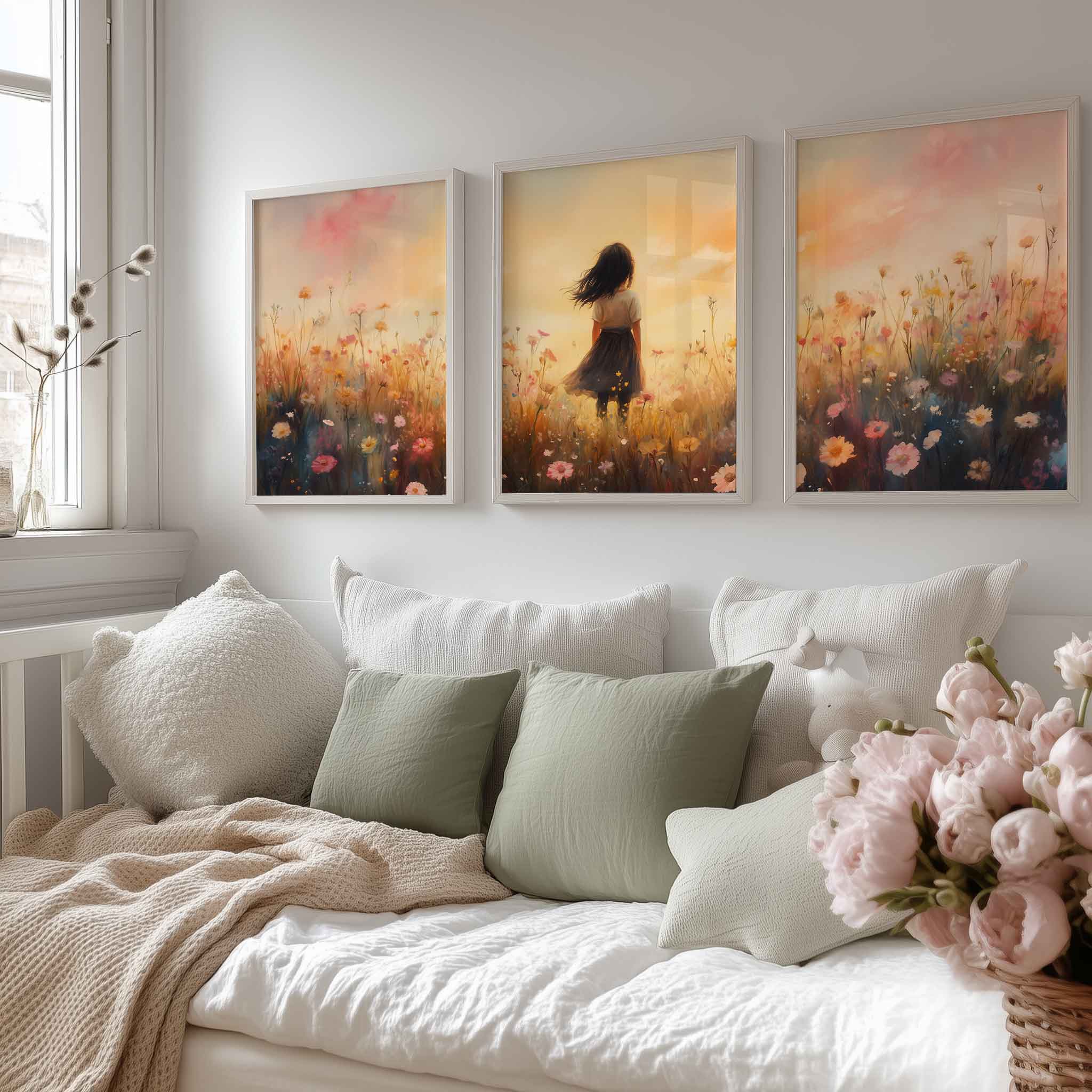 Zacht Zonnestralen Meisje in Bloemenveld