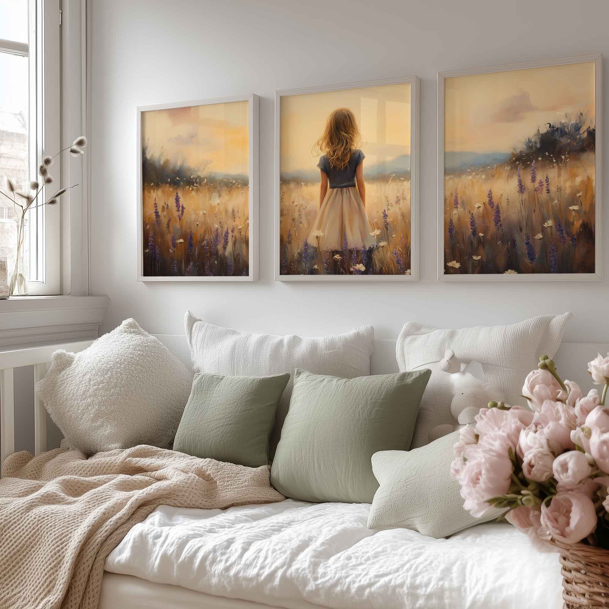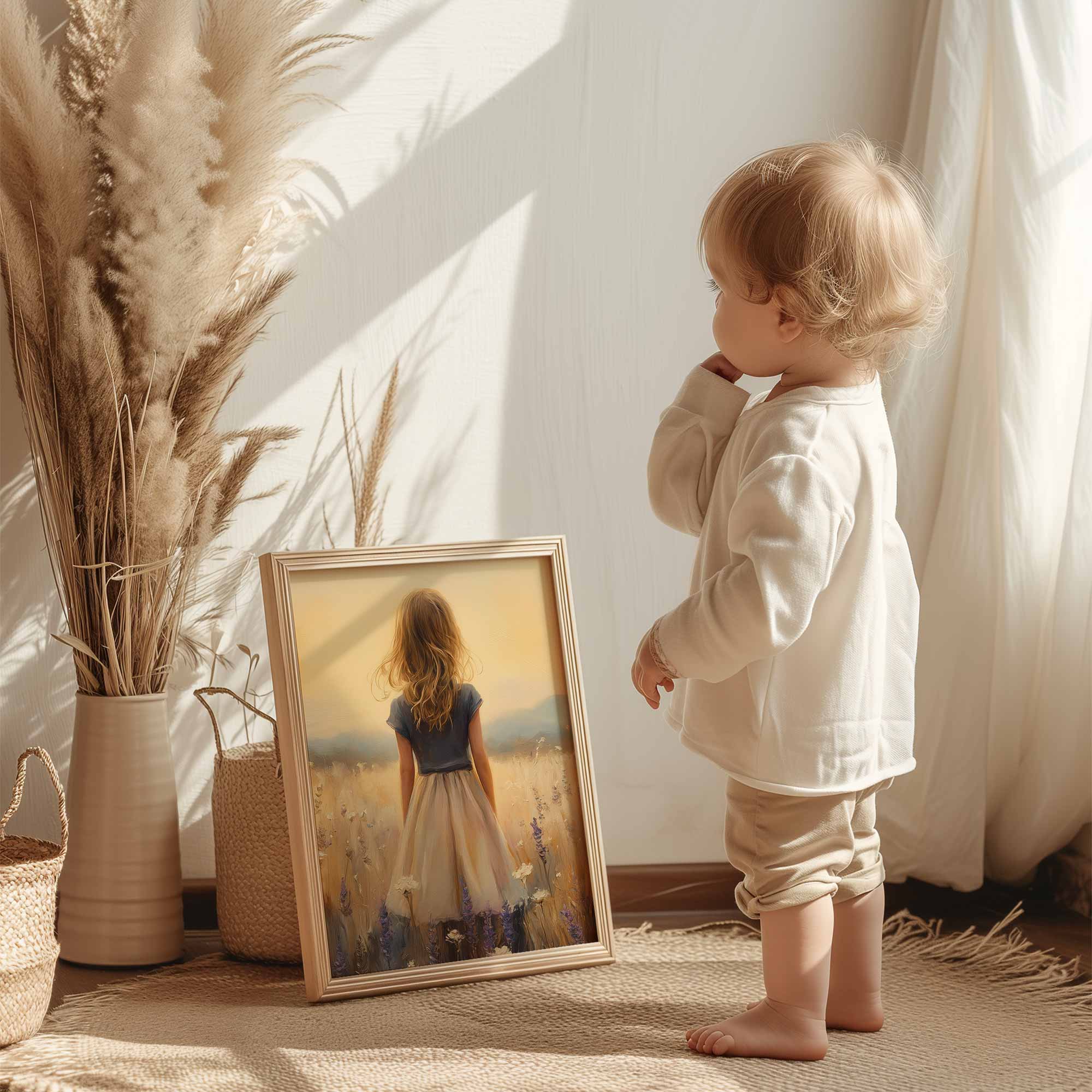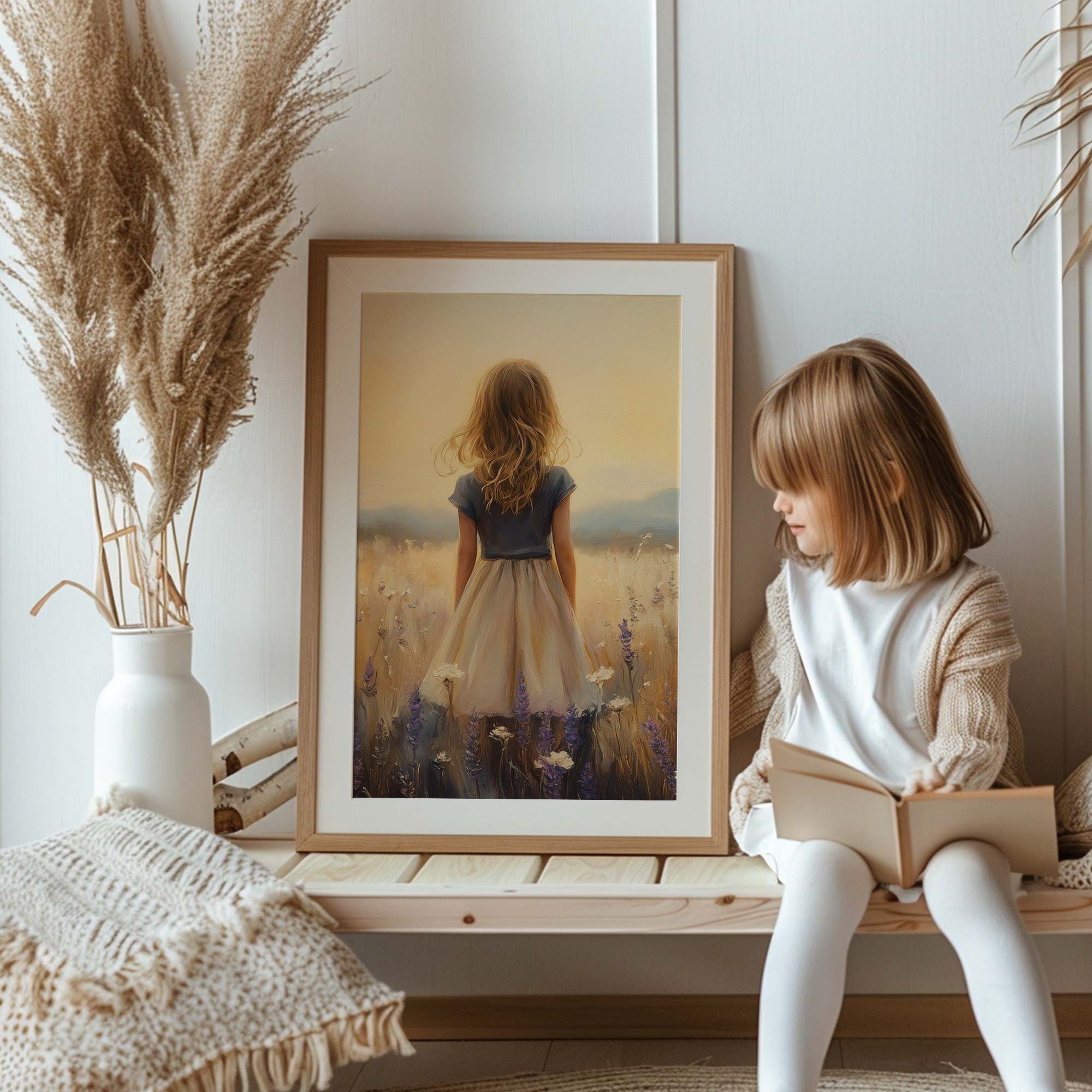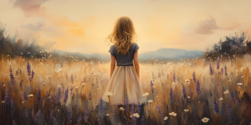 Zacht Zonsondergang Meisje in Bloemenveld