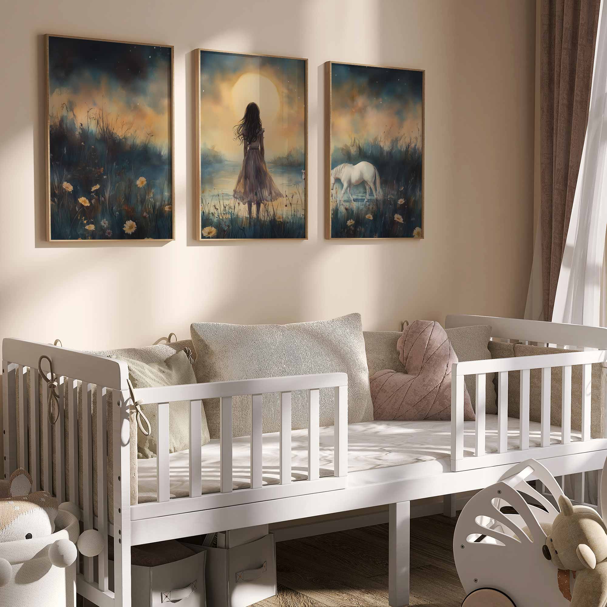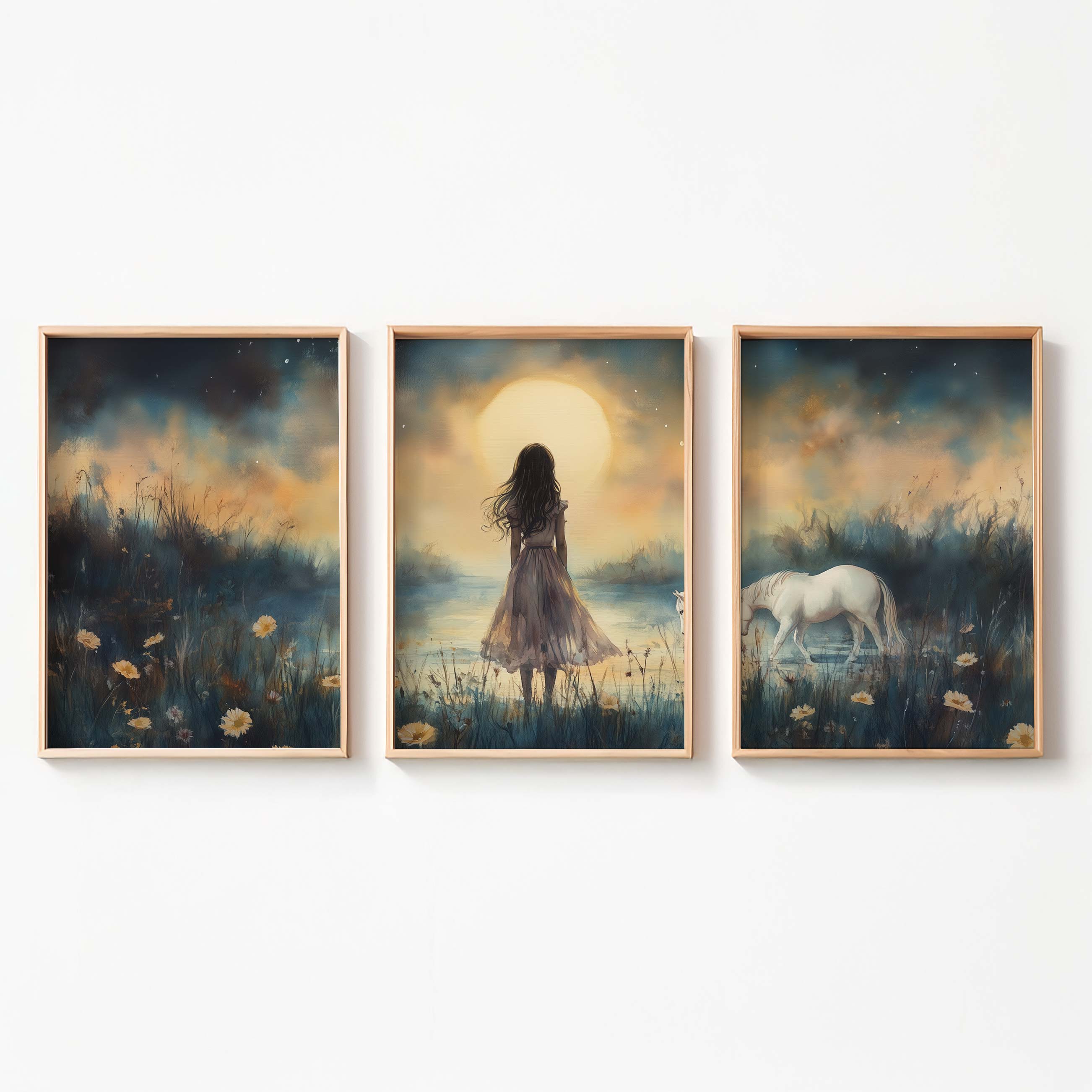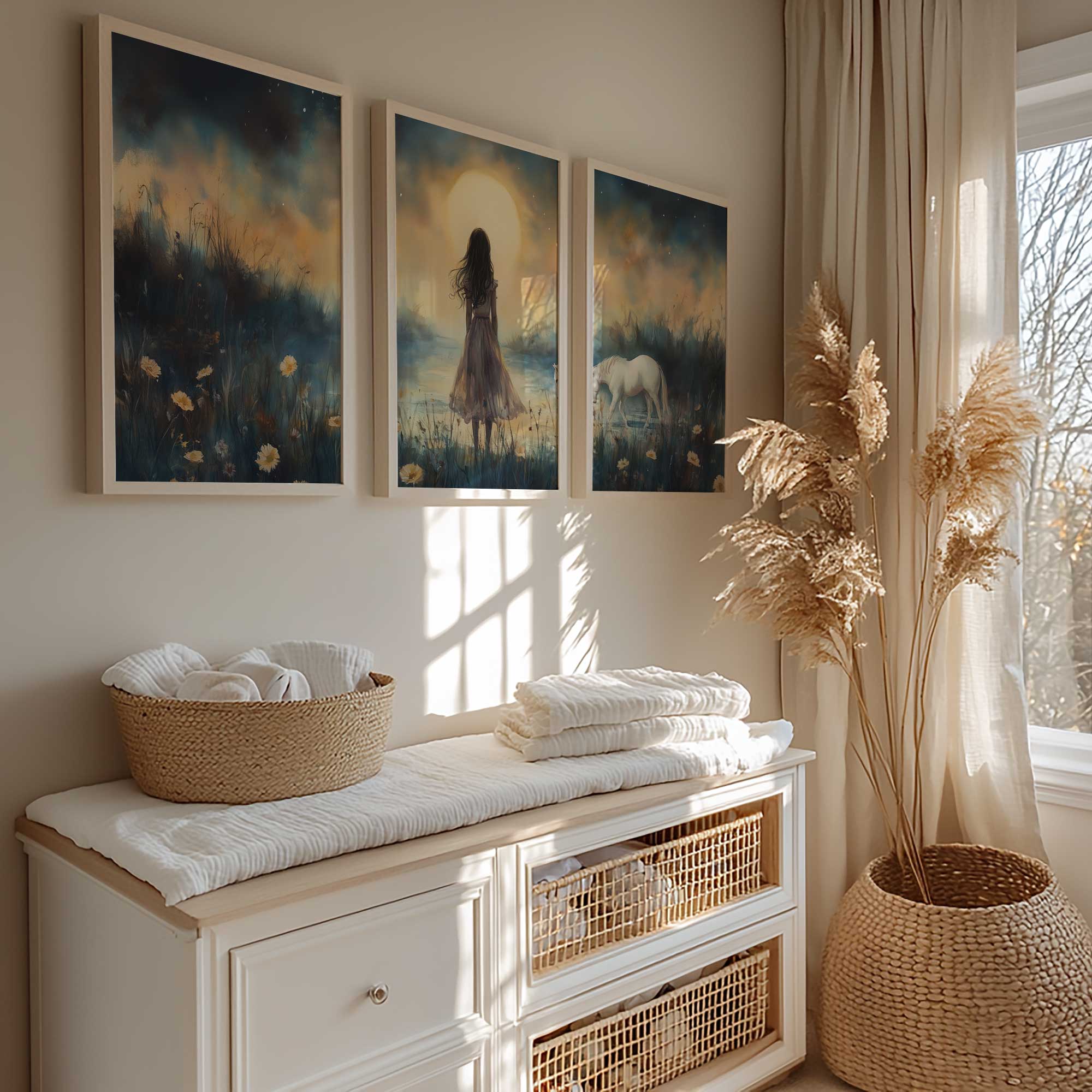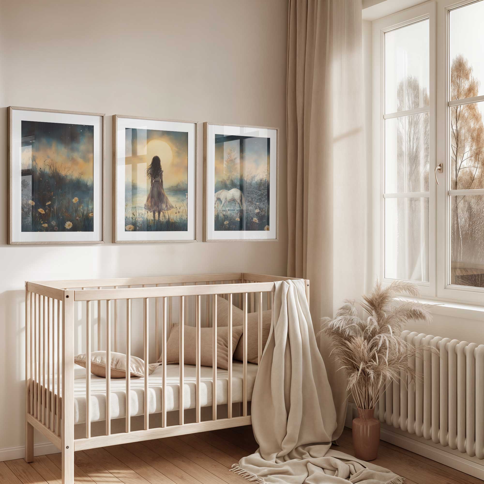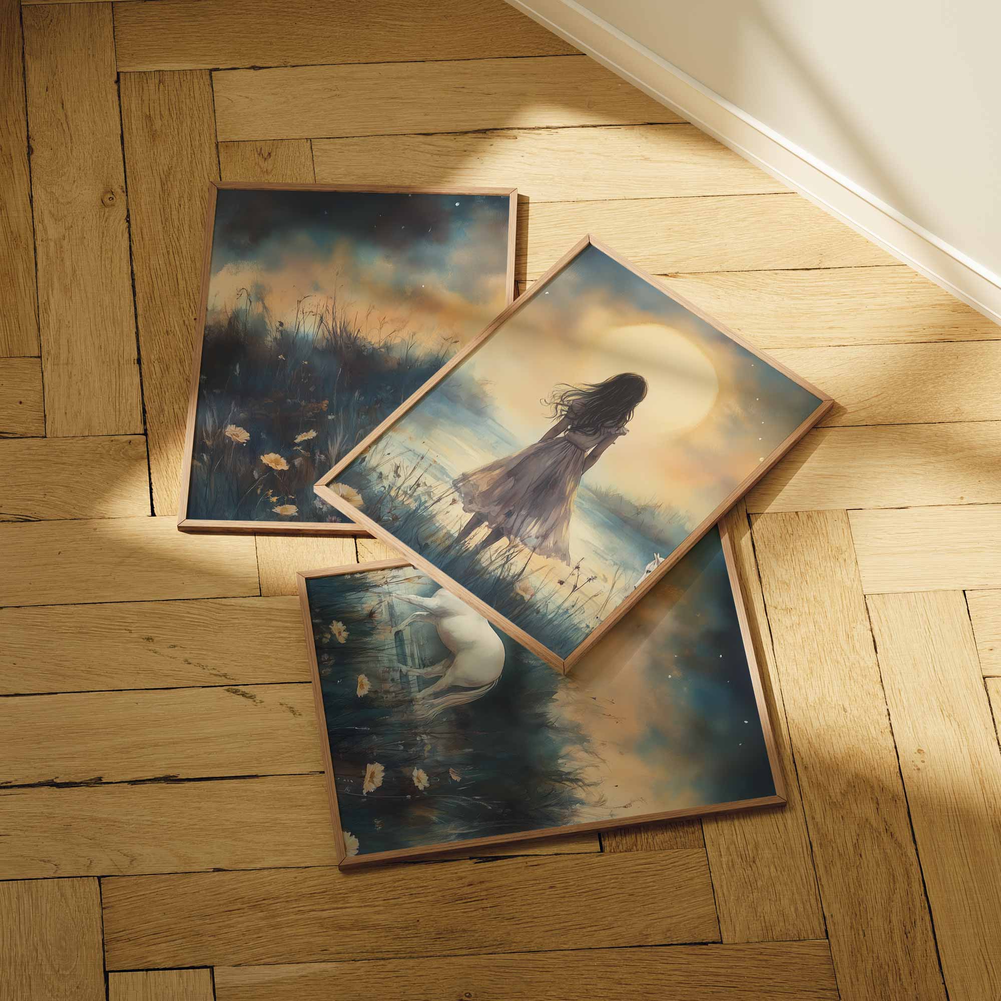 Terug naar collectie Posters Zacht Zonsondergang met Dame en Witte Paard