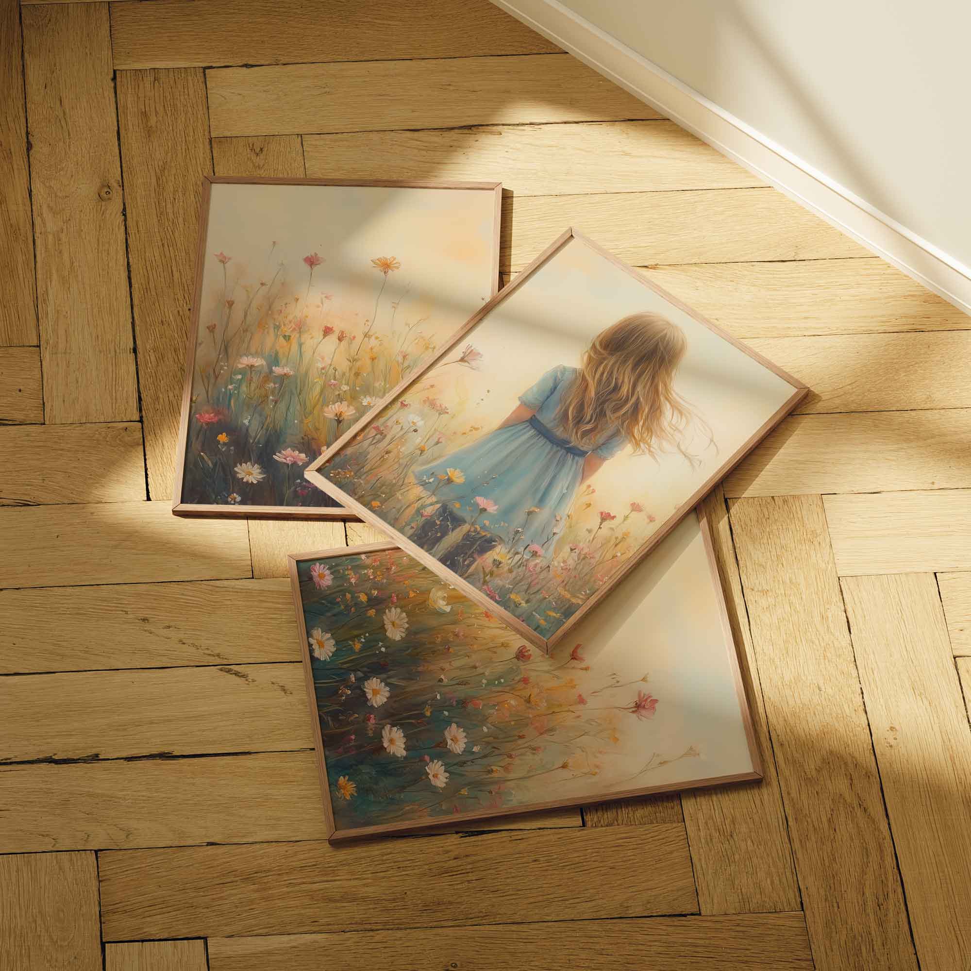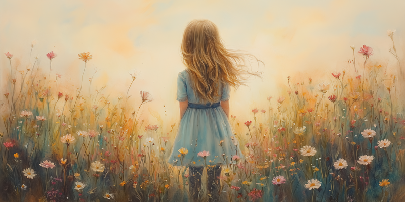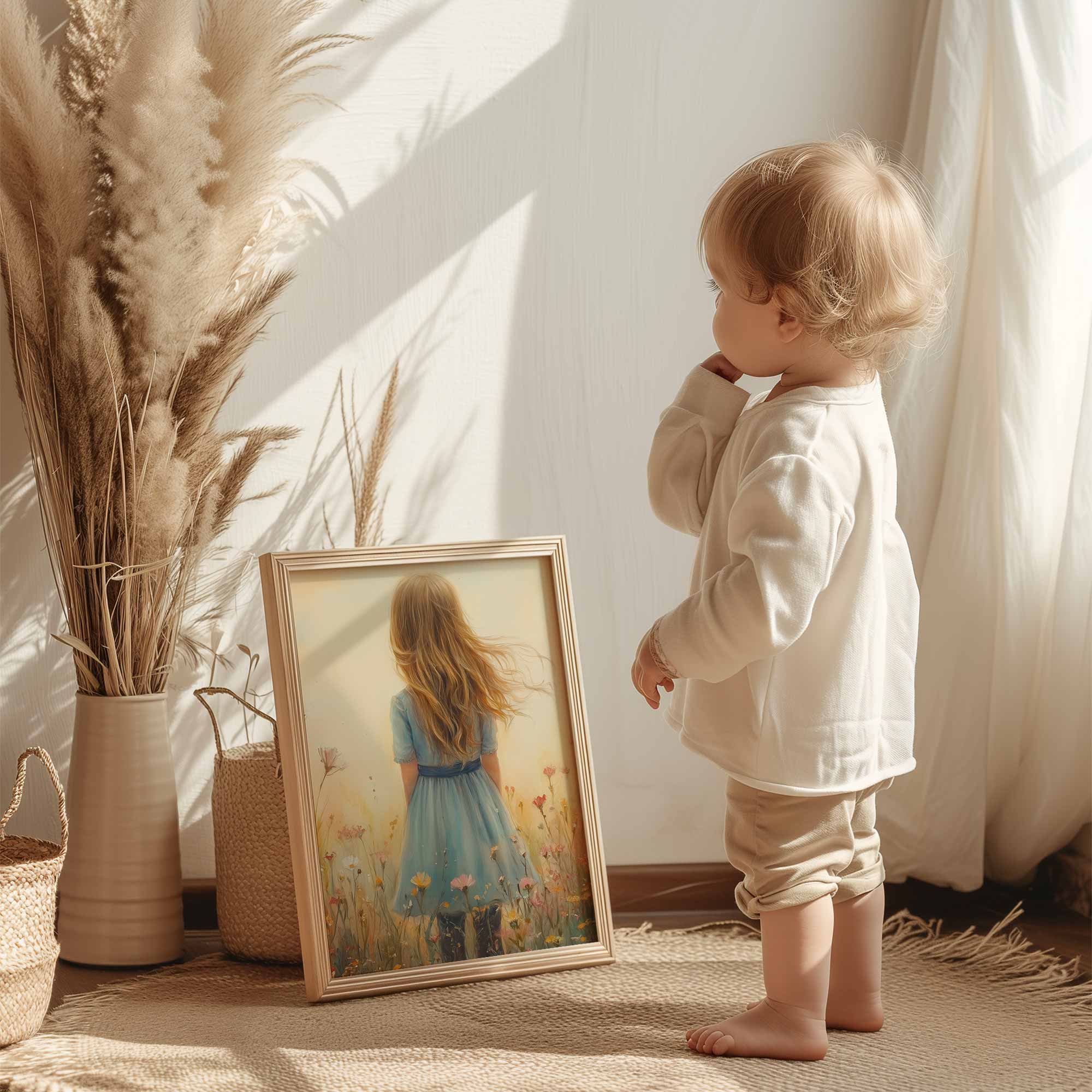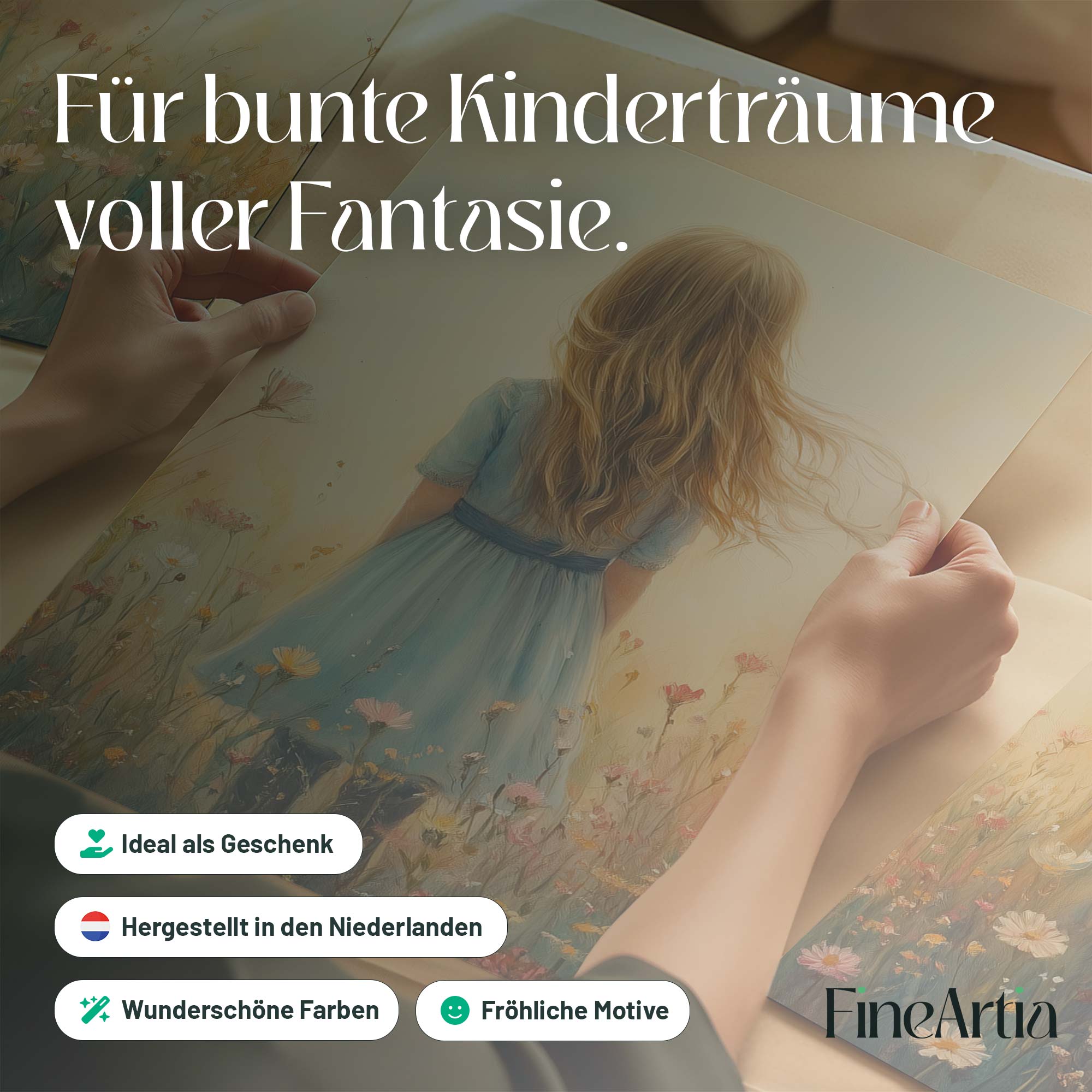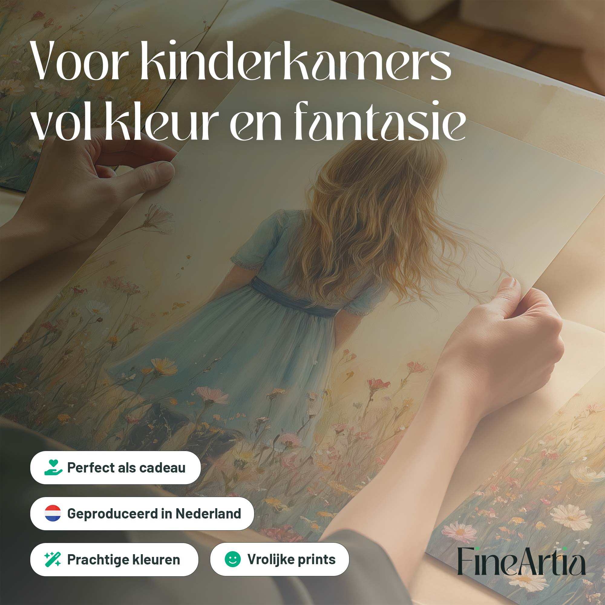 Terug naar collectie Posters Zachtblauwe droom in bloemenveld