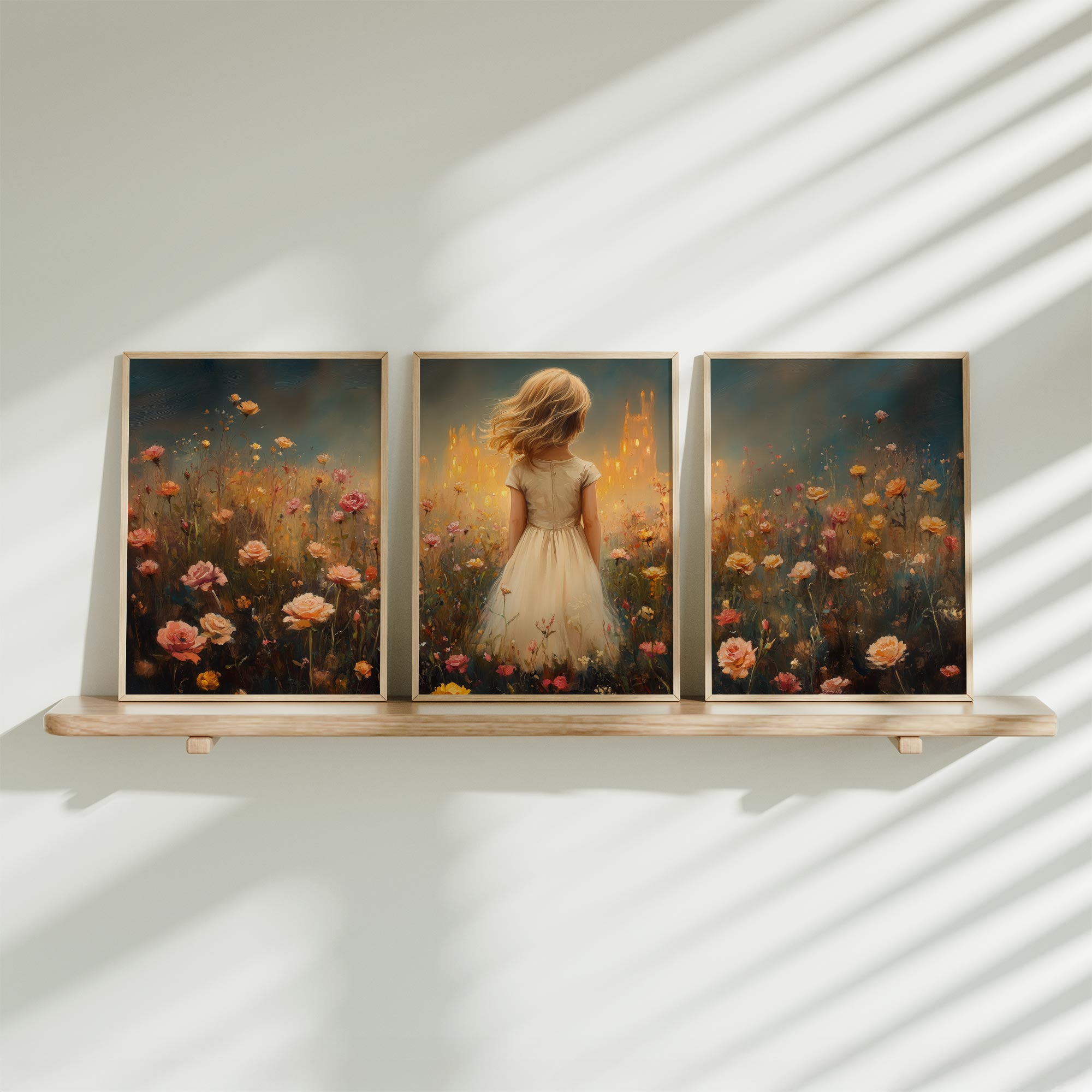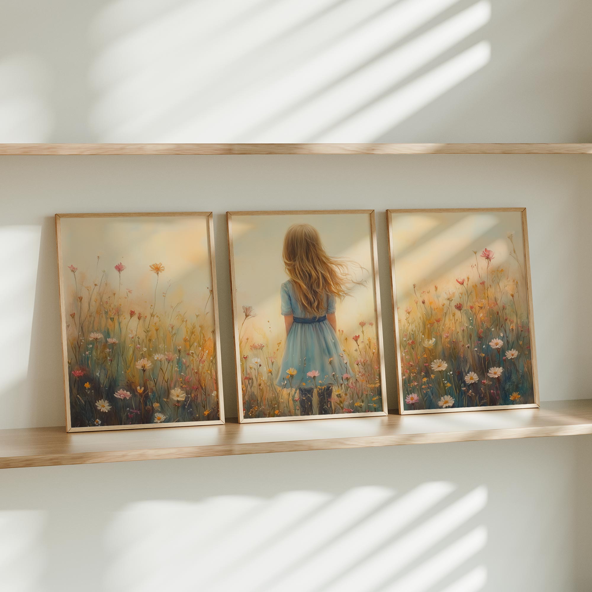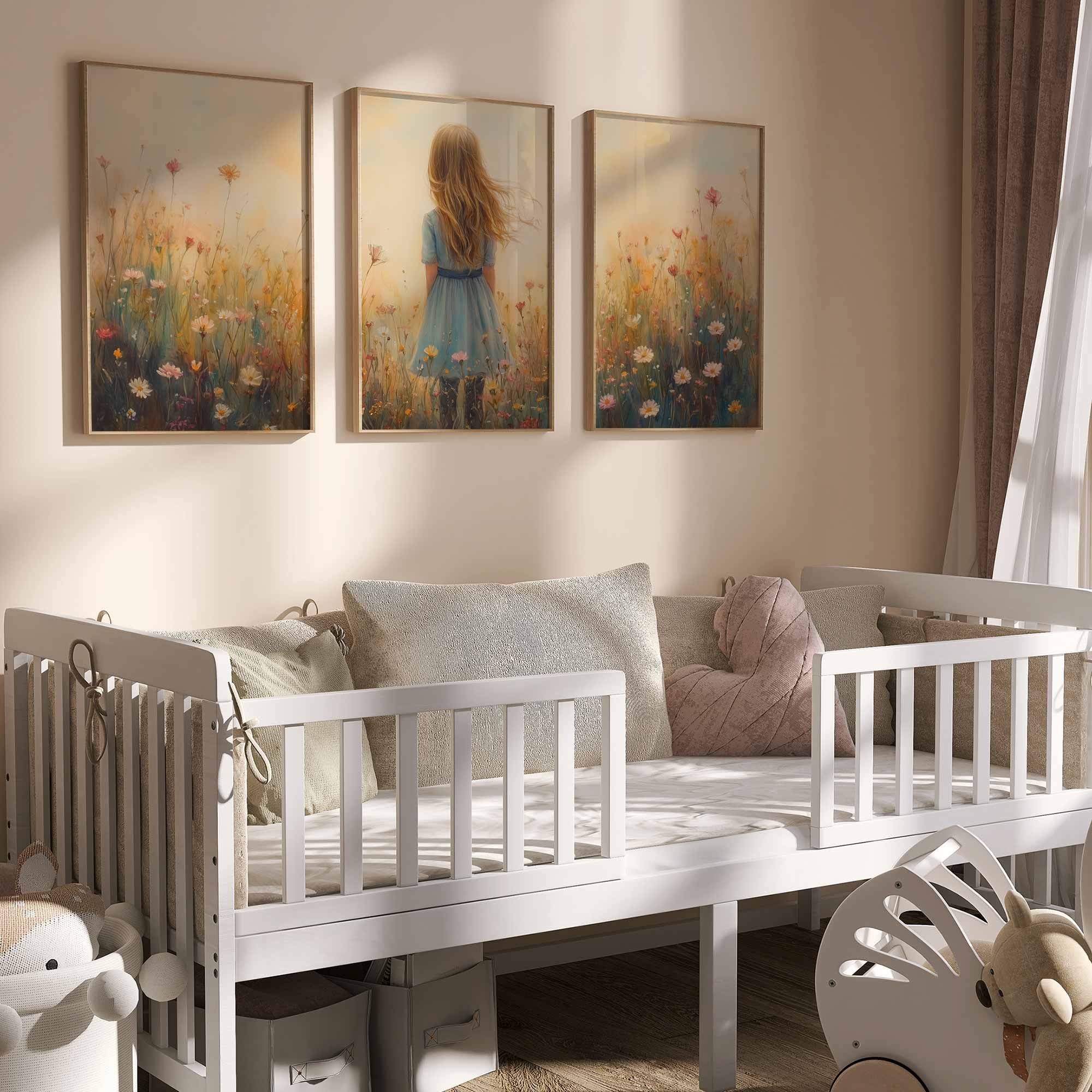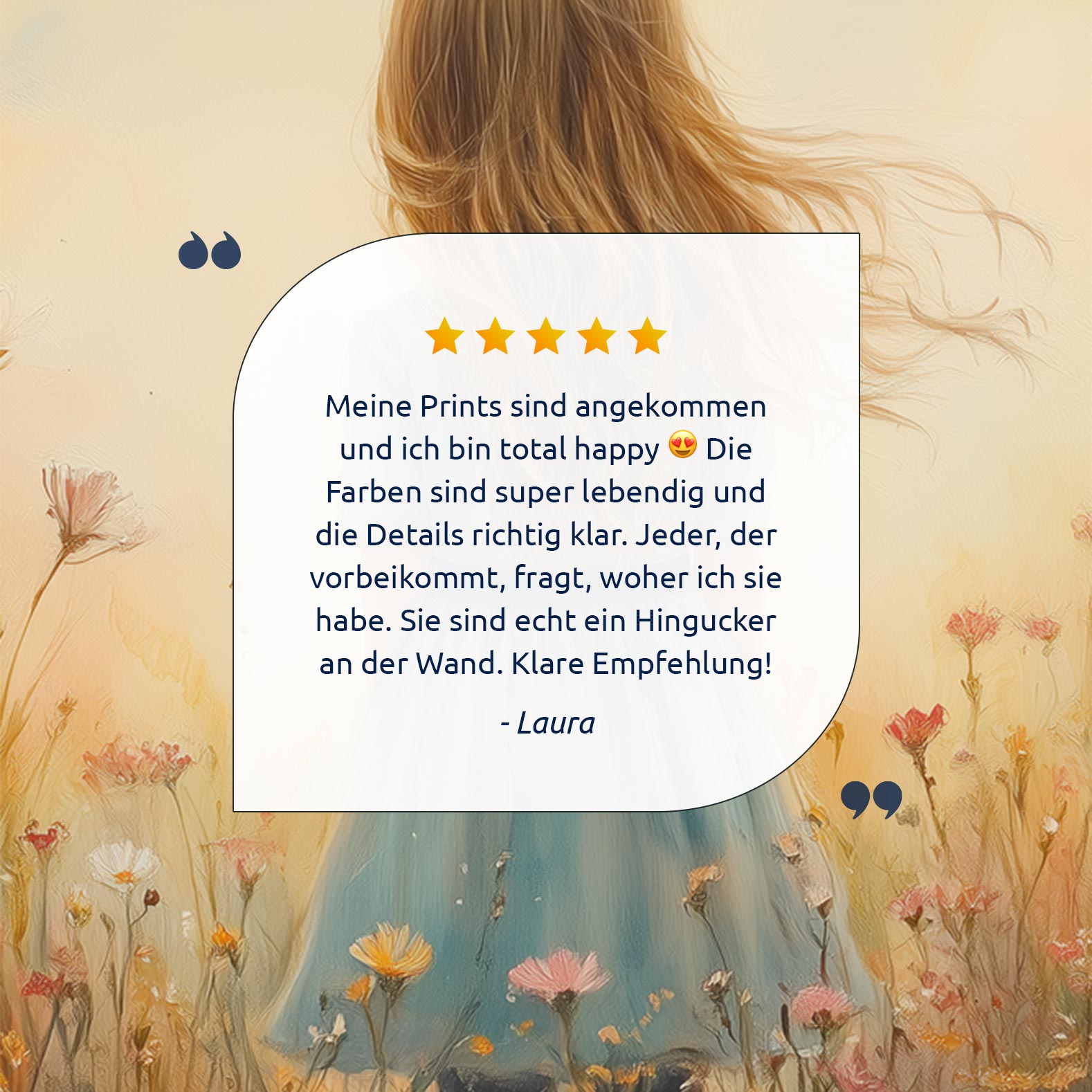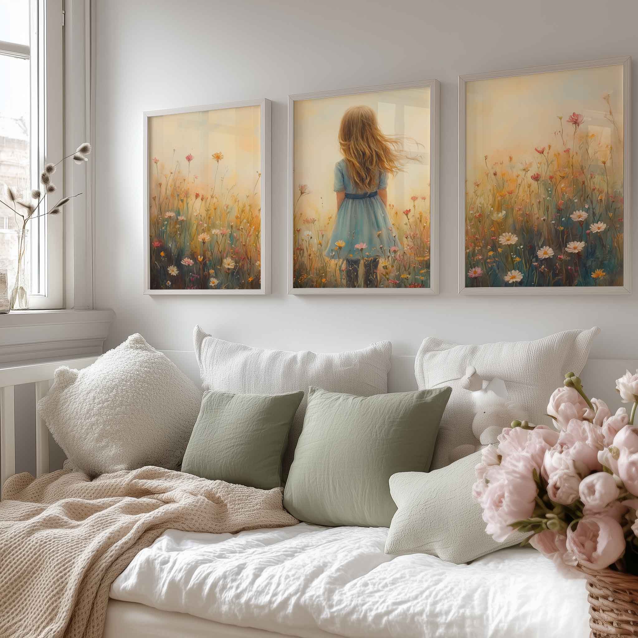 Terug naar collectie Posters Zachtblauwe droom in bloemenveld