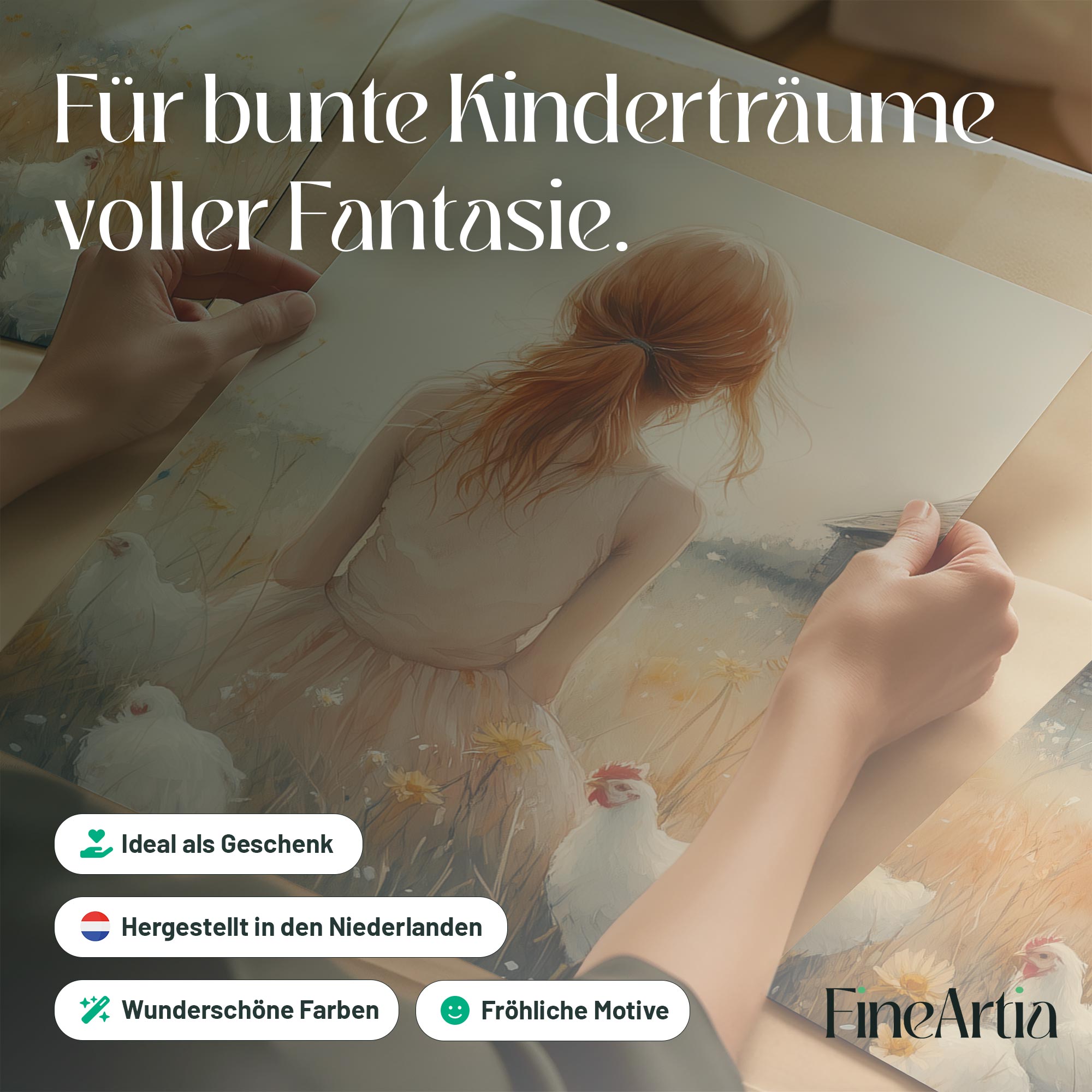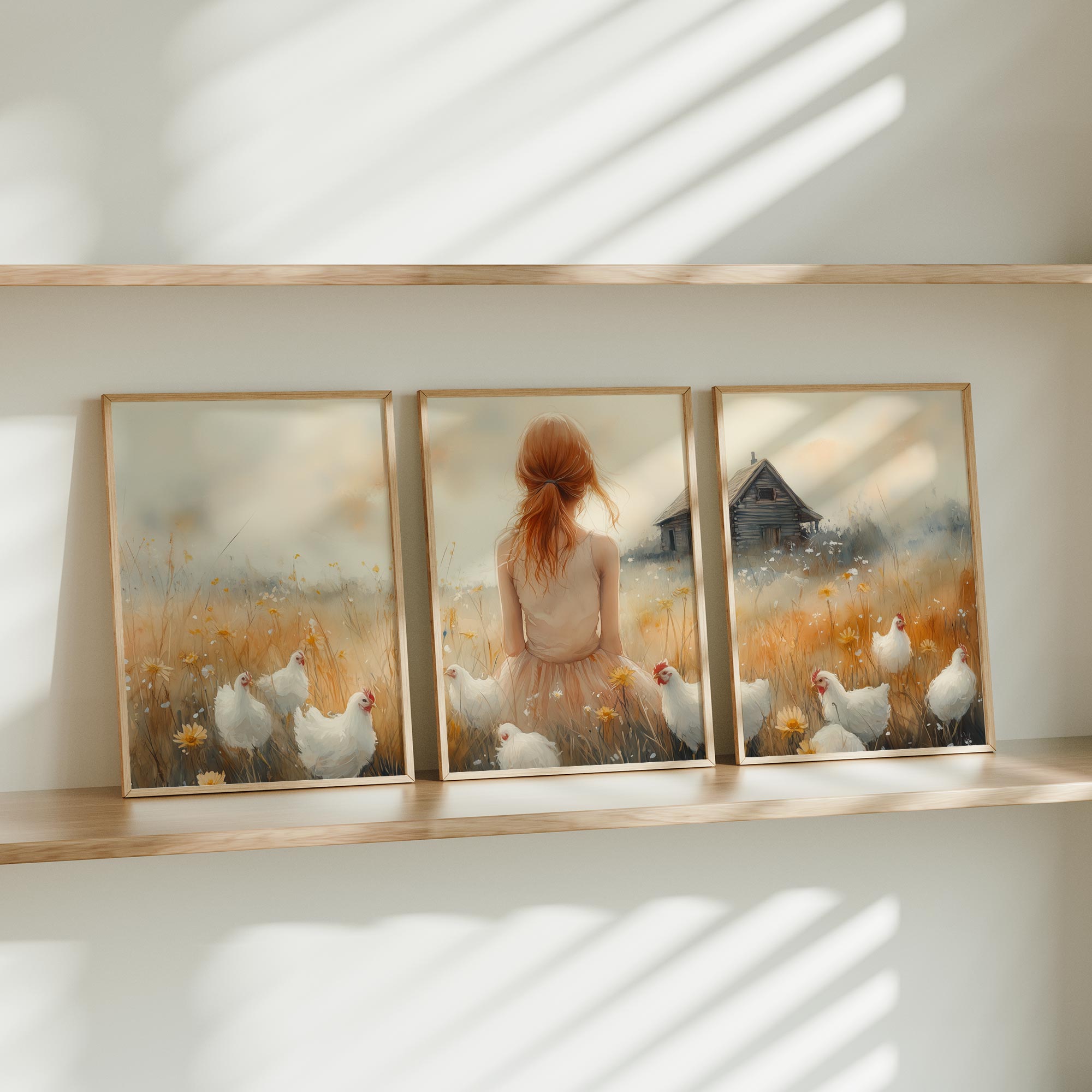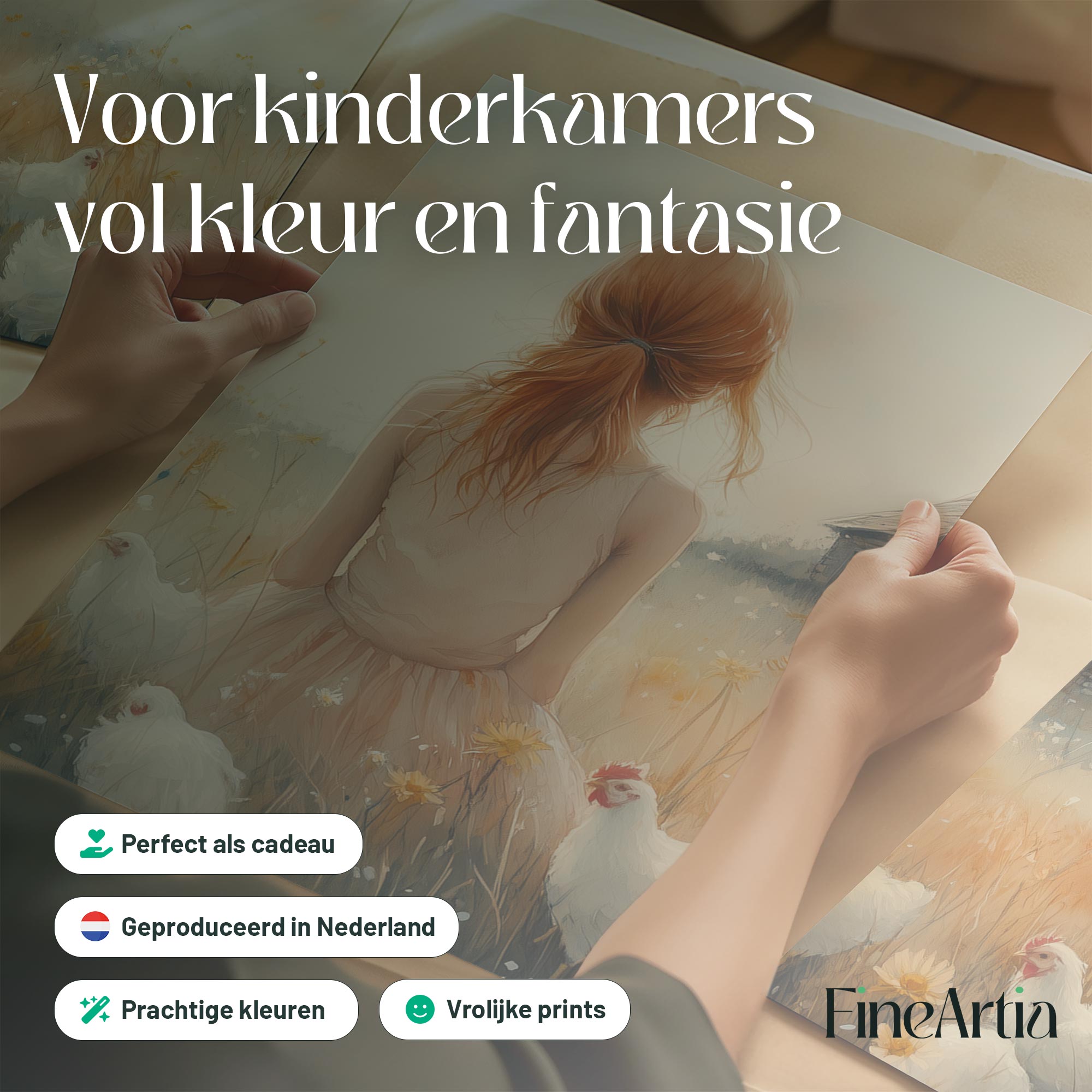 Zachte bloemenvelden met speelse kippen