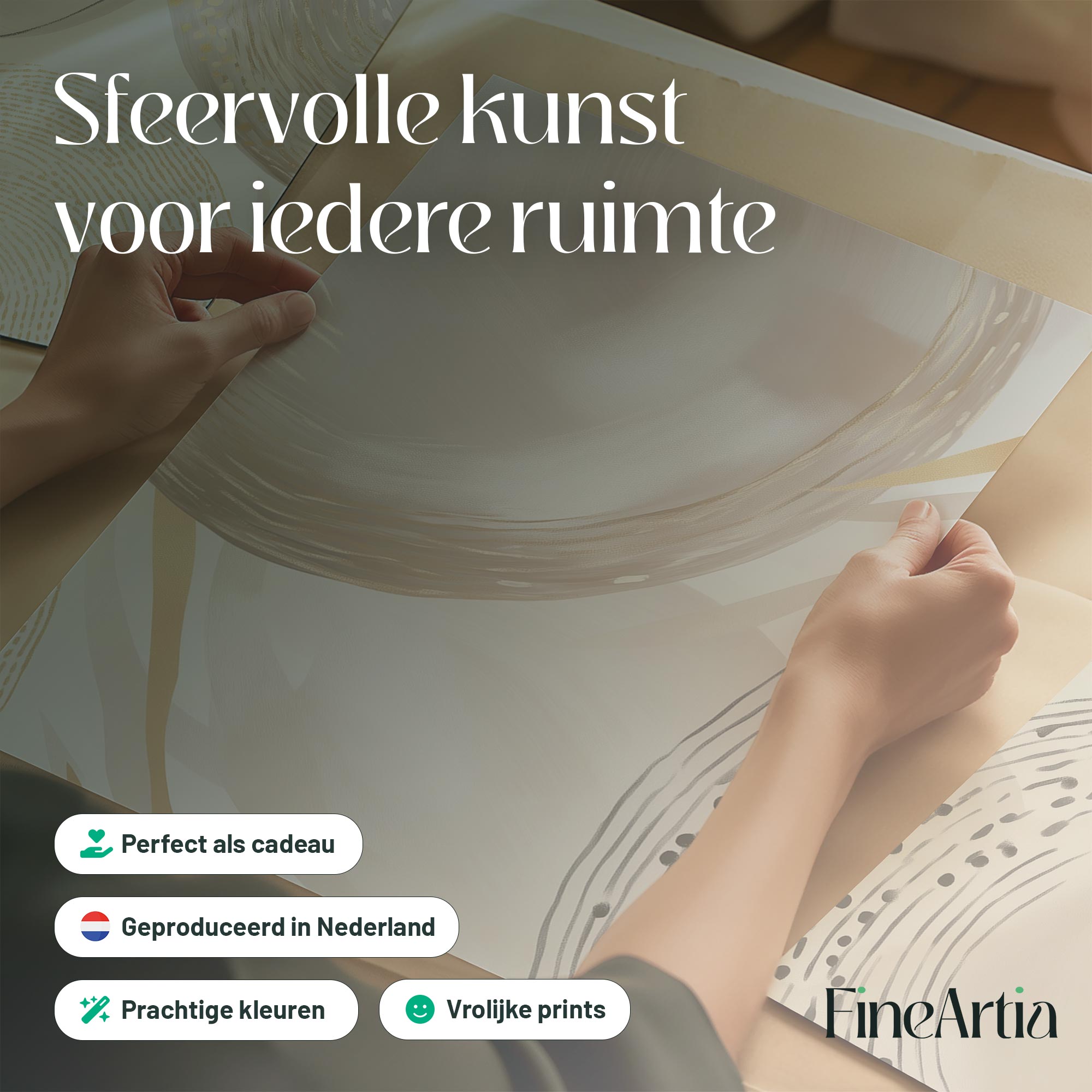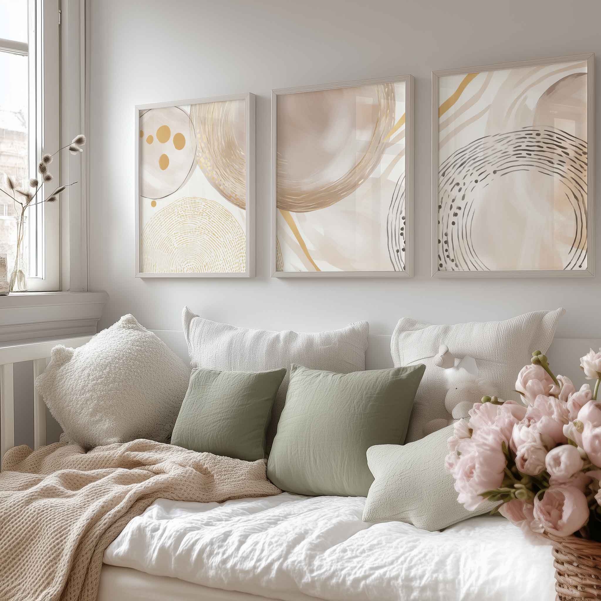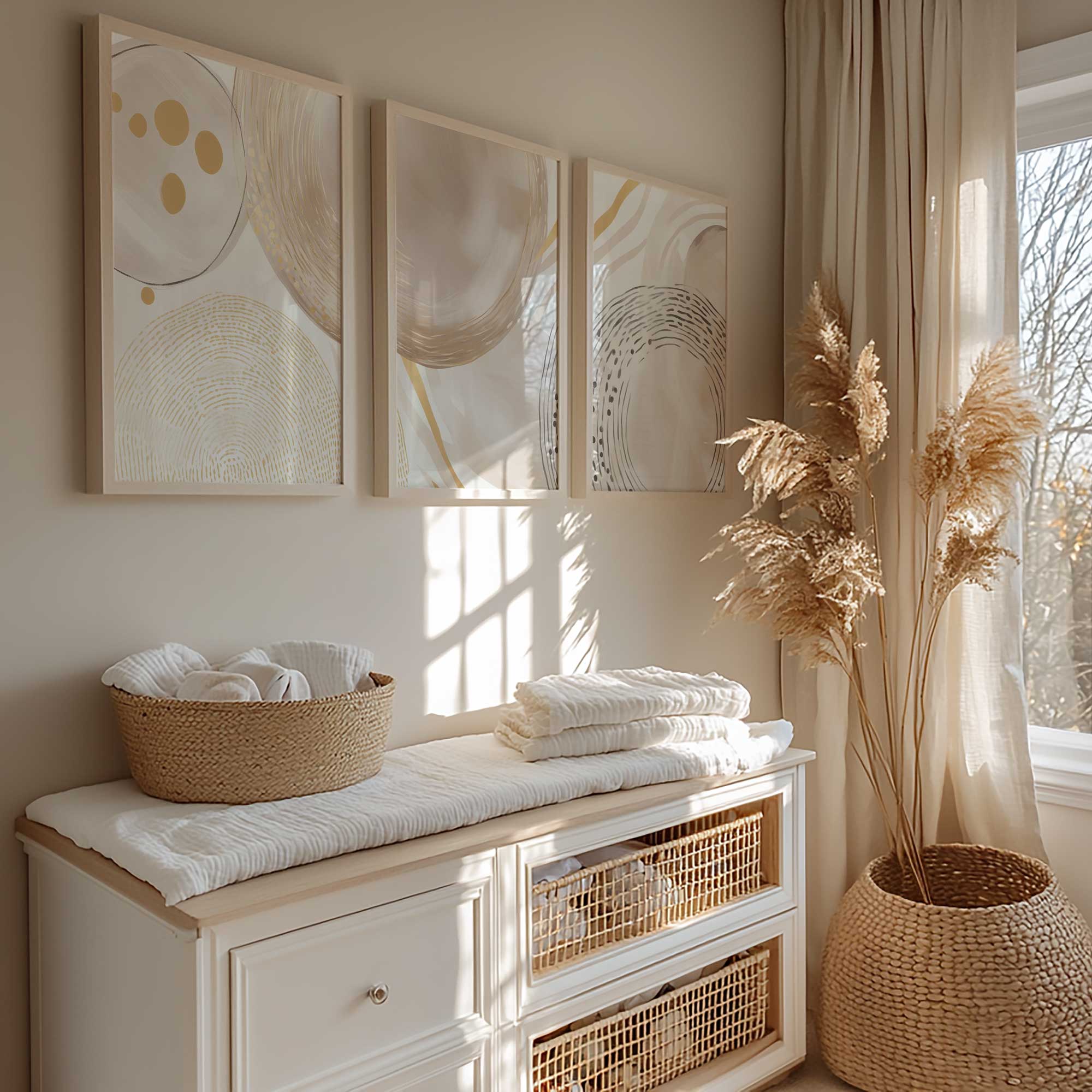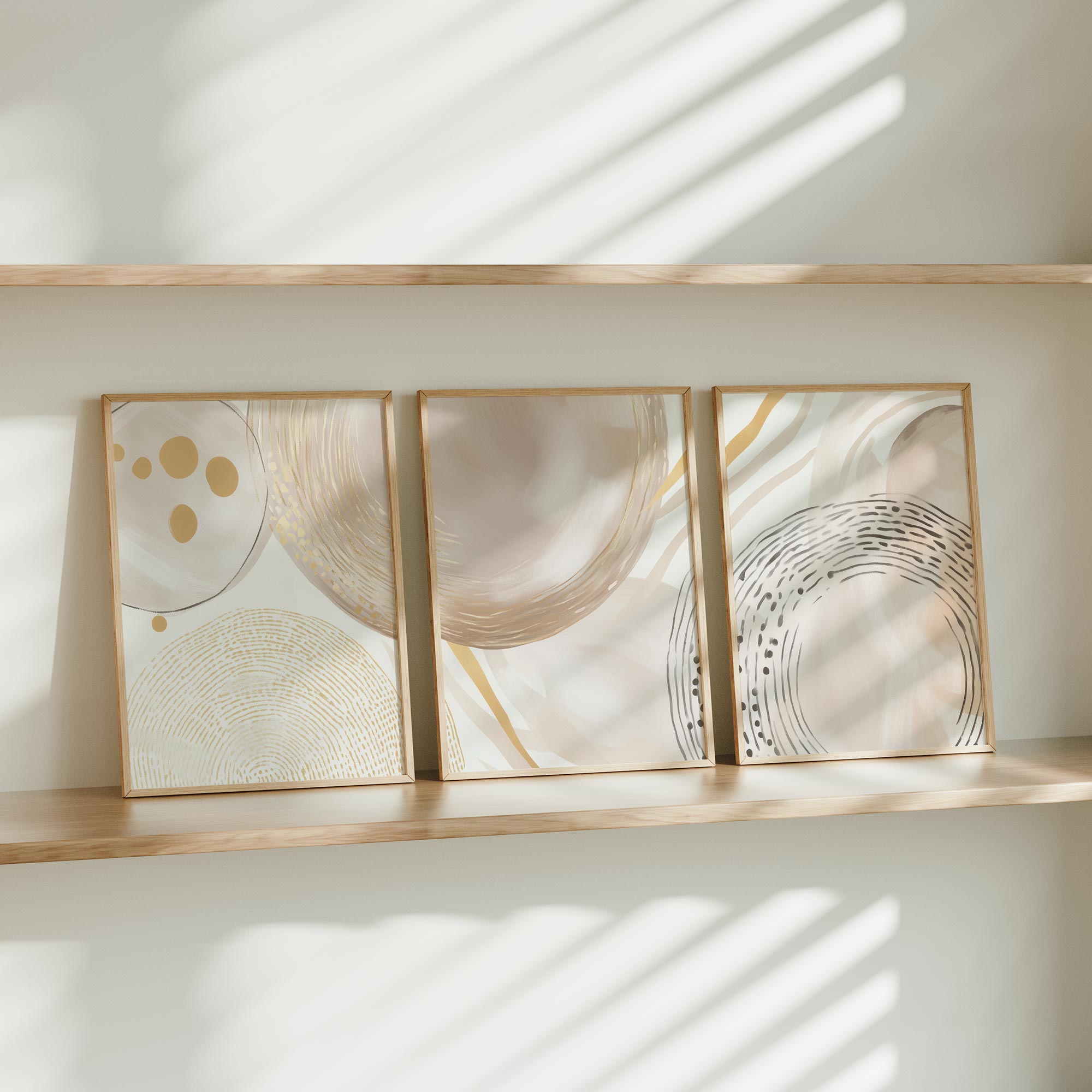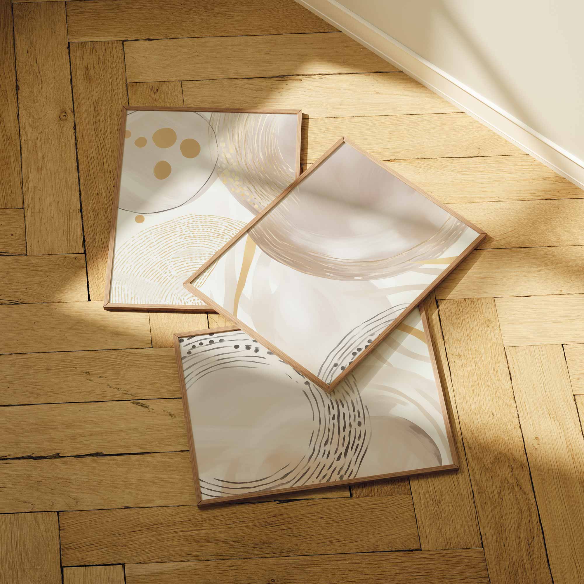 Zachte Cirkels en Lijnen – Warme Gouden Abstractie
