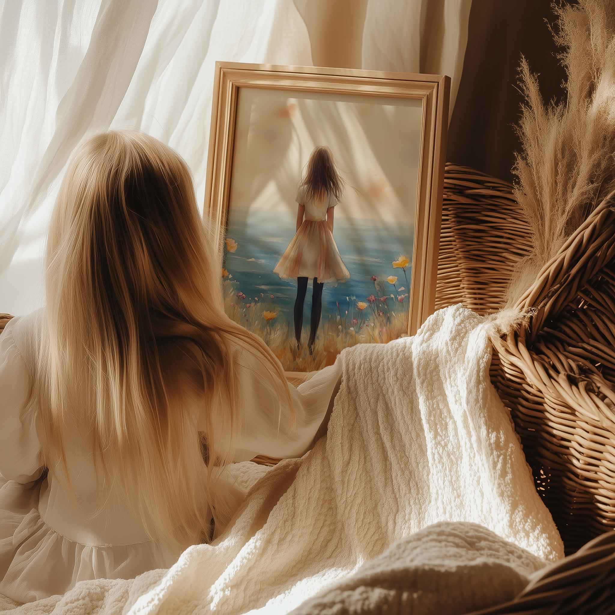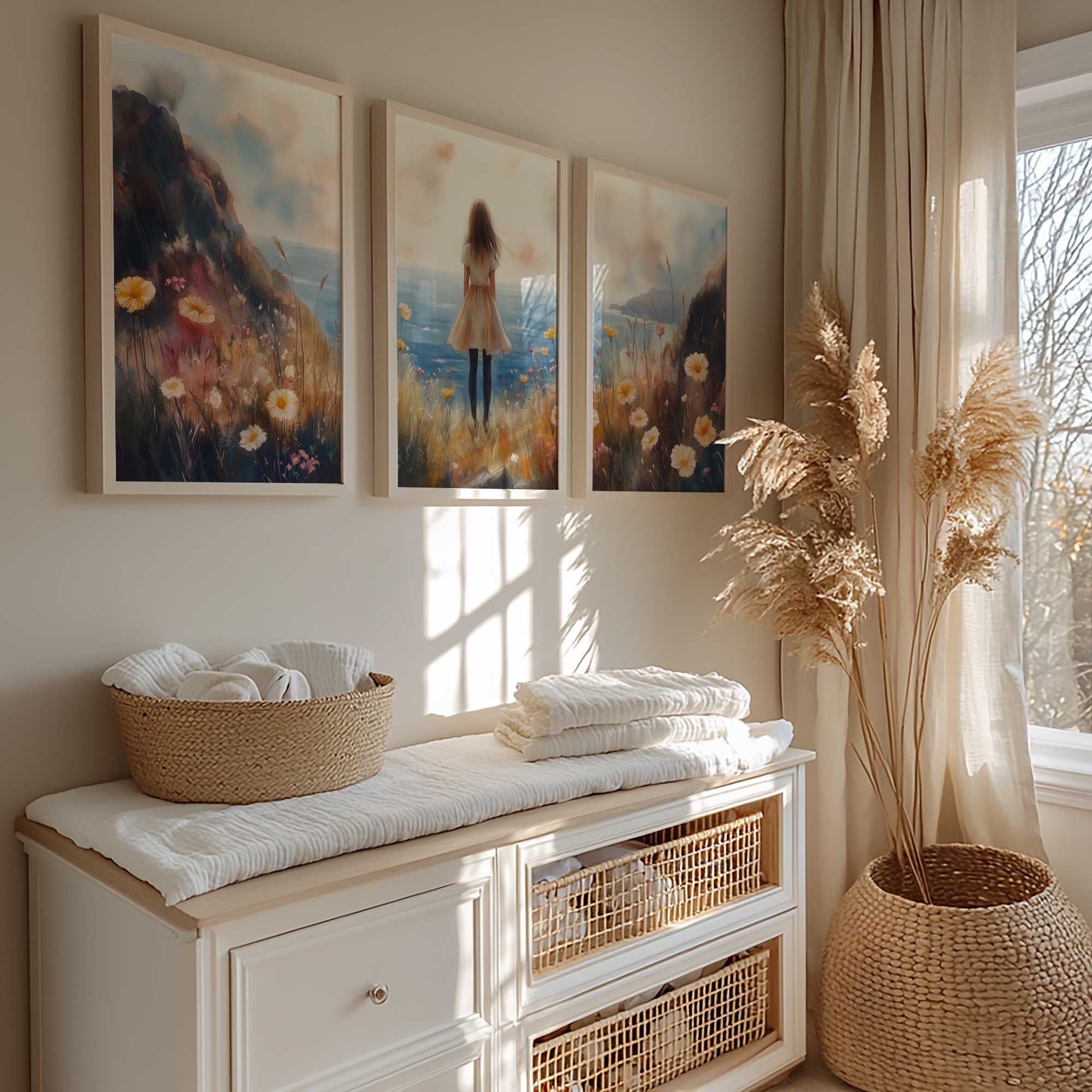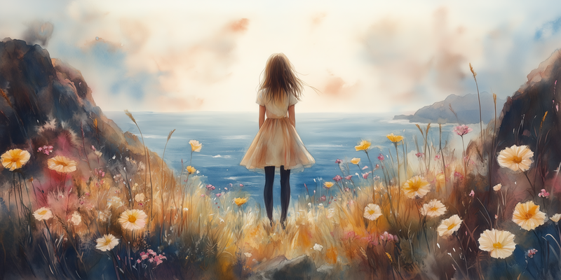 Terug naar collectie Posters Zachte dromen aan zee: bloemenveld en oceaan