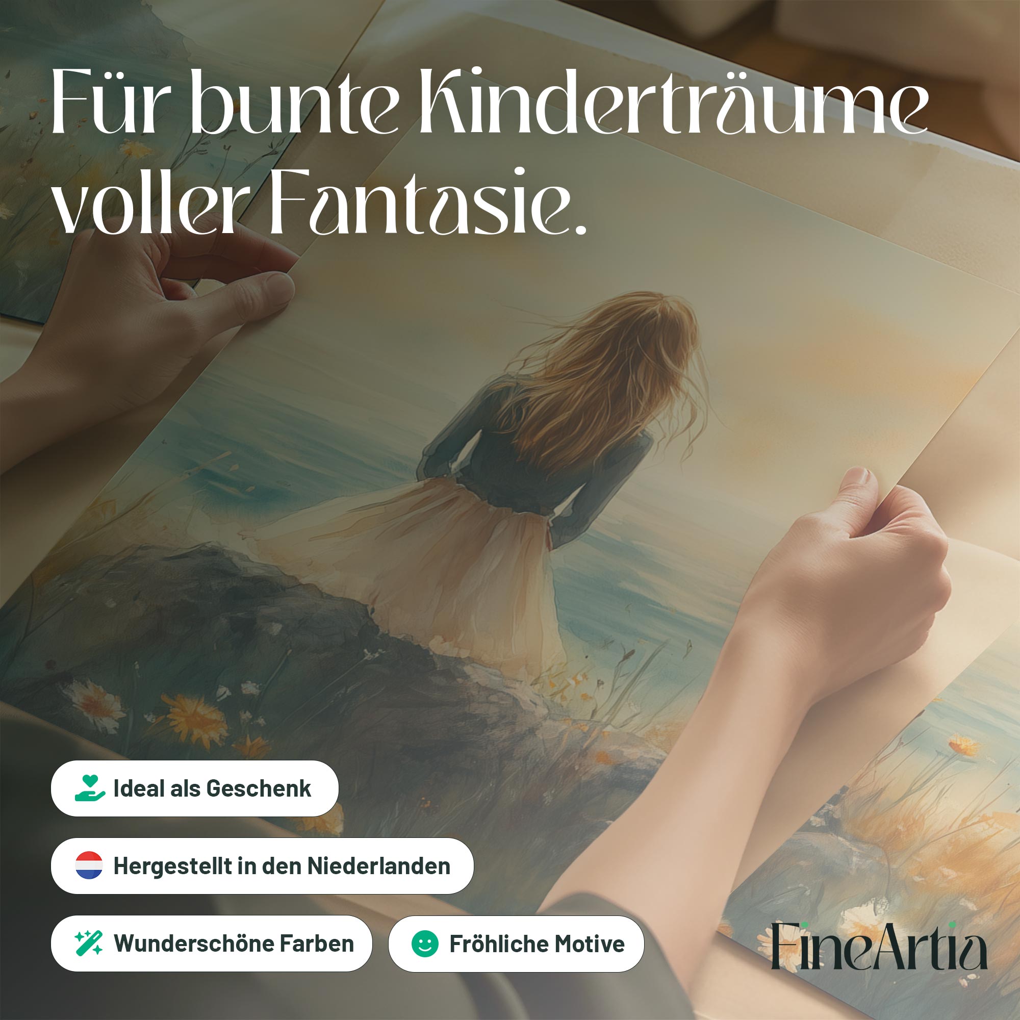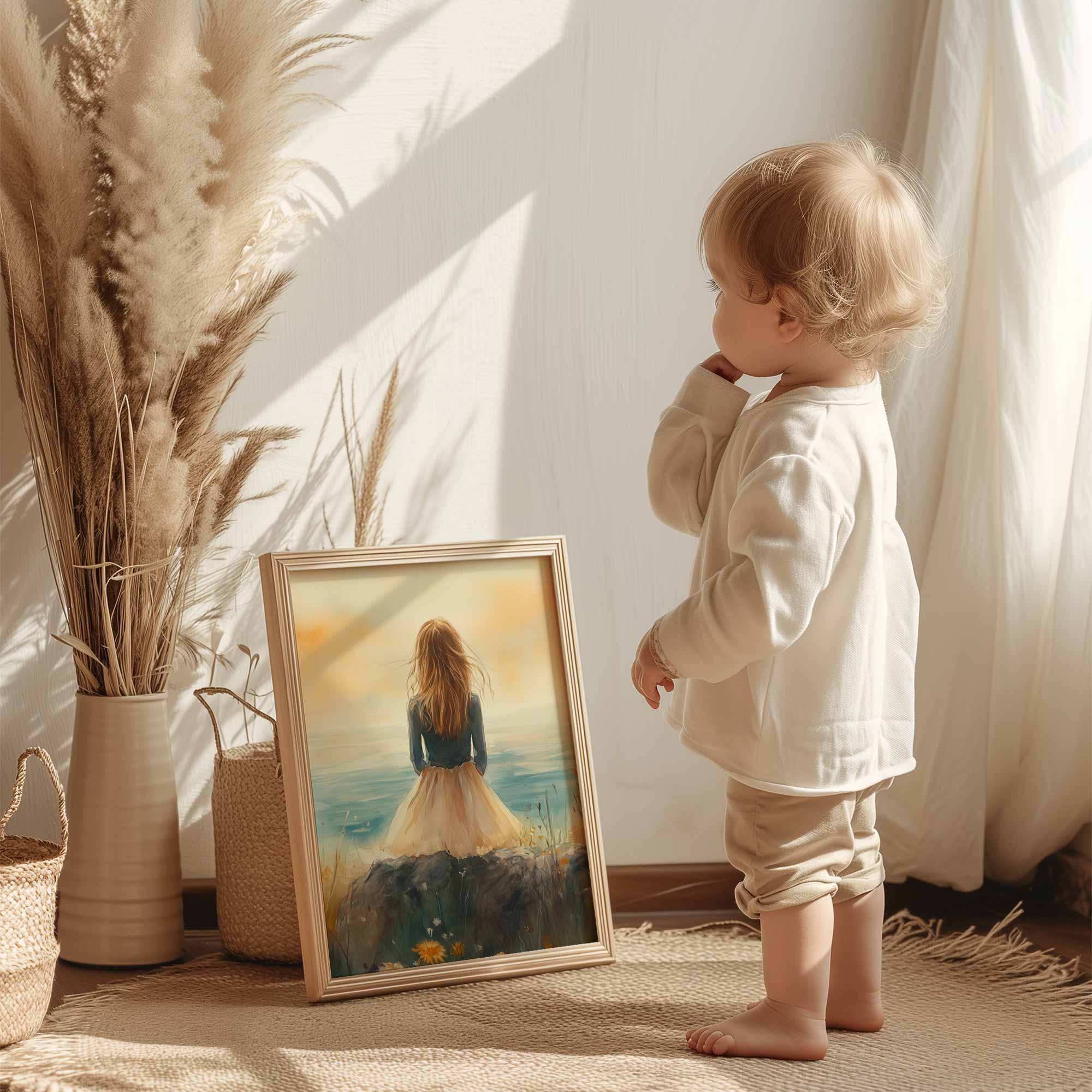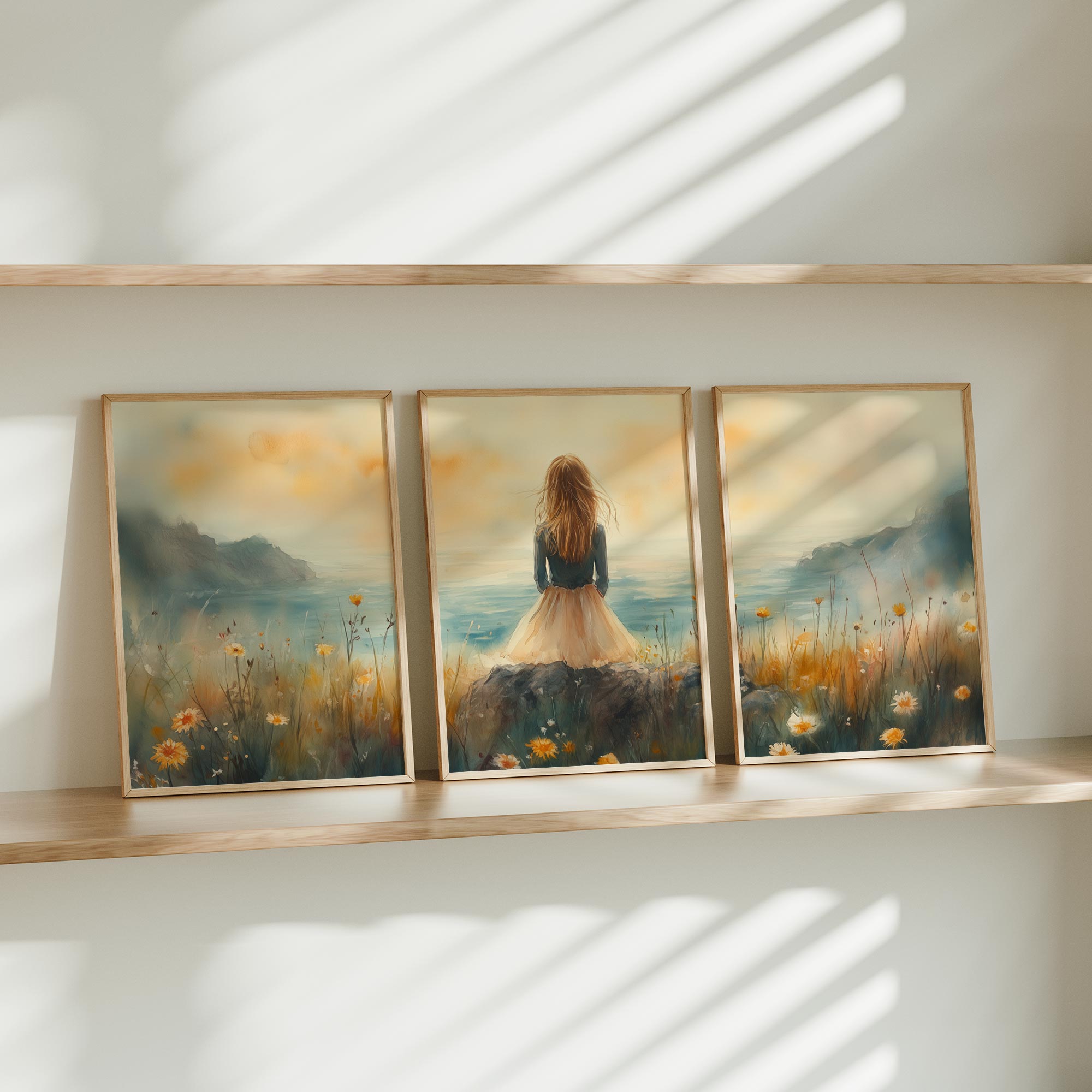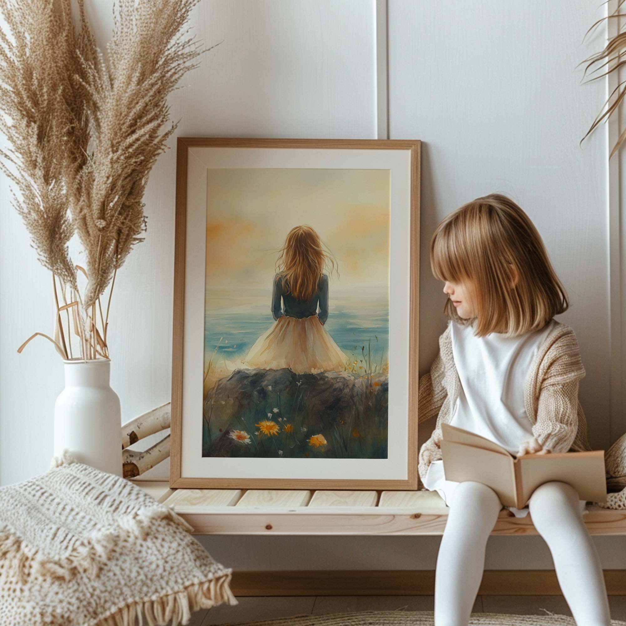 Zachte Dromen aan Zee: Vrouw tussen Bloemen en Golven