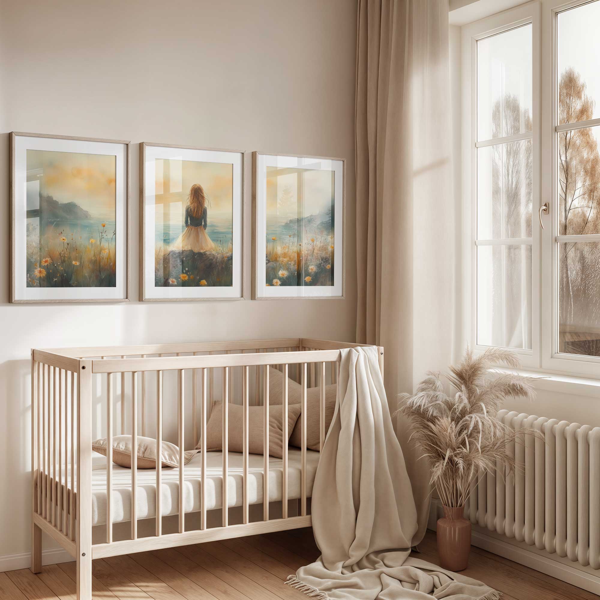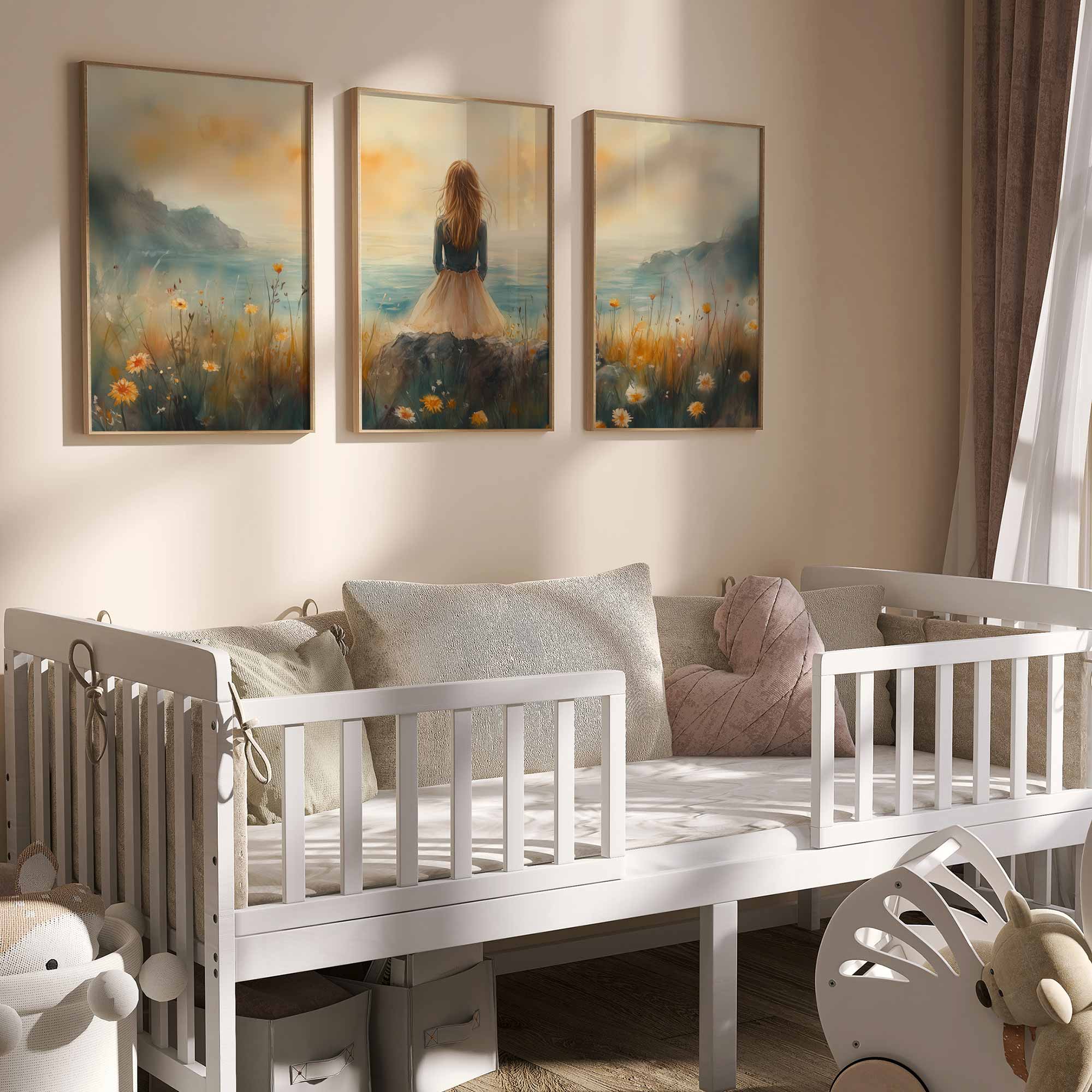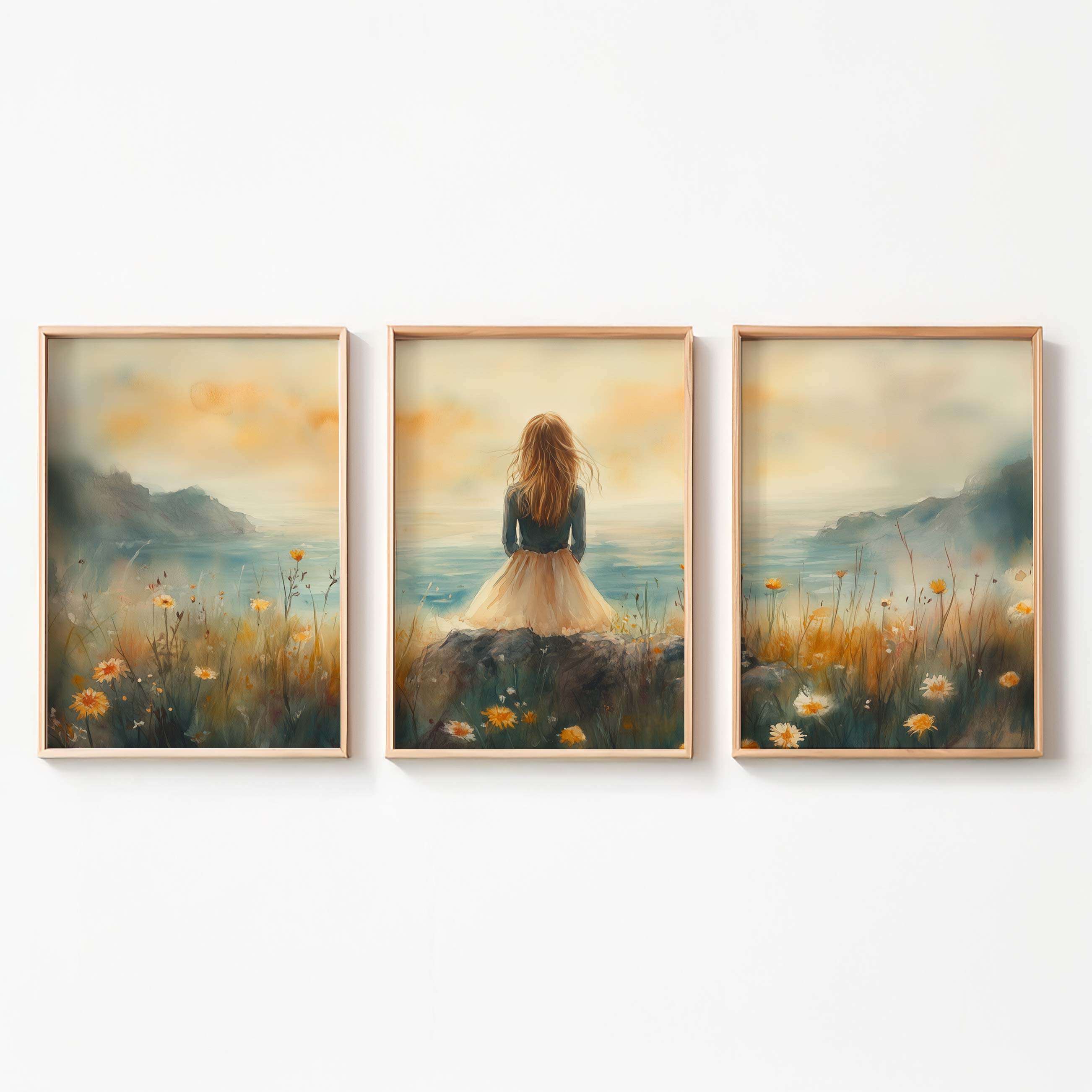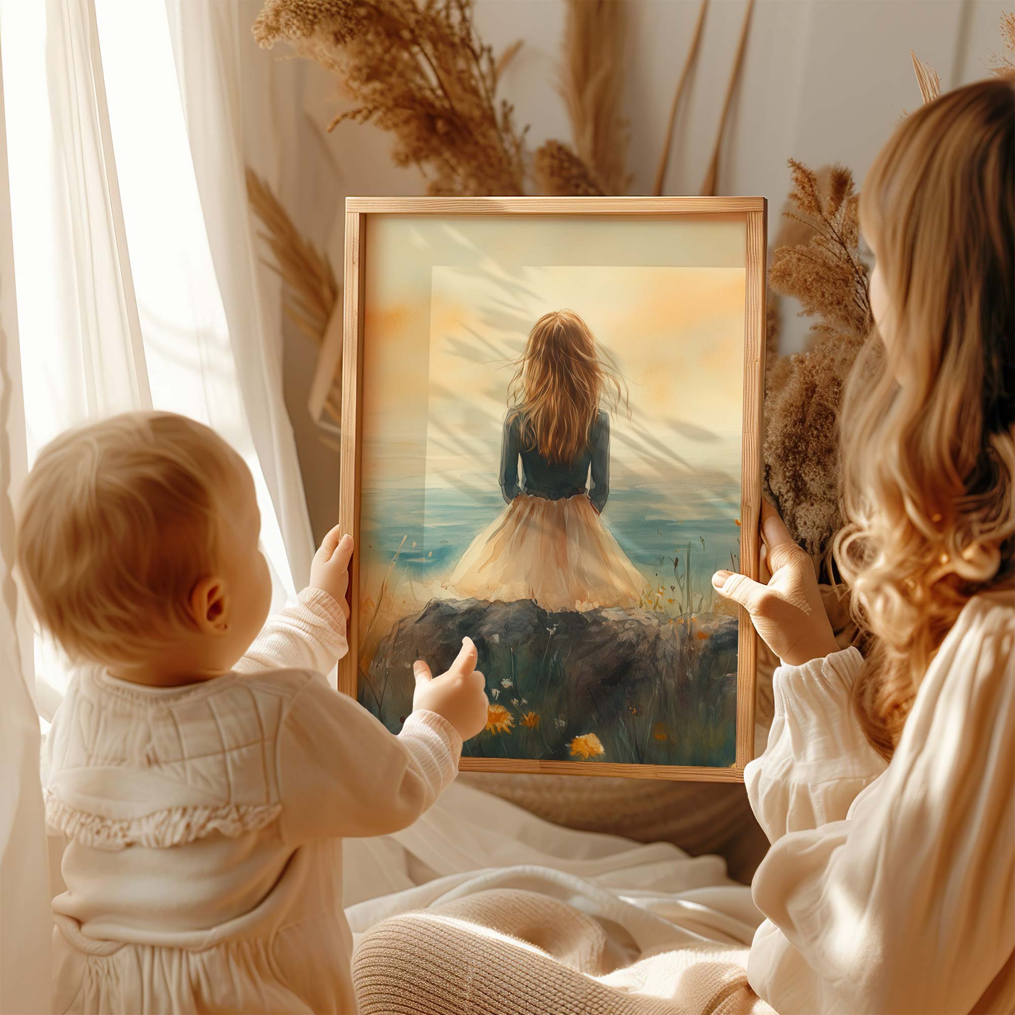 Zachte Dromen aan Zee: Vrouw tussen Bloemen en Golven