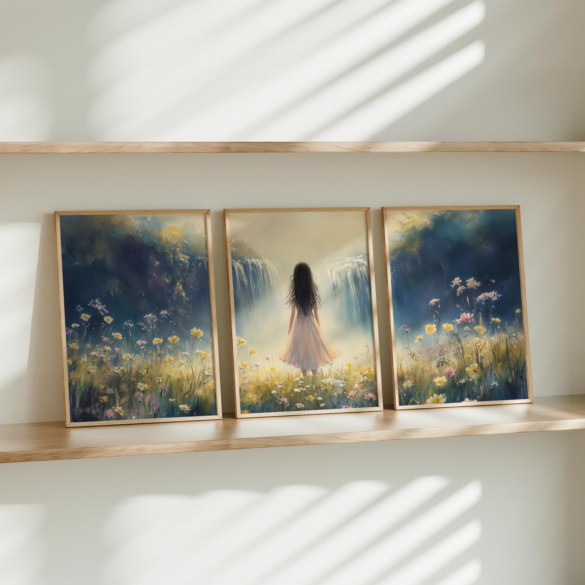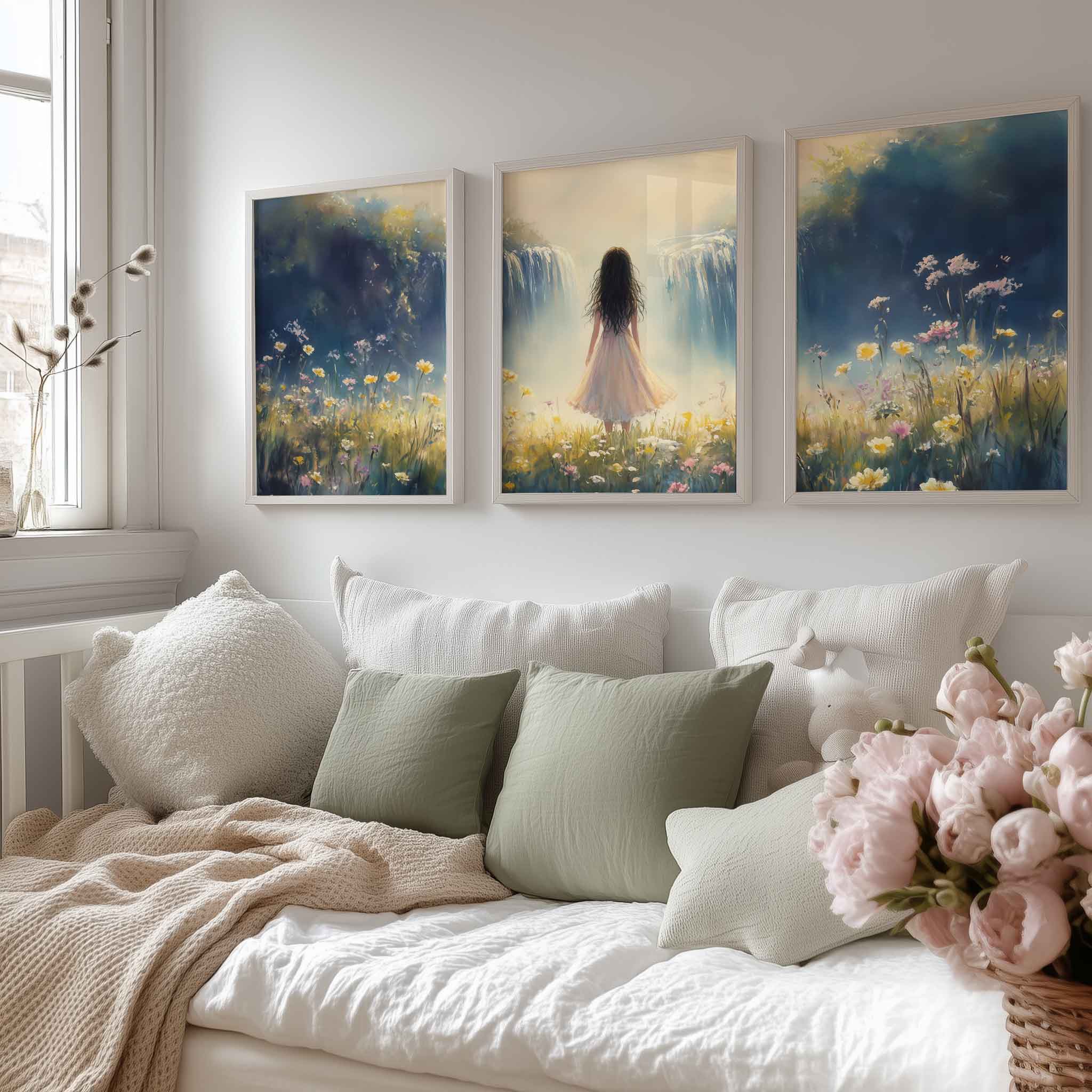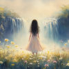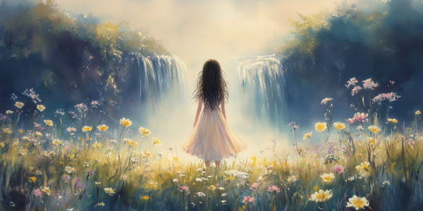 Zachte Dromen in Bloemenveld met Waterval