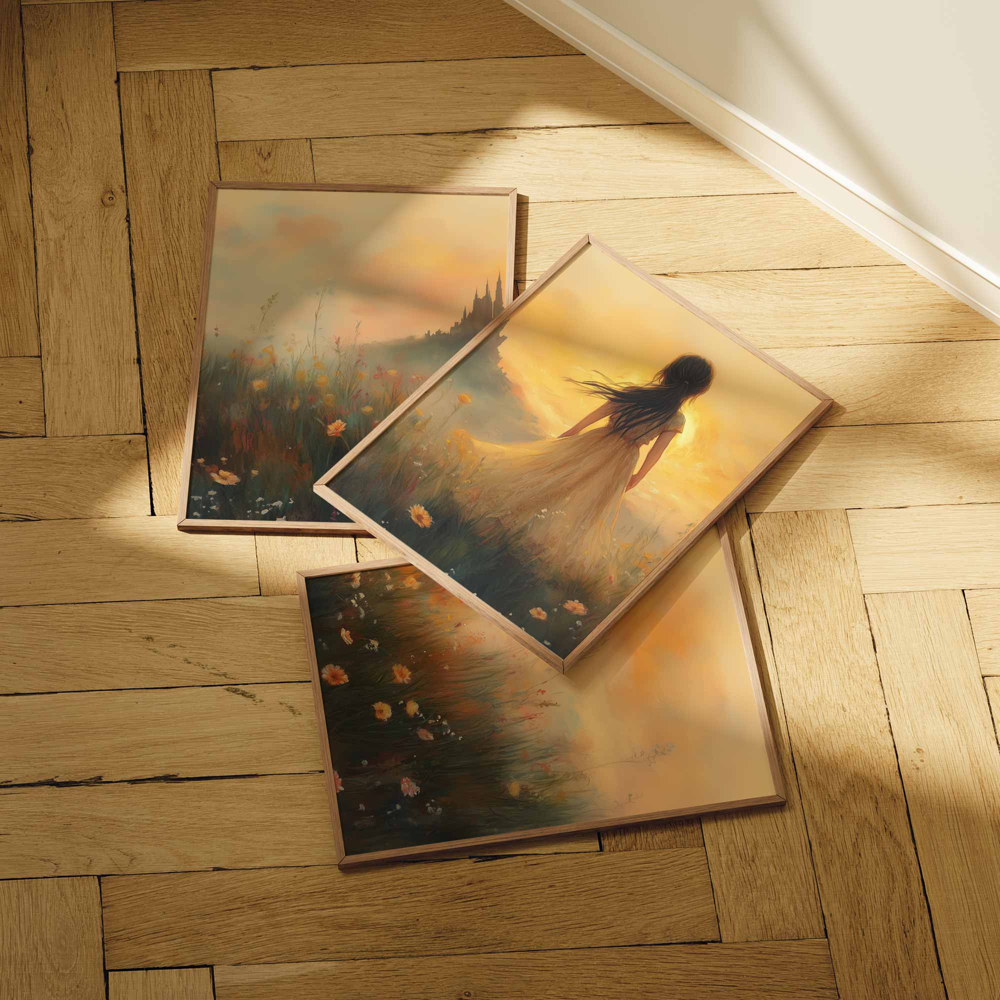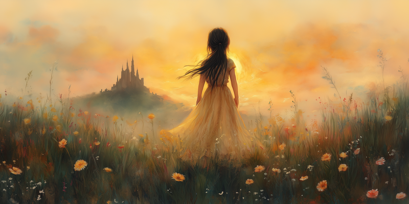 Zachte Dromen in een Bloemenveld met Kasteel