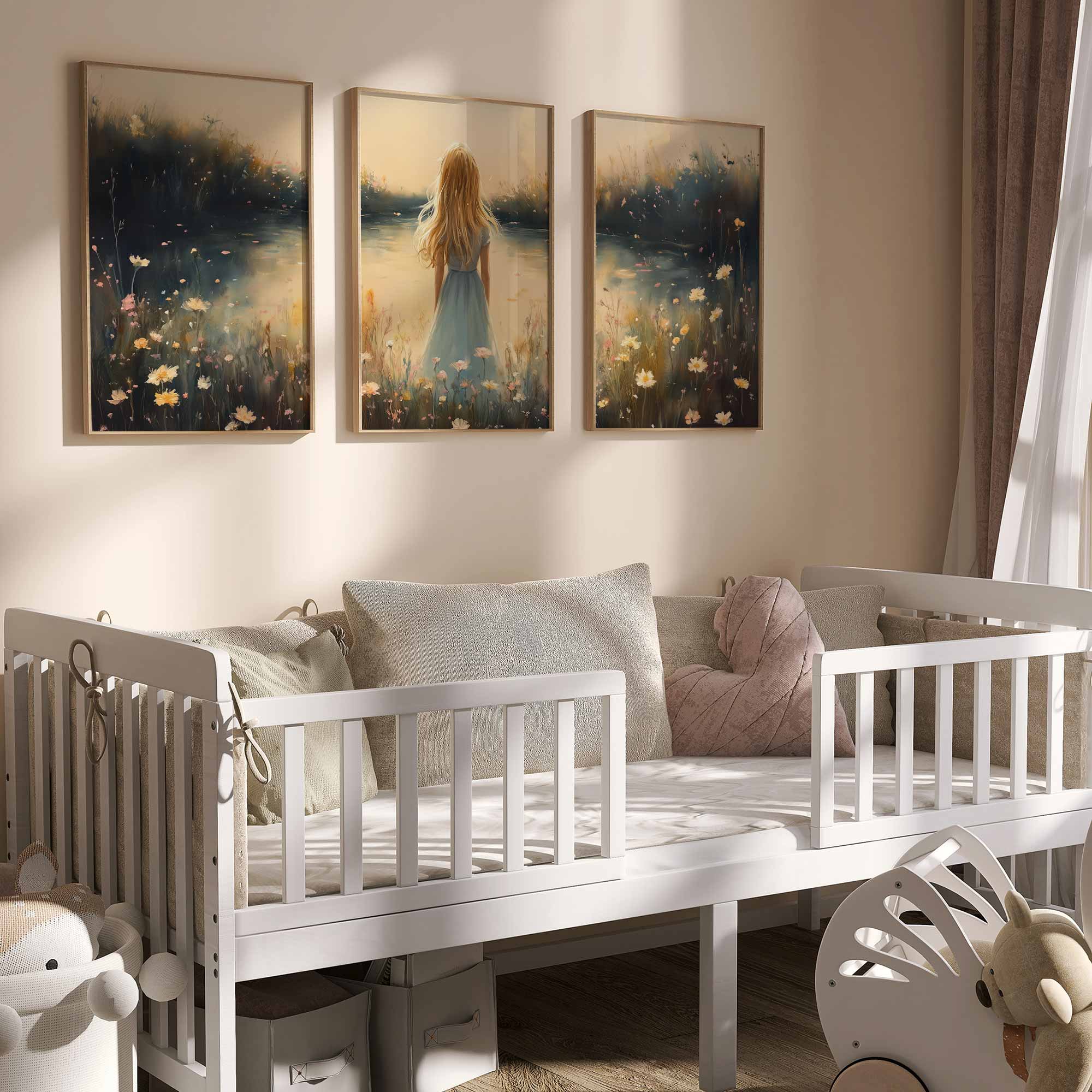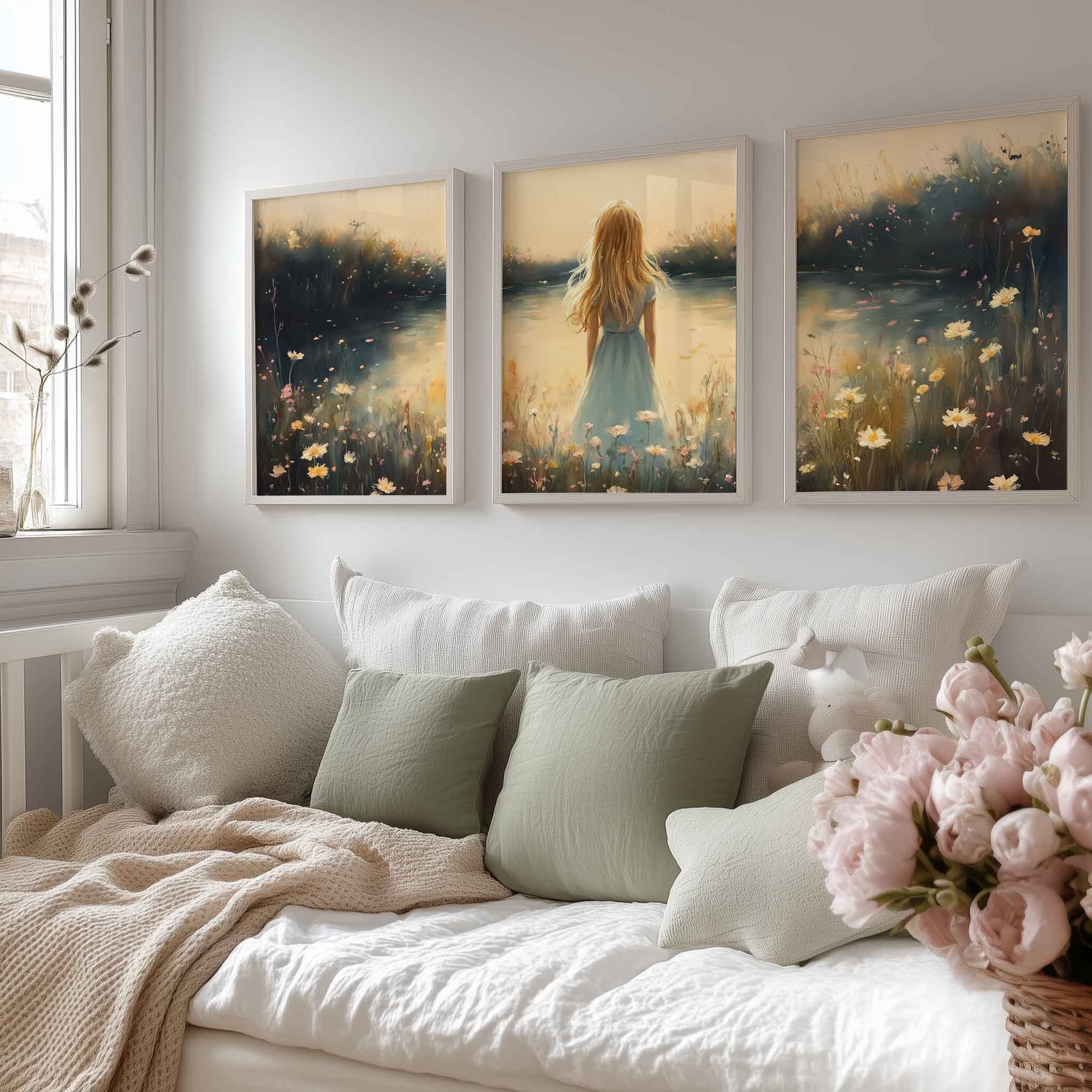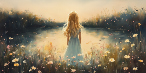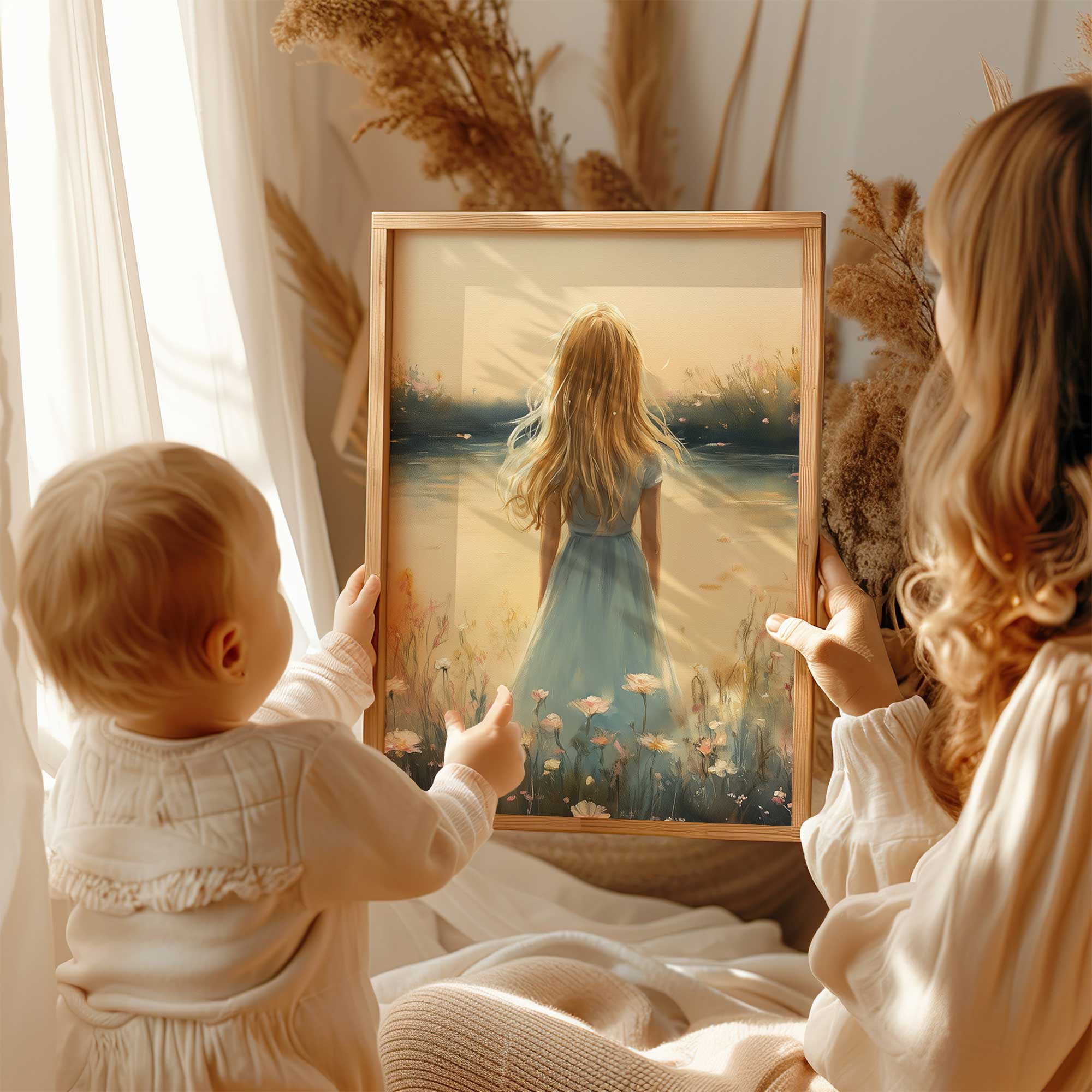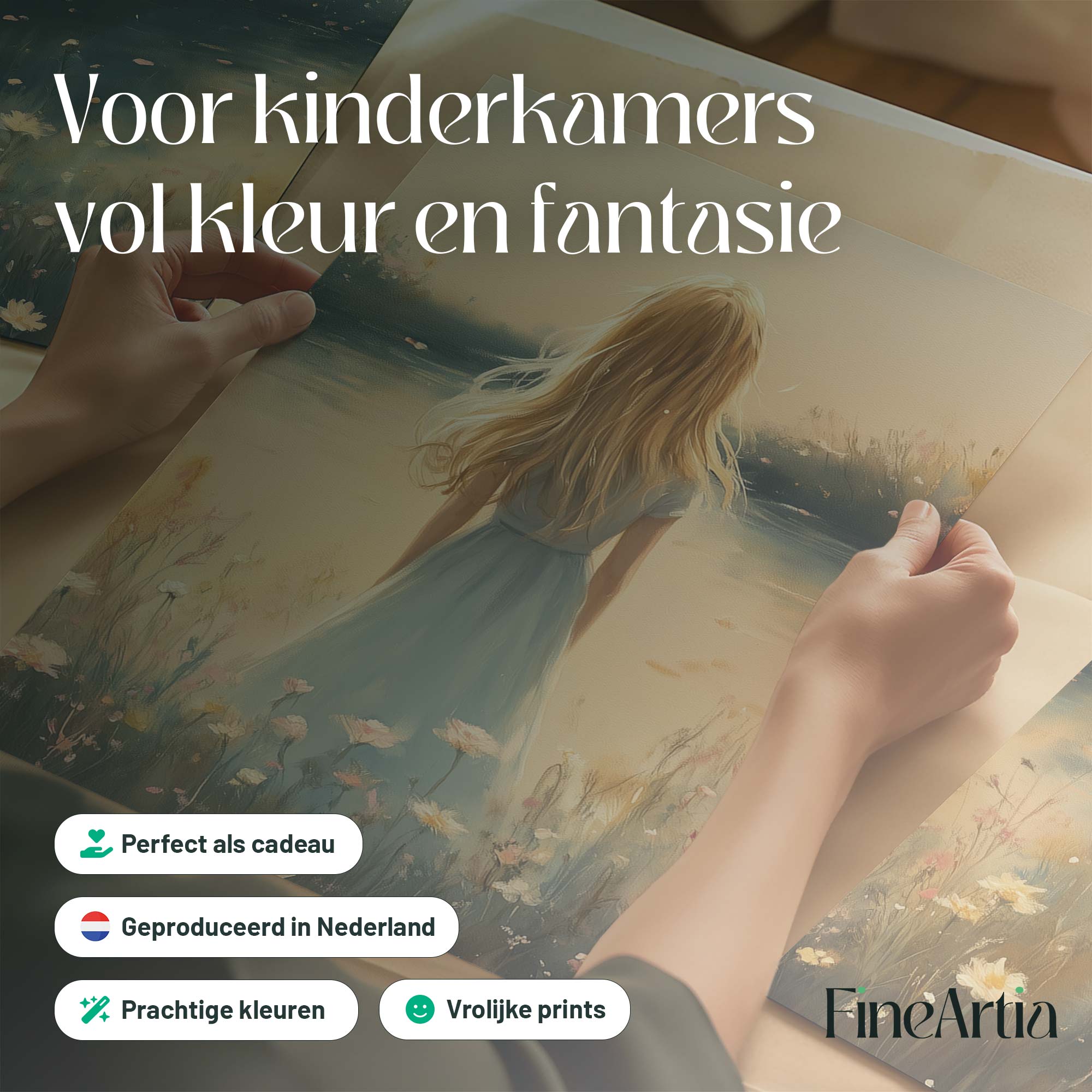 Terug naar collectie Posters Zachte Dromen in Pastel: Meisje bij Bloemen en Water