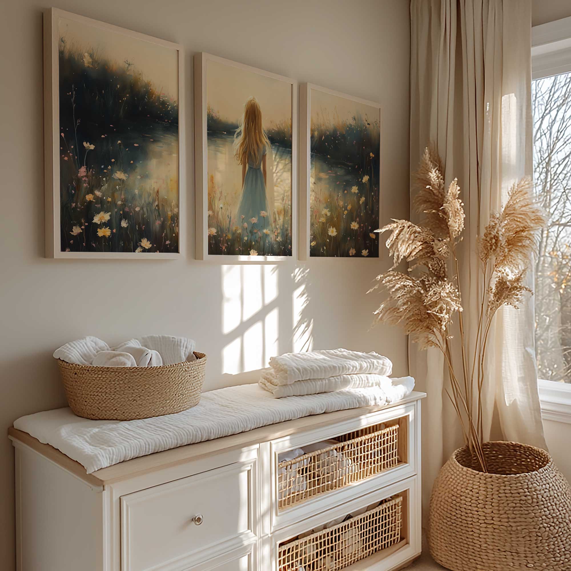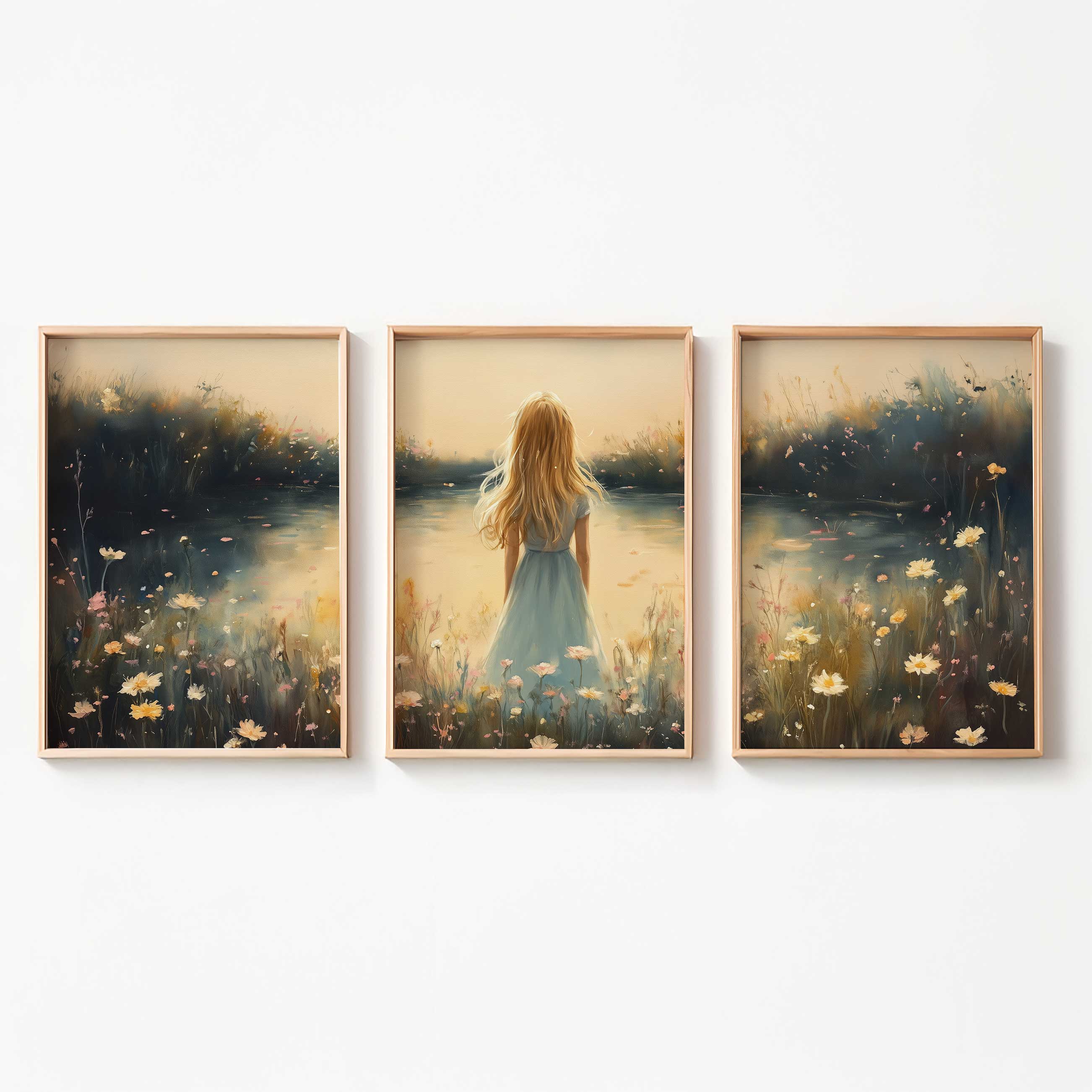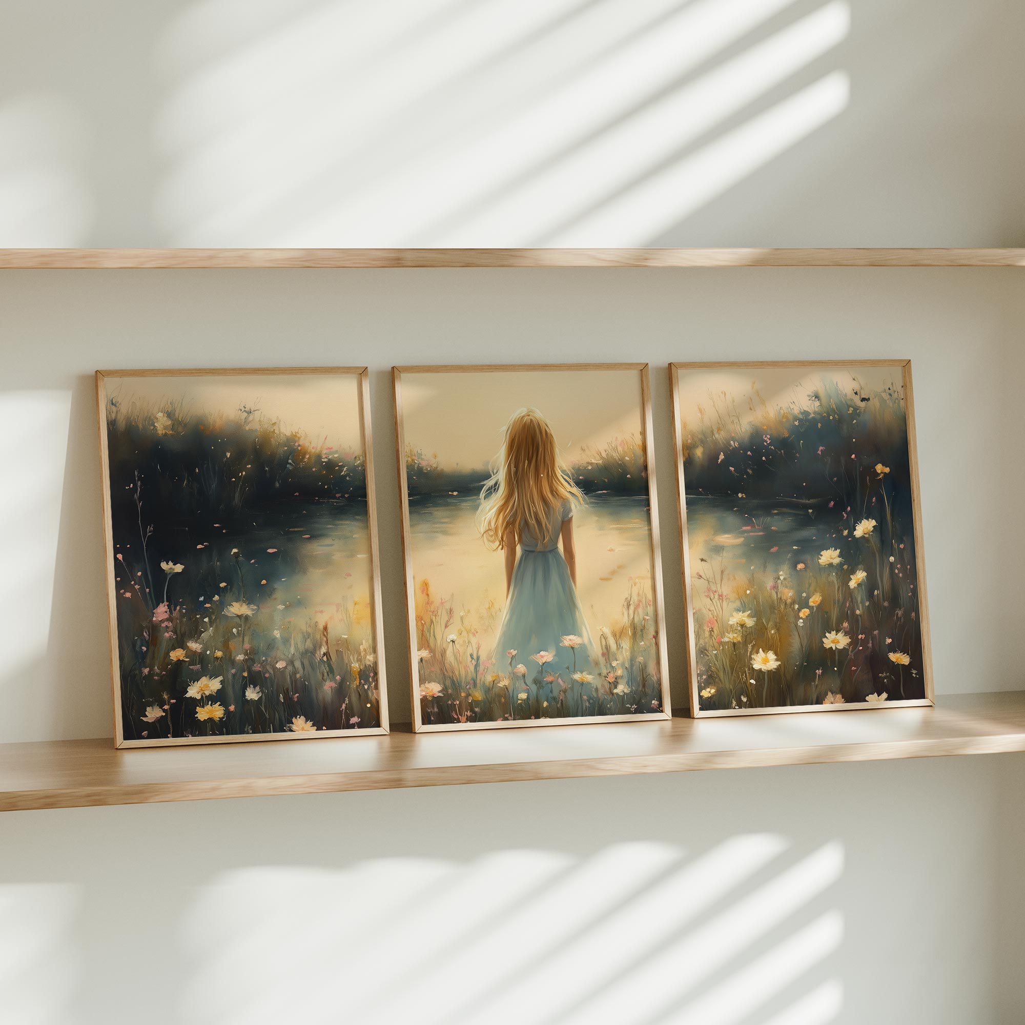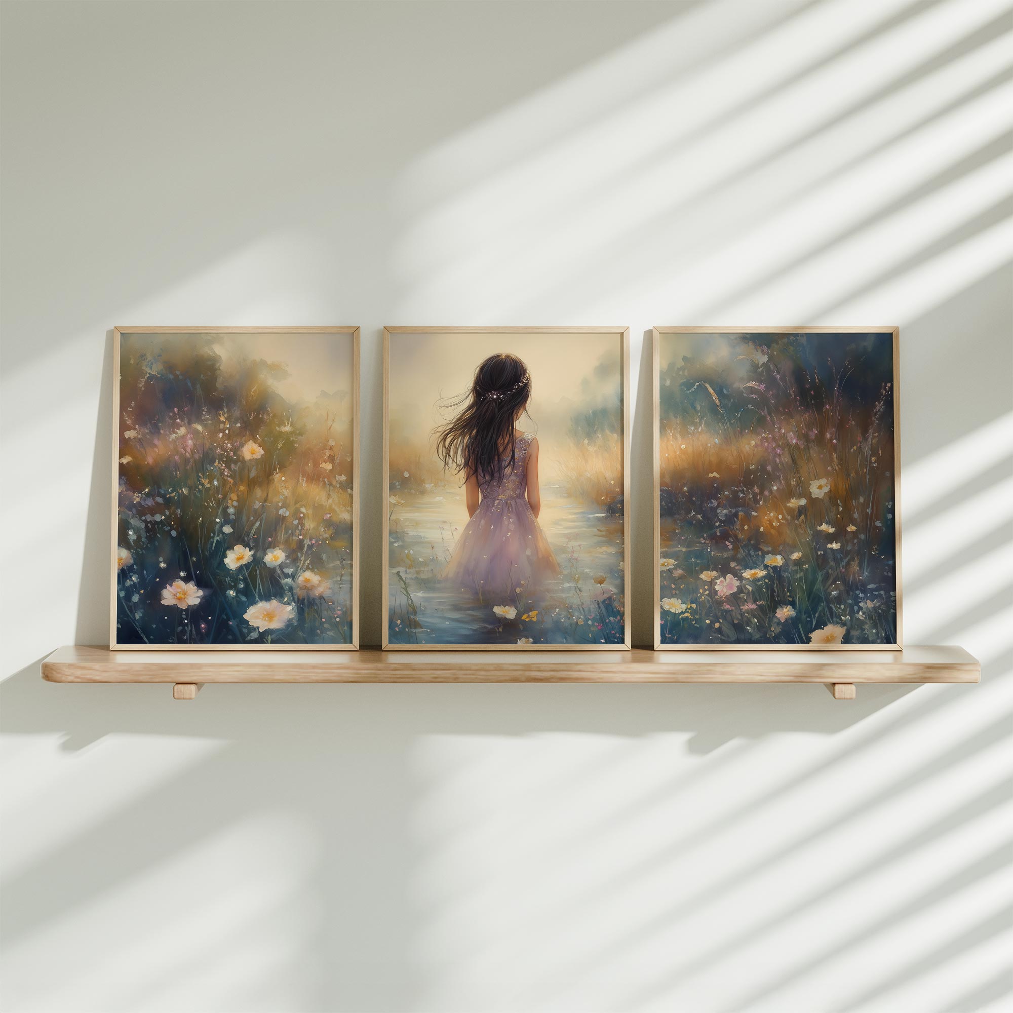 Terug naar collectie Posters Zachte Dromen in Pastel: Meisje bij Bloemen en Water