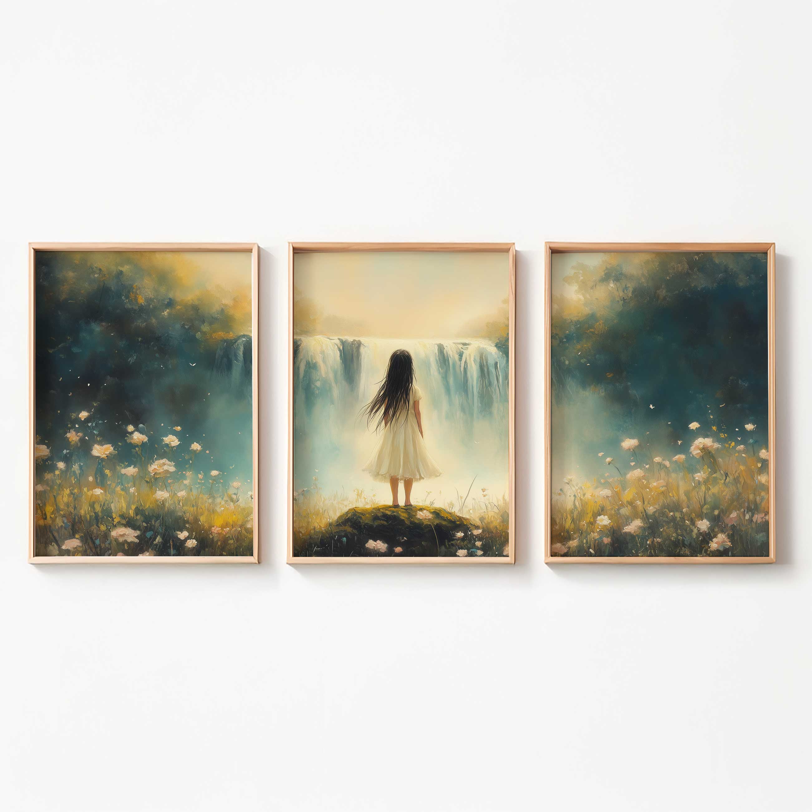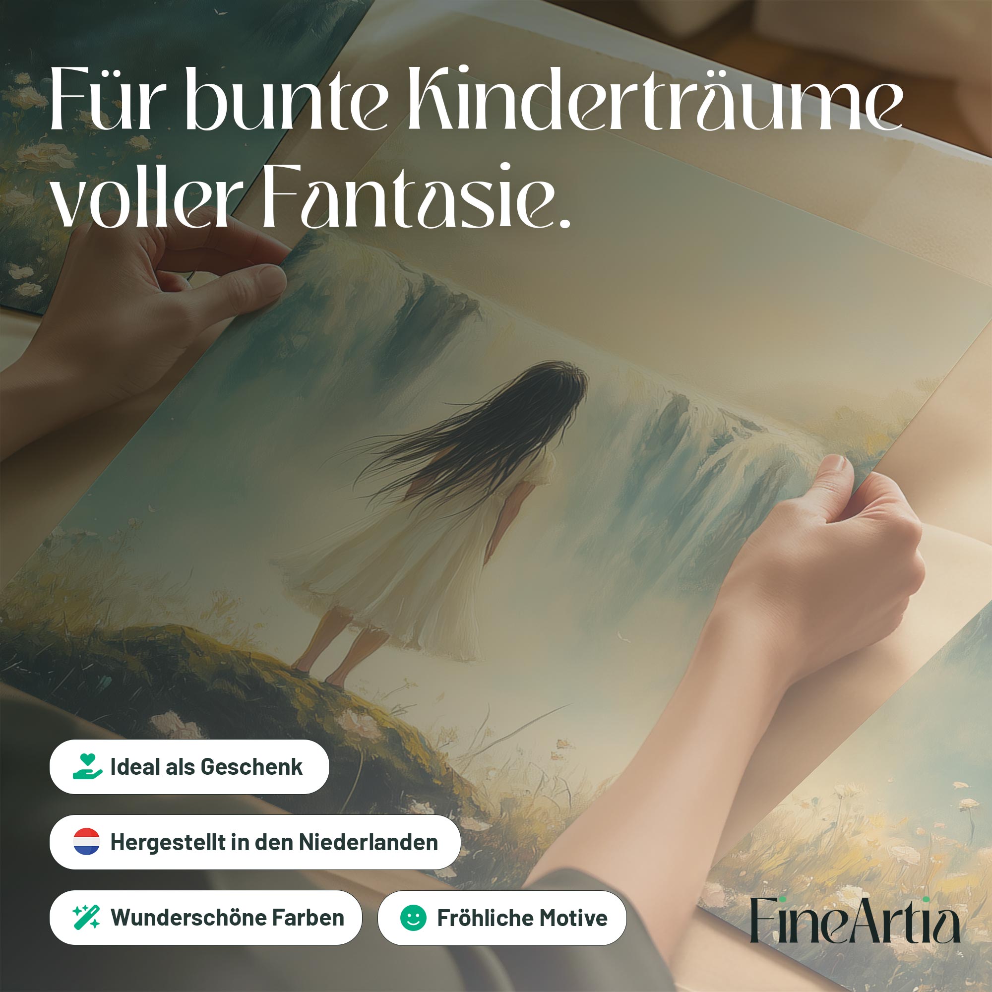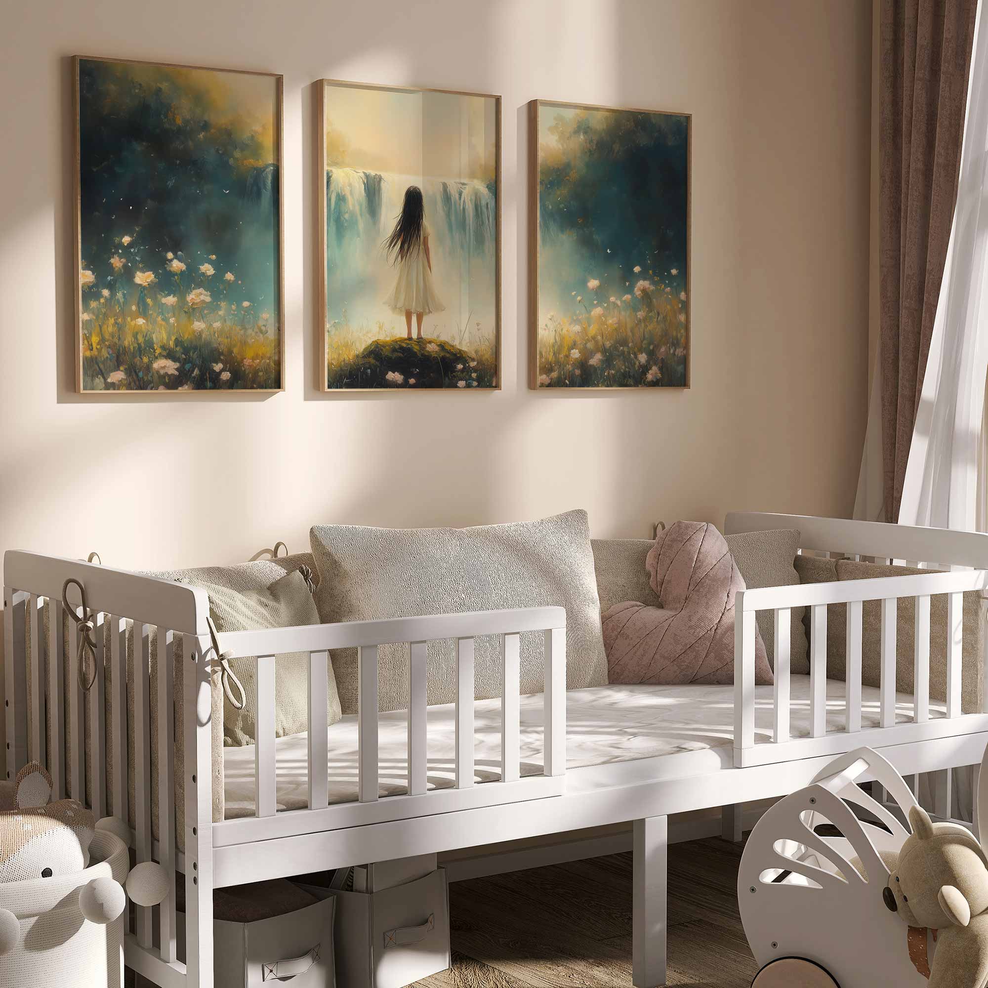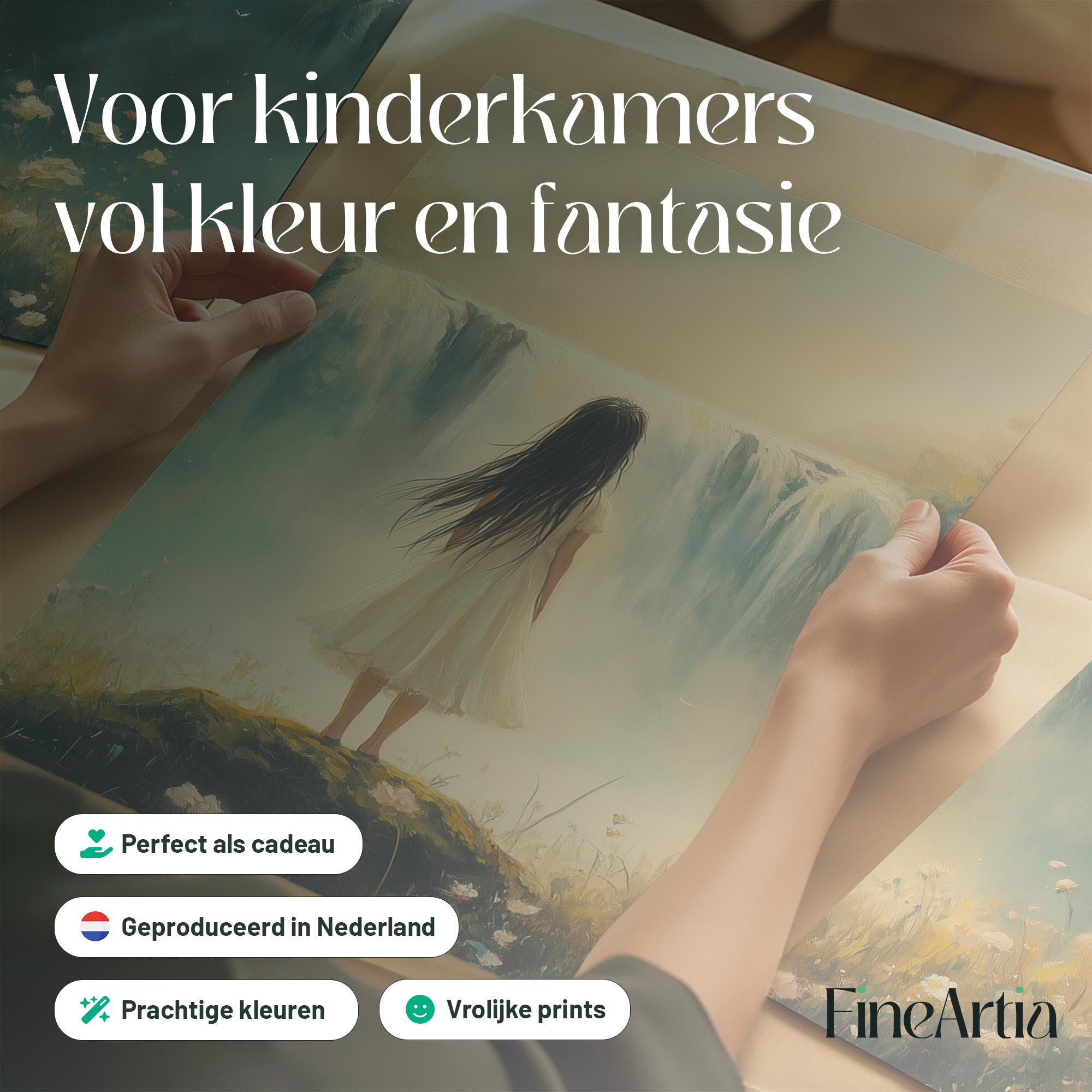 Zachte Dromen: Meisje bij Waterval in Bloemenveld