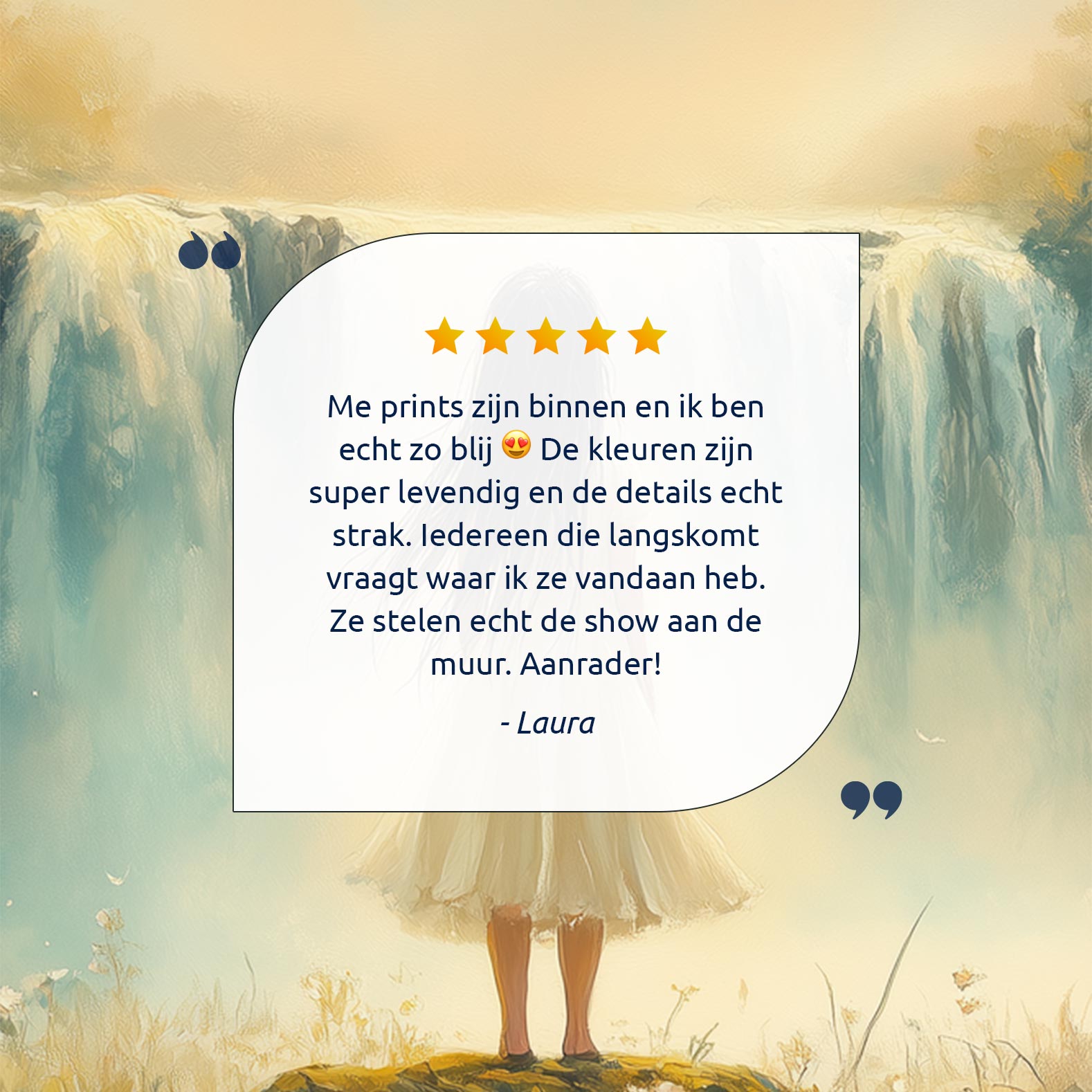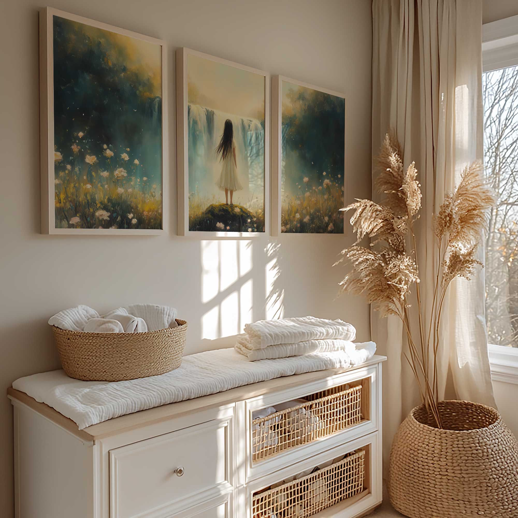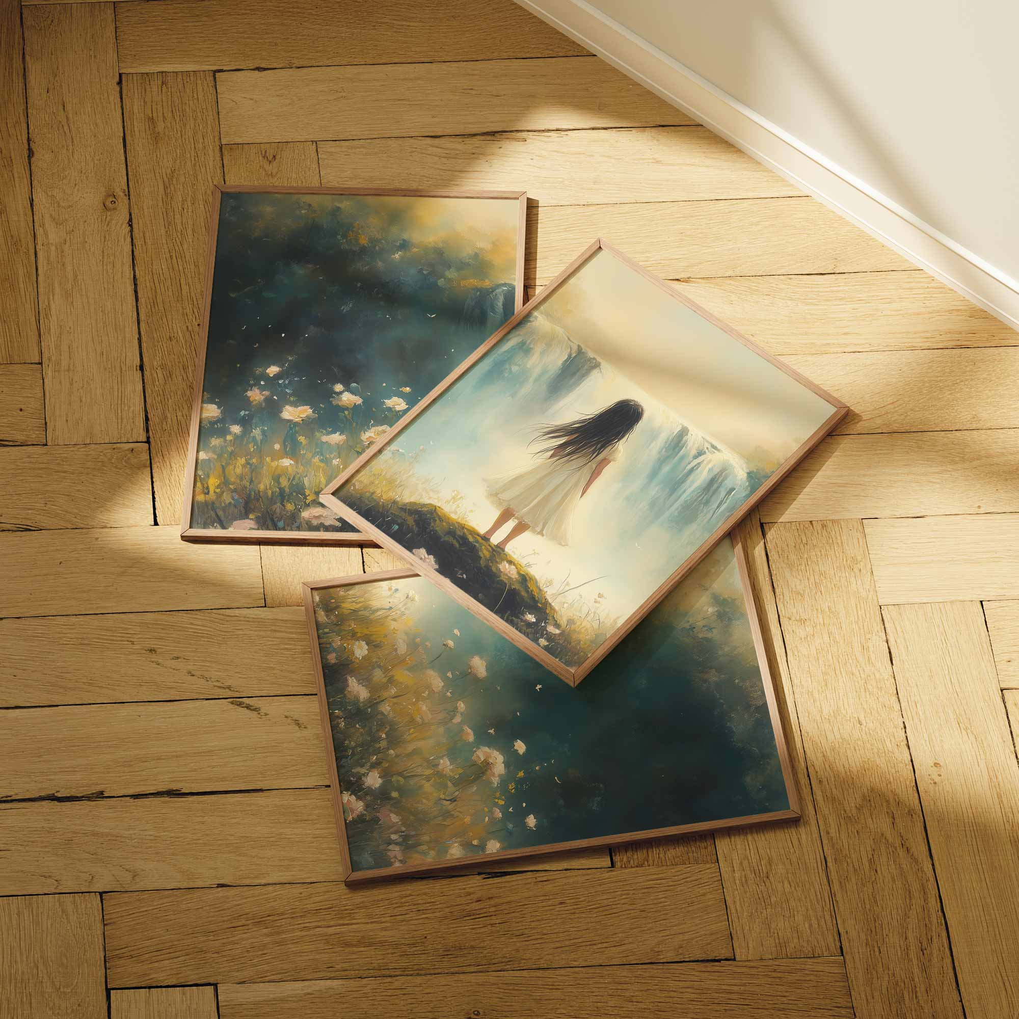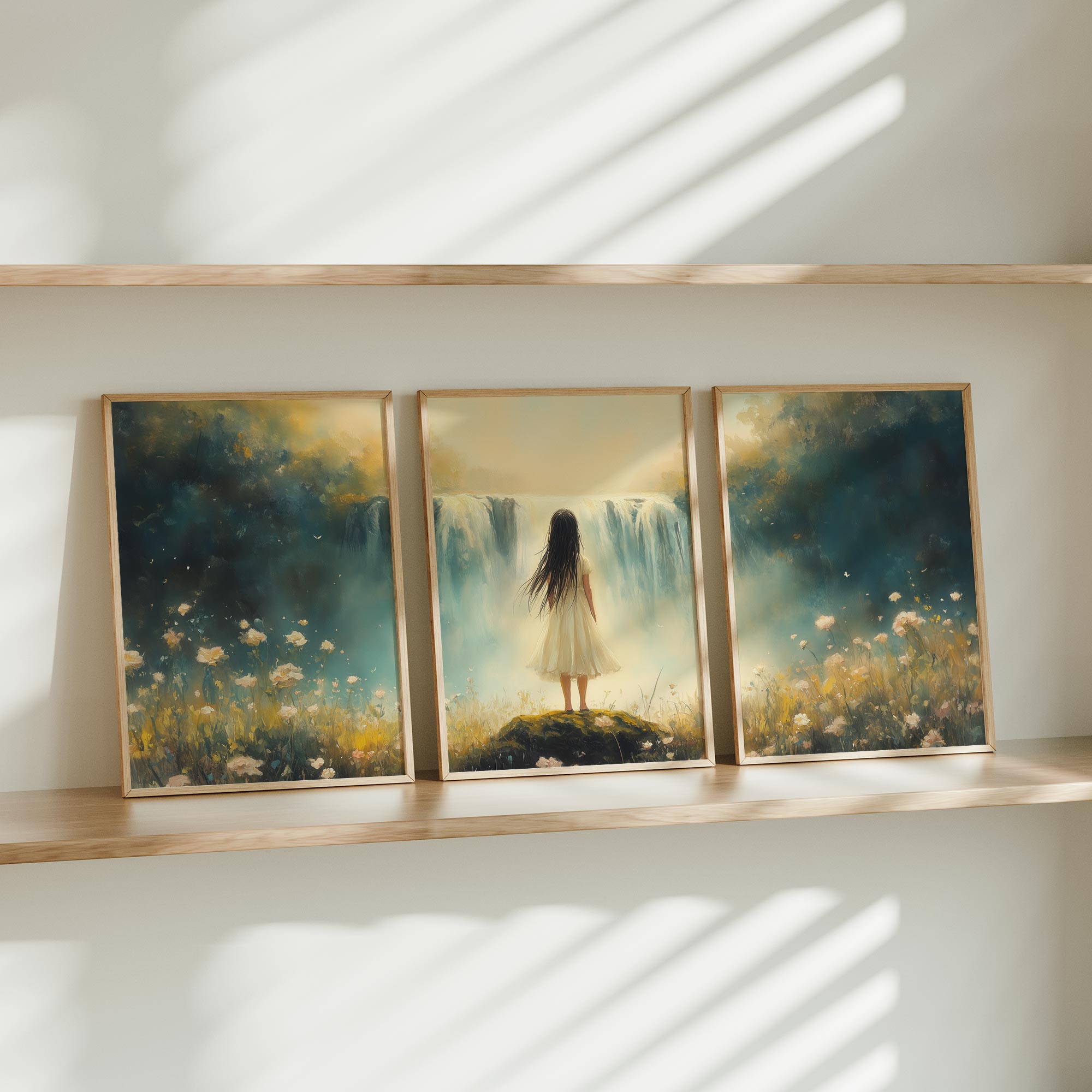 Zachte Dromen: Meisje bij Waterval in Bloemenveld