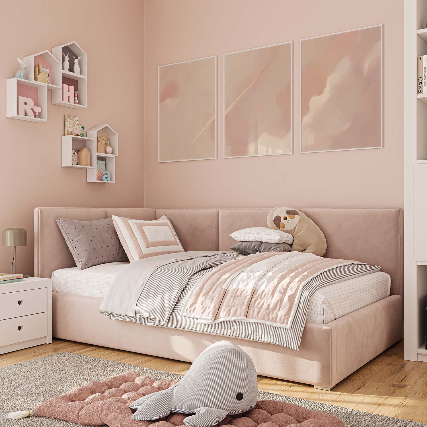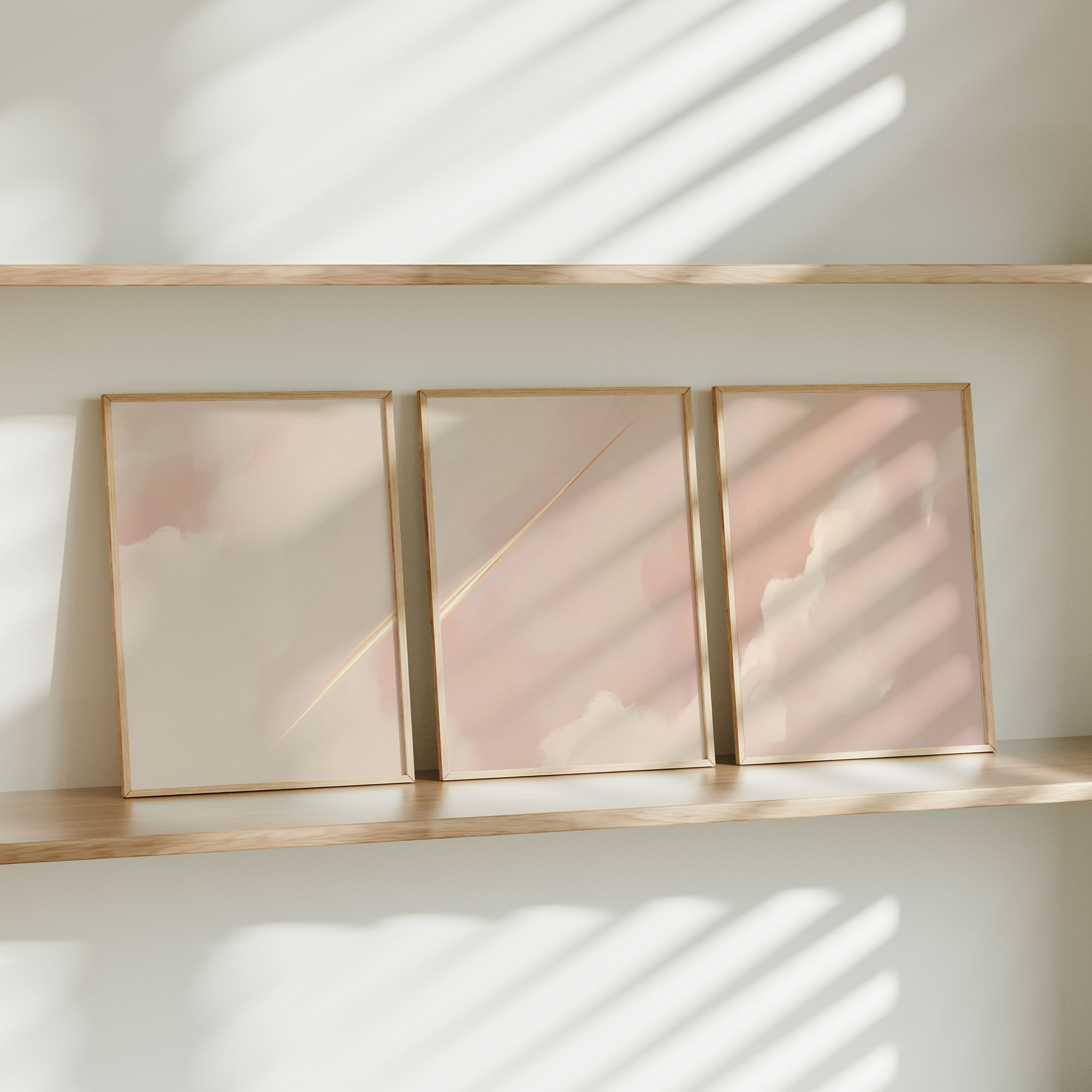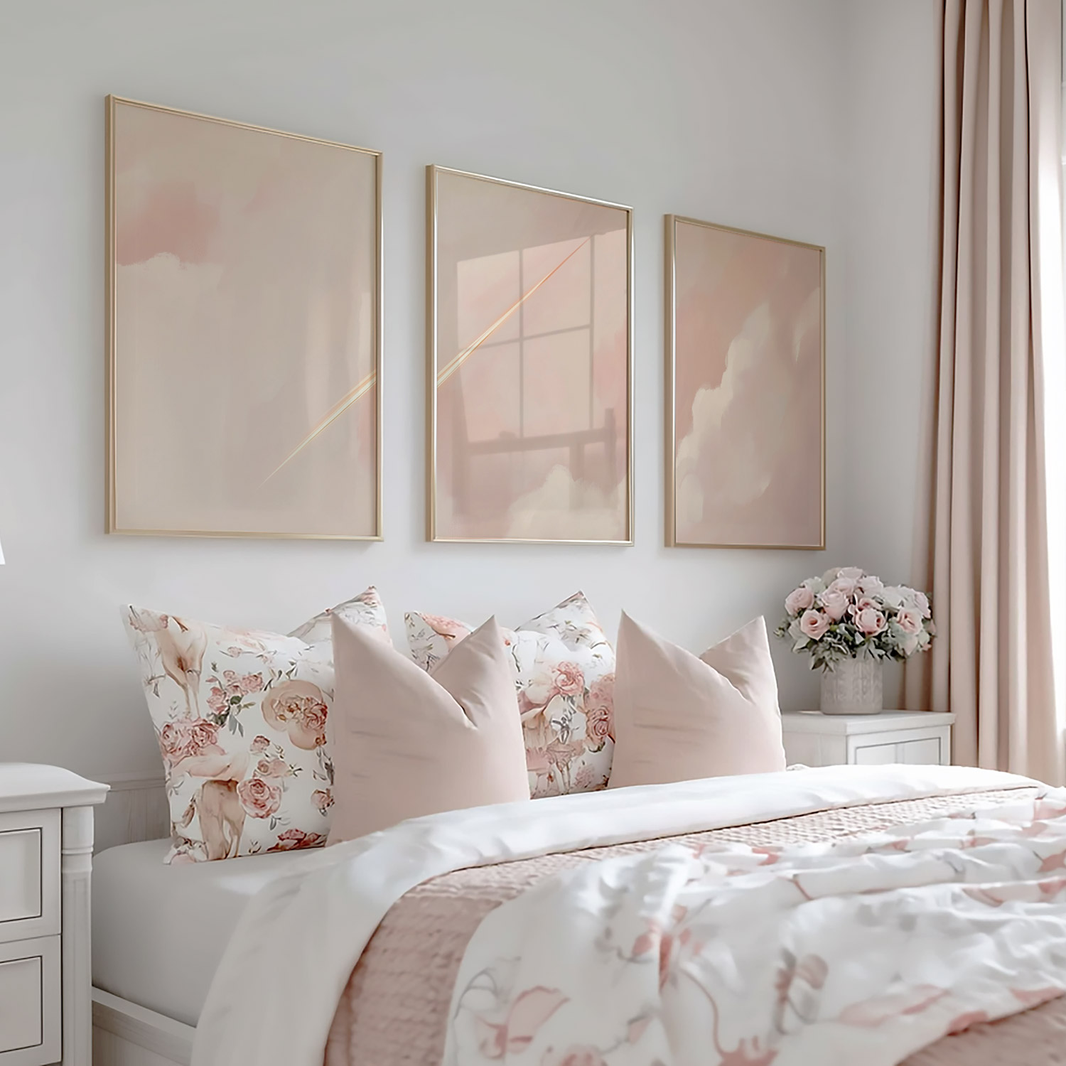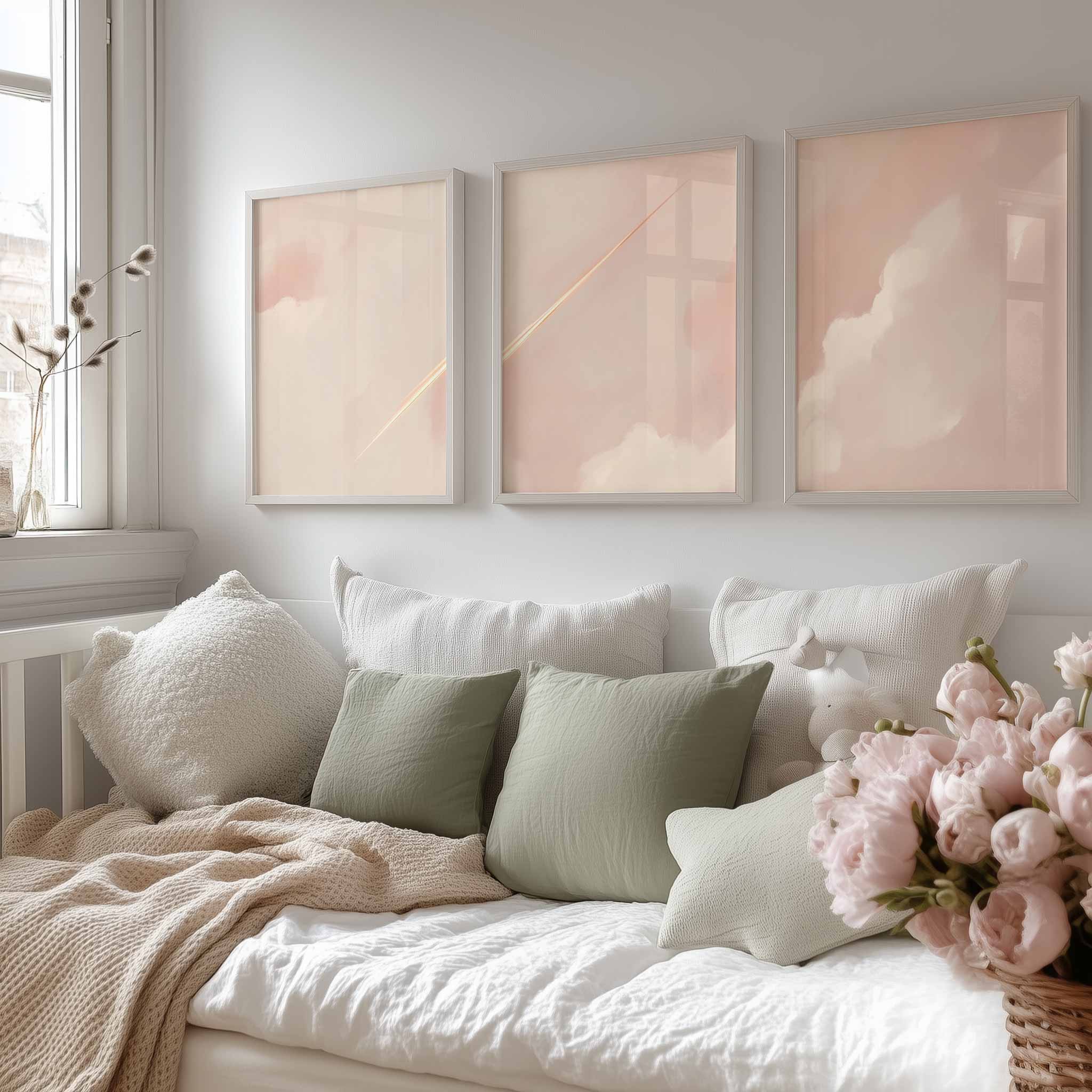 Zachte Dromen: Roze en Witte Sereniteit met Speelse Lijnen