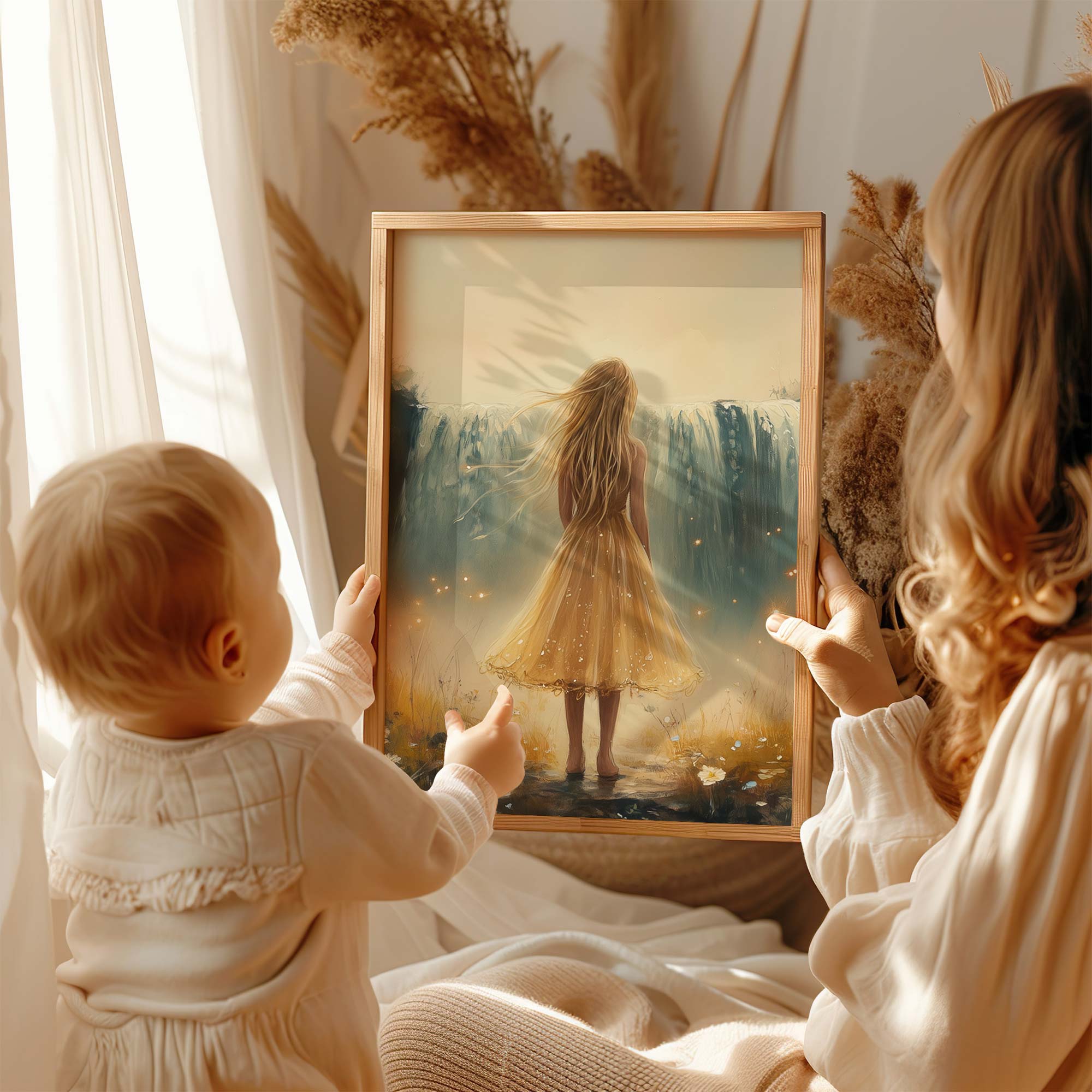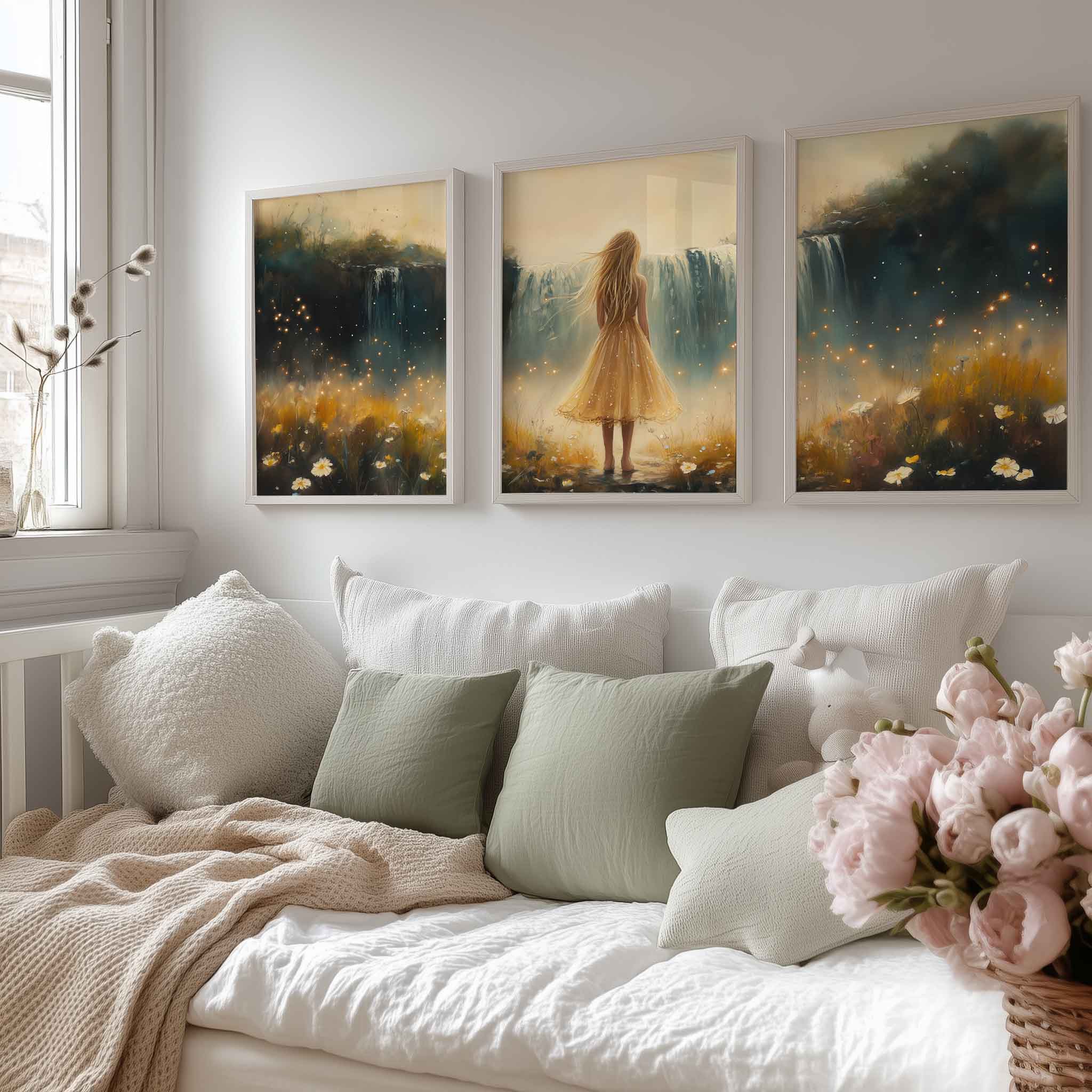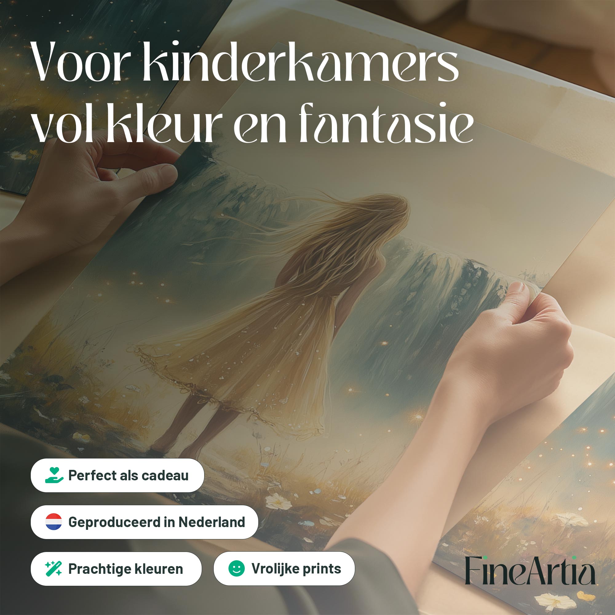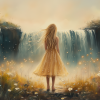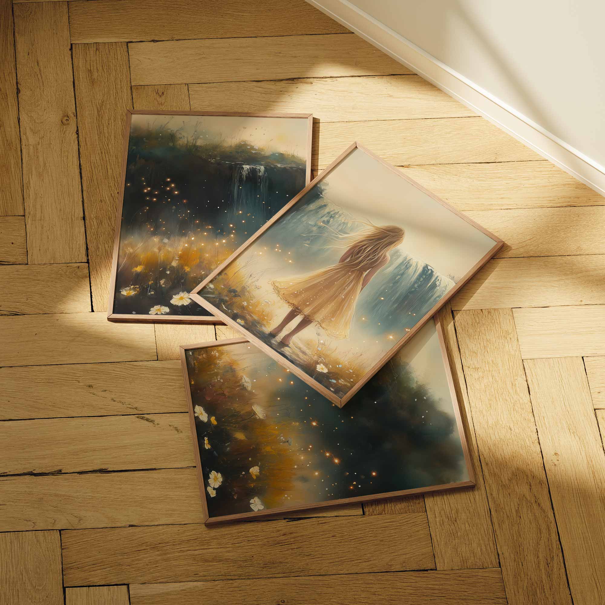 Terug naar collectie Posters Zachte Dromen: Vrouw bij Waterval en Bloemenveld