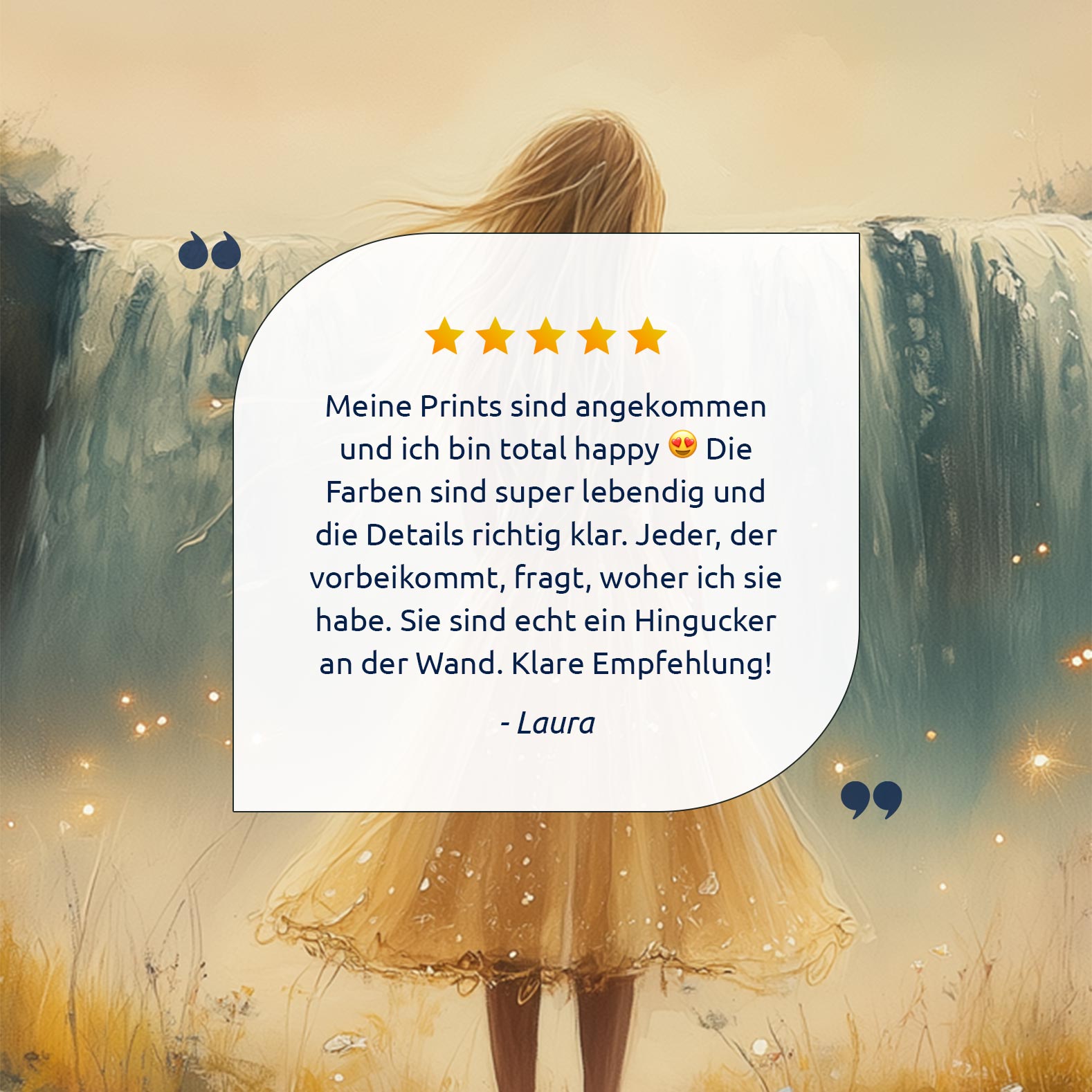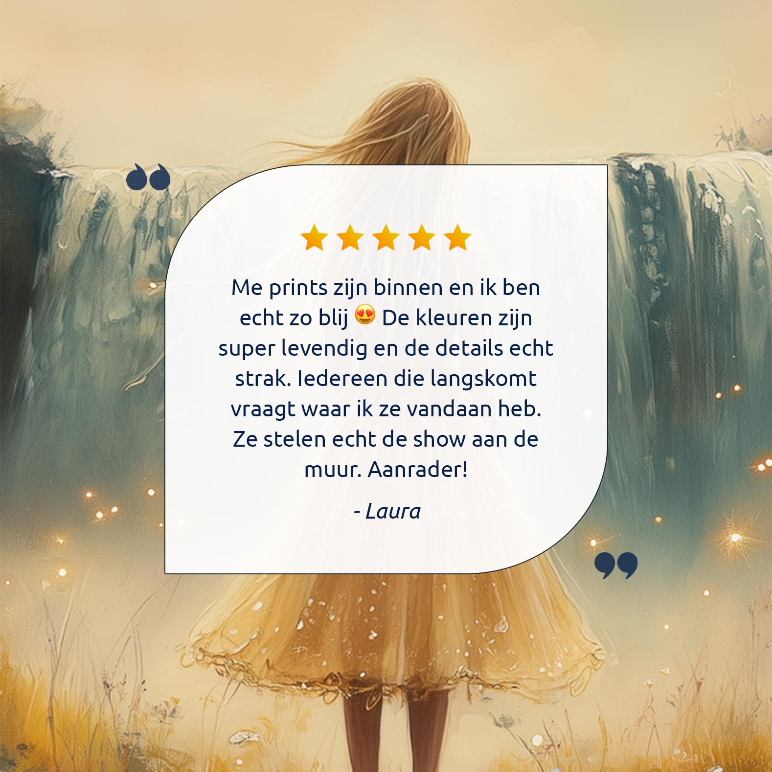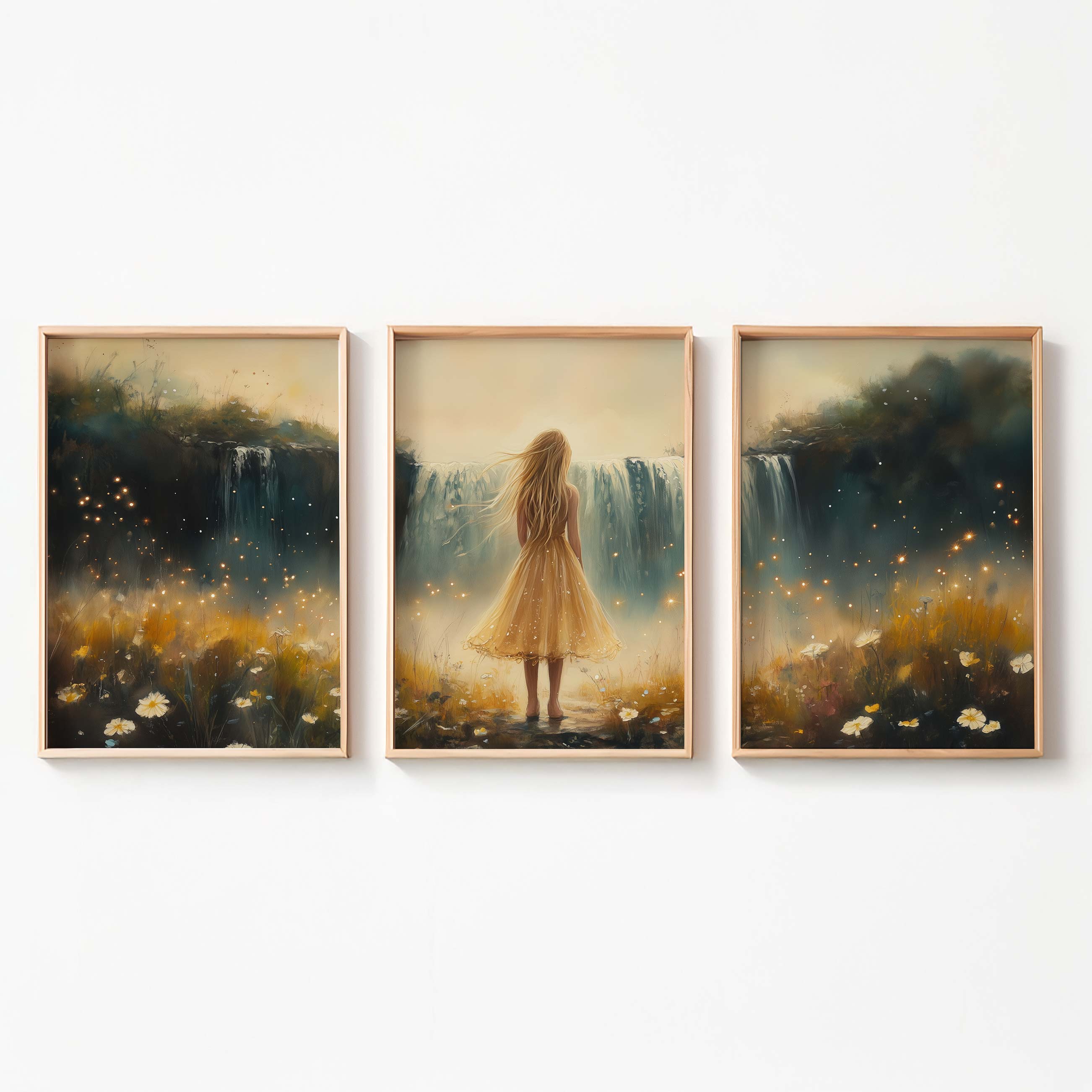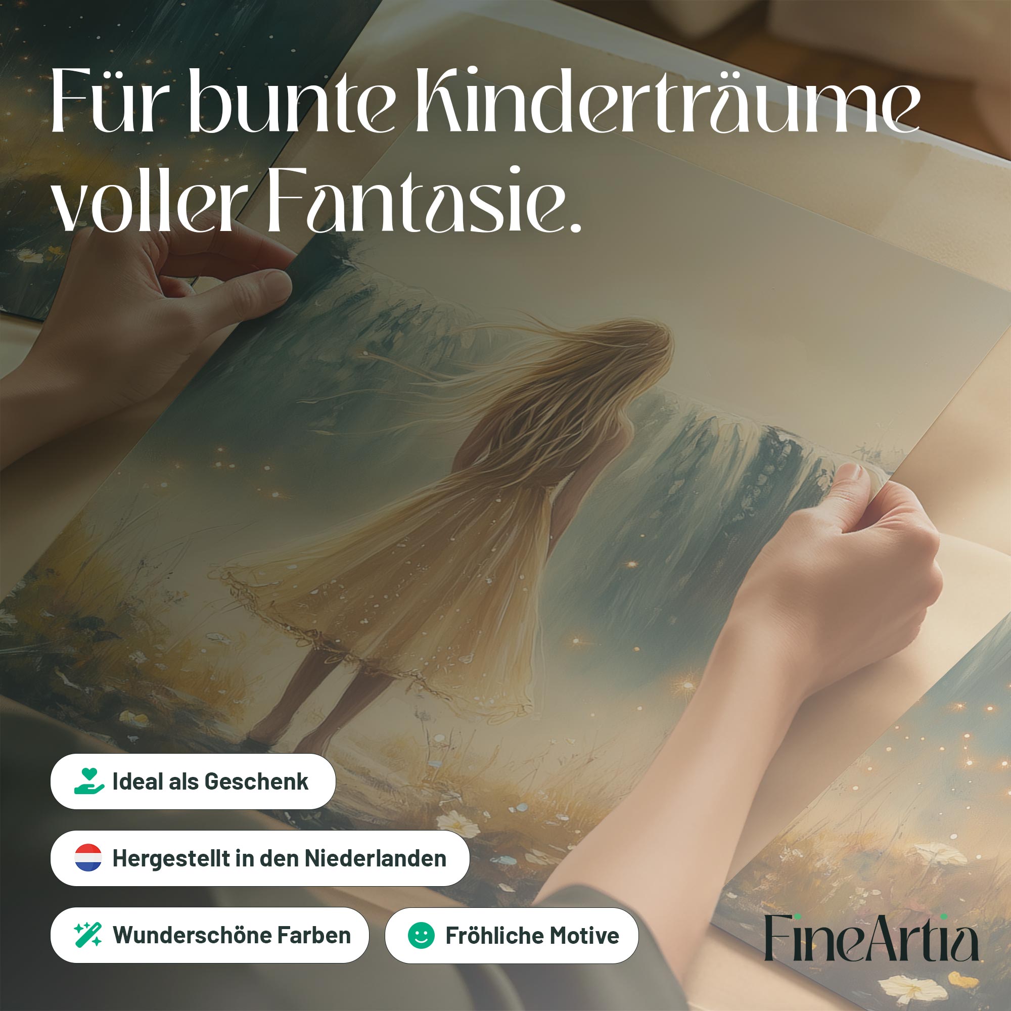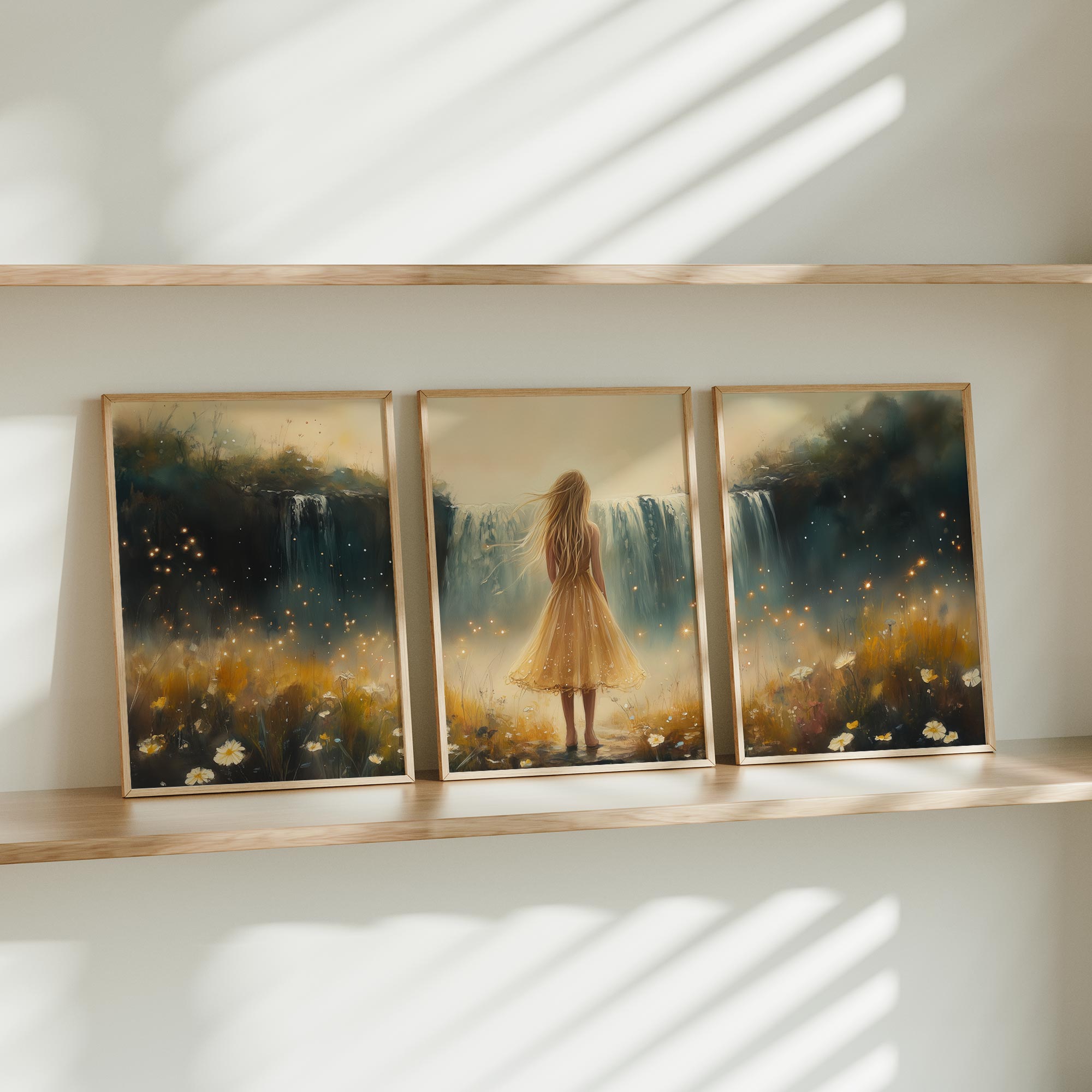 Terug naar collectie Posters Zachte Dromen: Vrouw bij Waterval en Bloemenveld