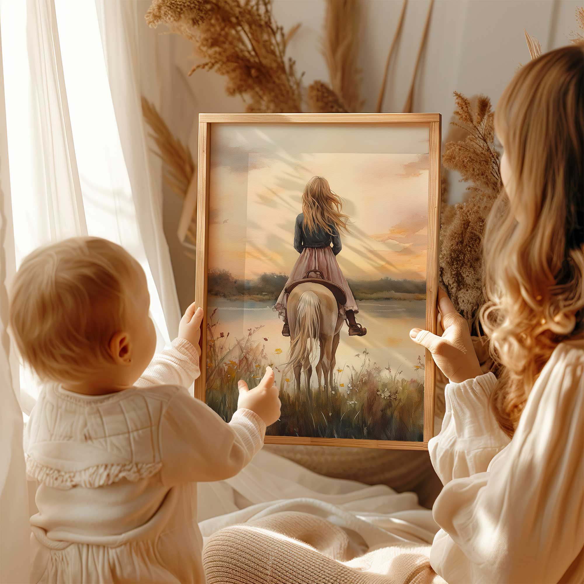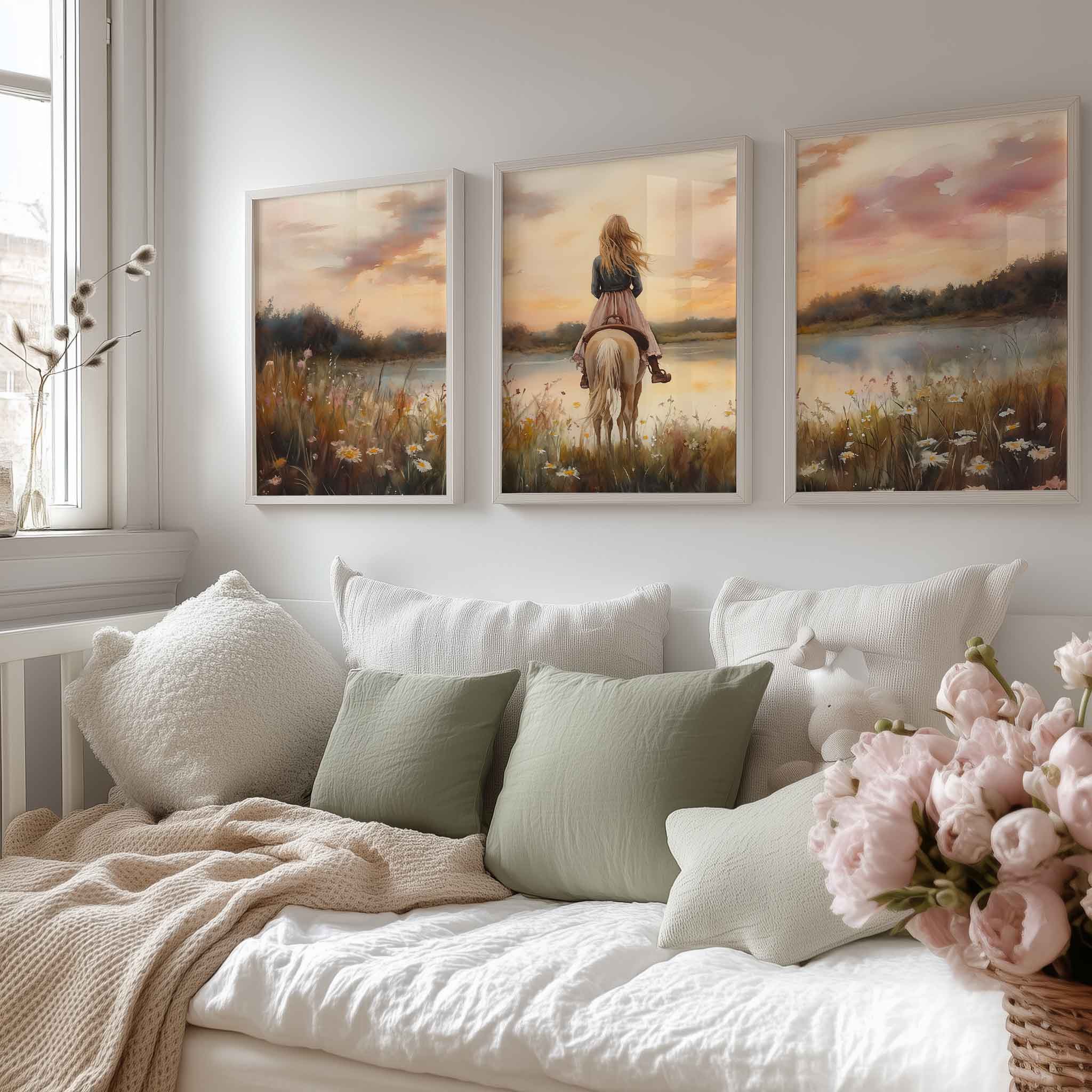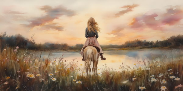 Zachte Dromen: Vrouw en Paard in Bloemenveld