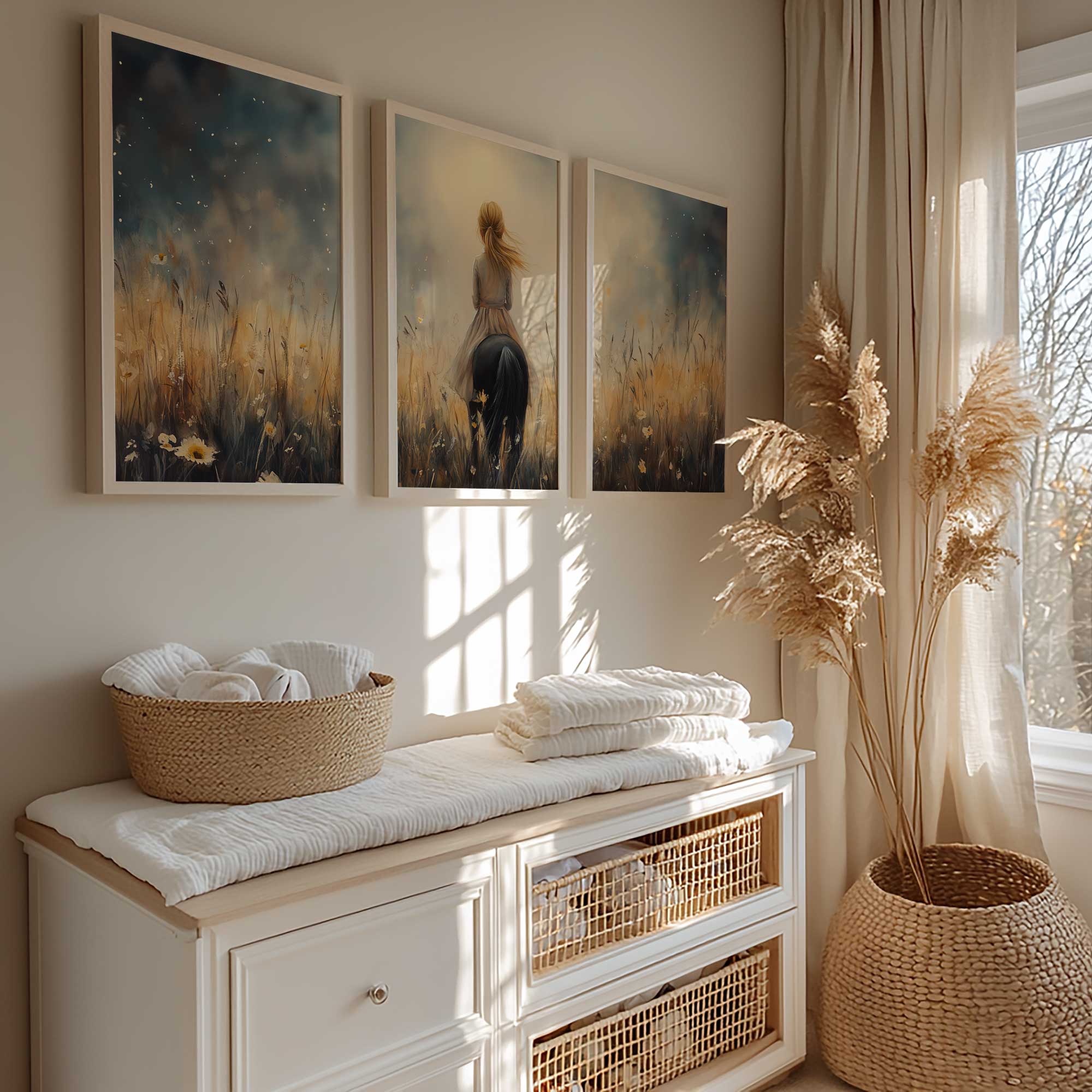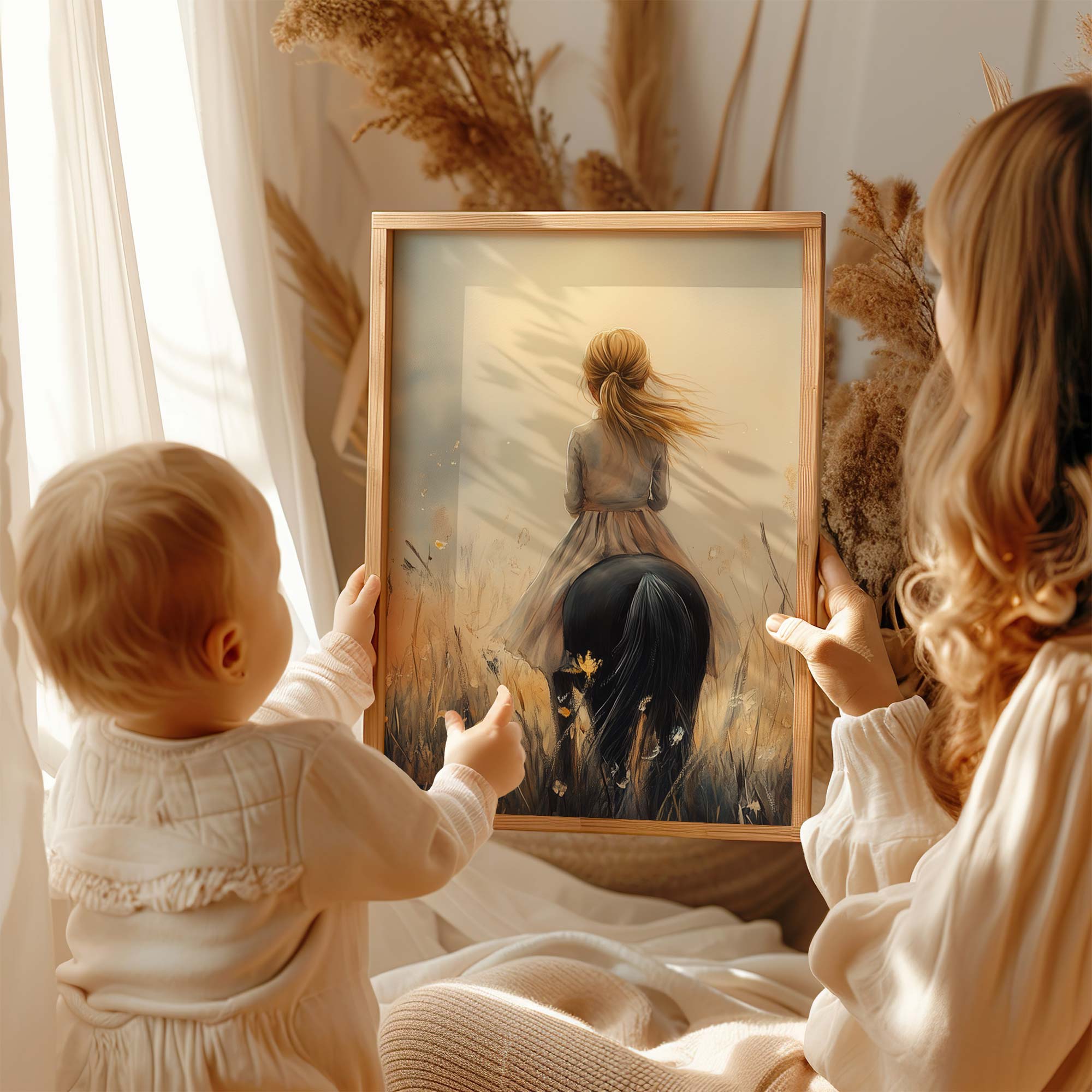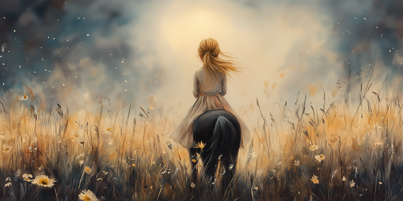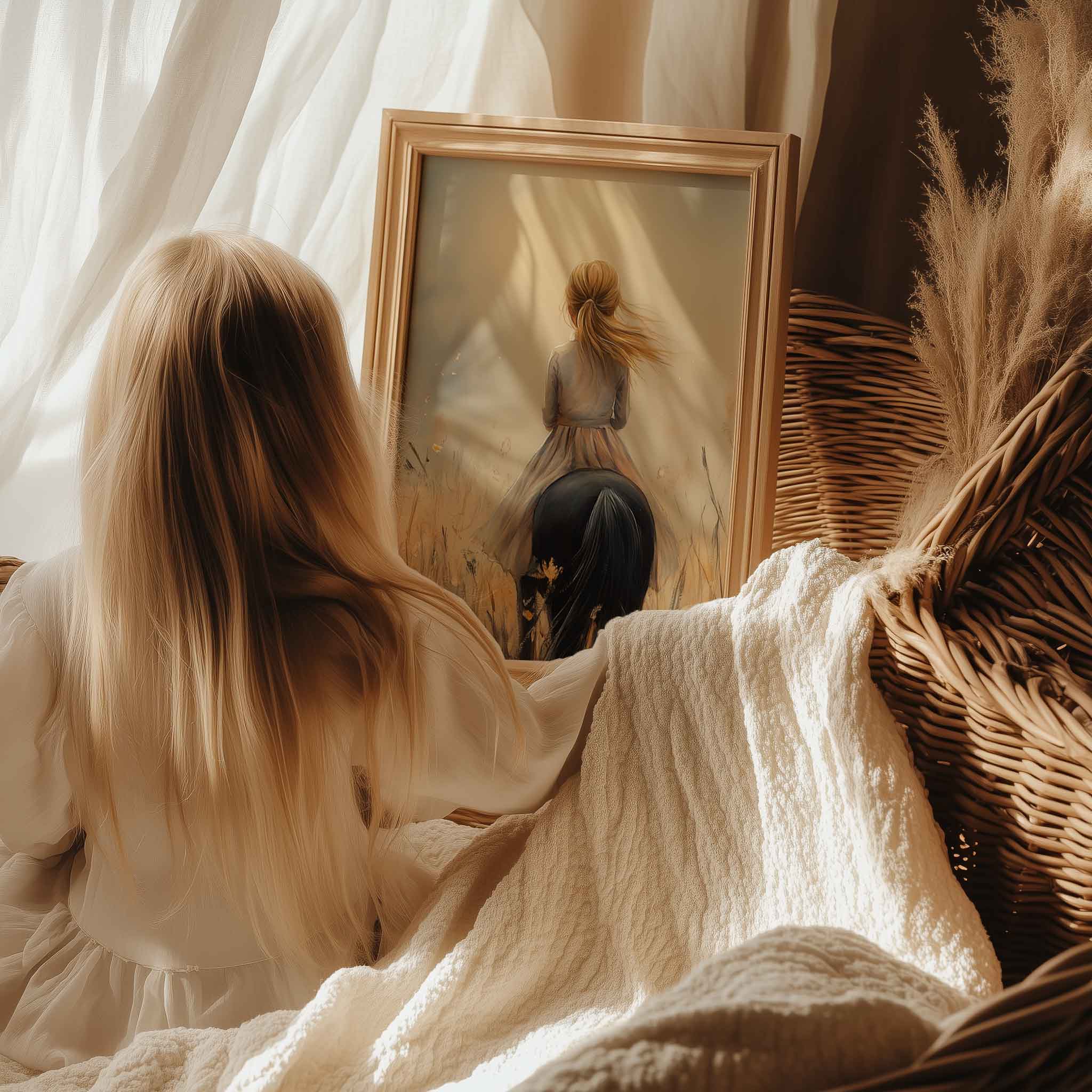 Zachte Dromen: Vrouw te Paard in Pastel Pracht