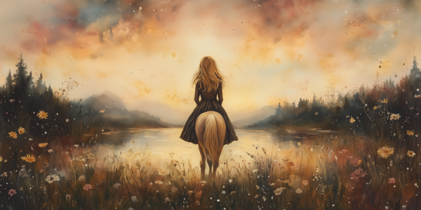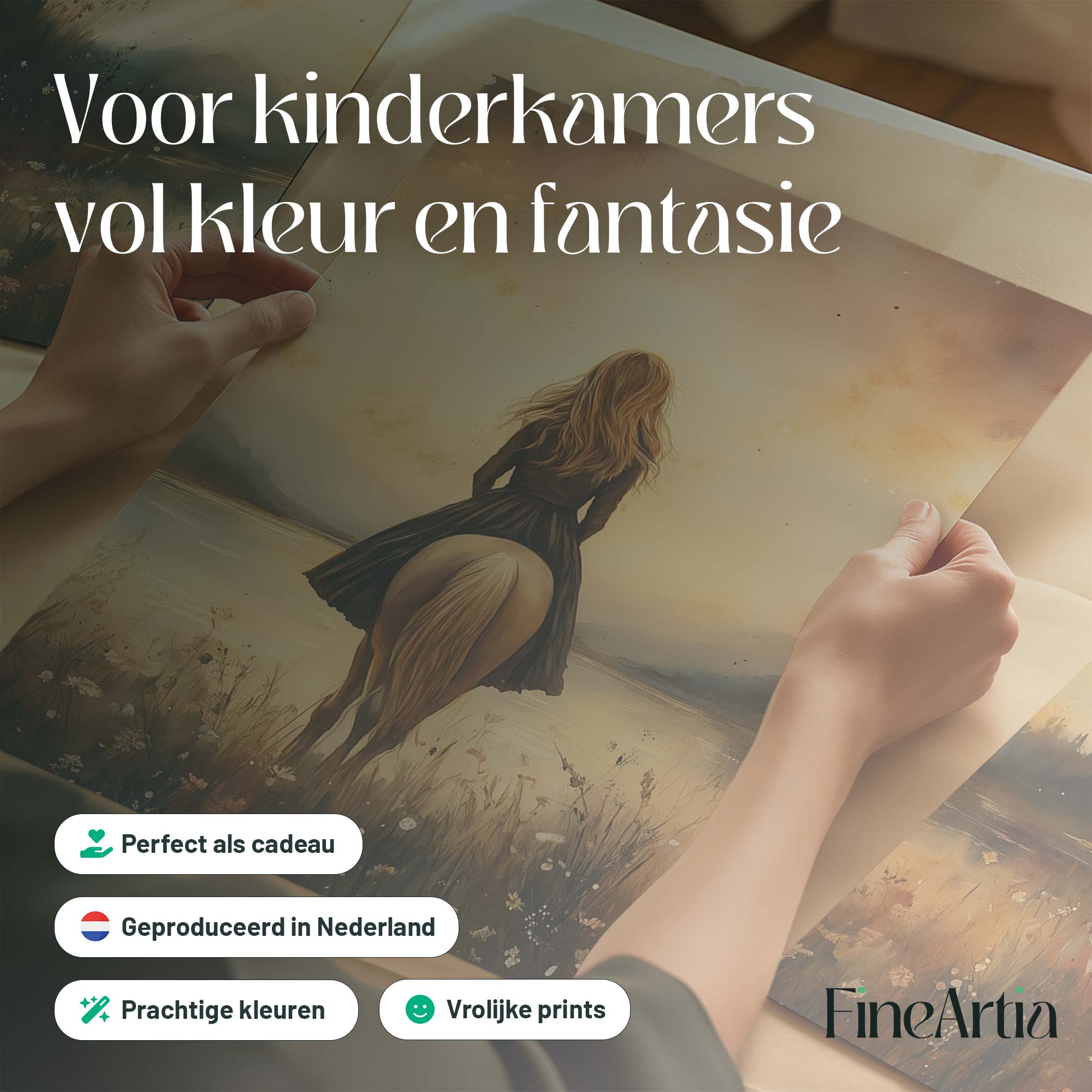 Zachte Droom: Vrouw te Paard in Bloemenveld
