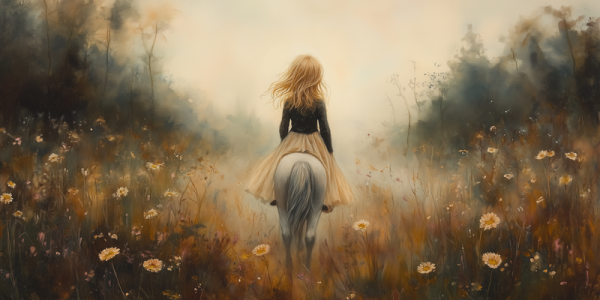 Zachte Droom: Vrouw te Paard in Bloemenveld