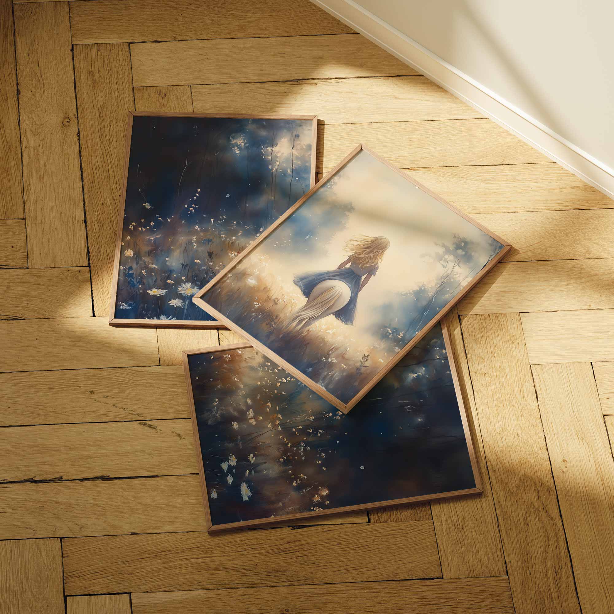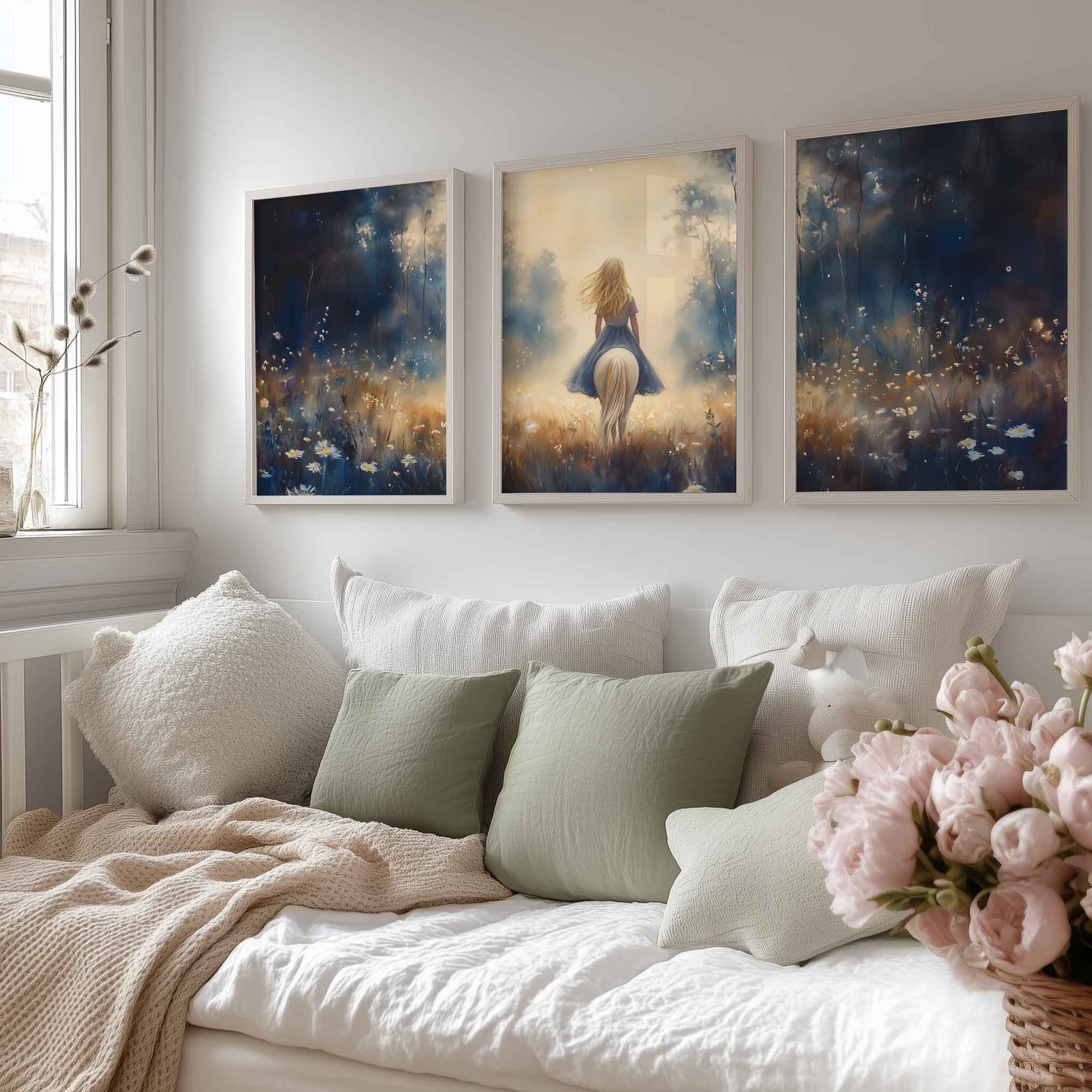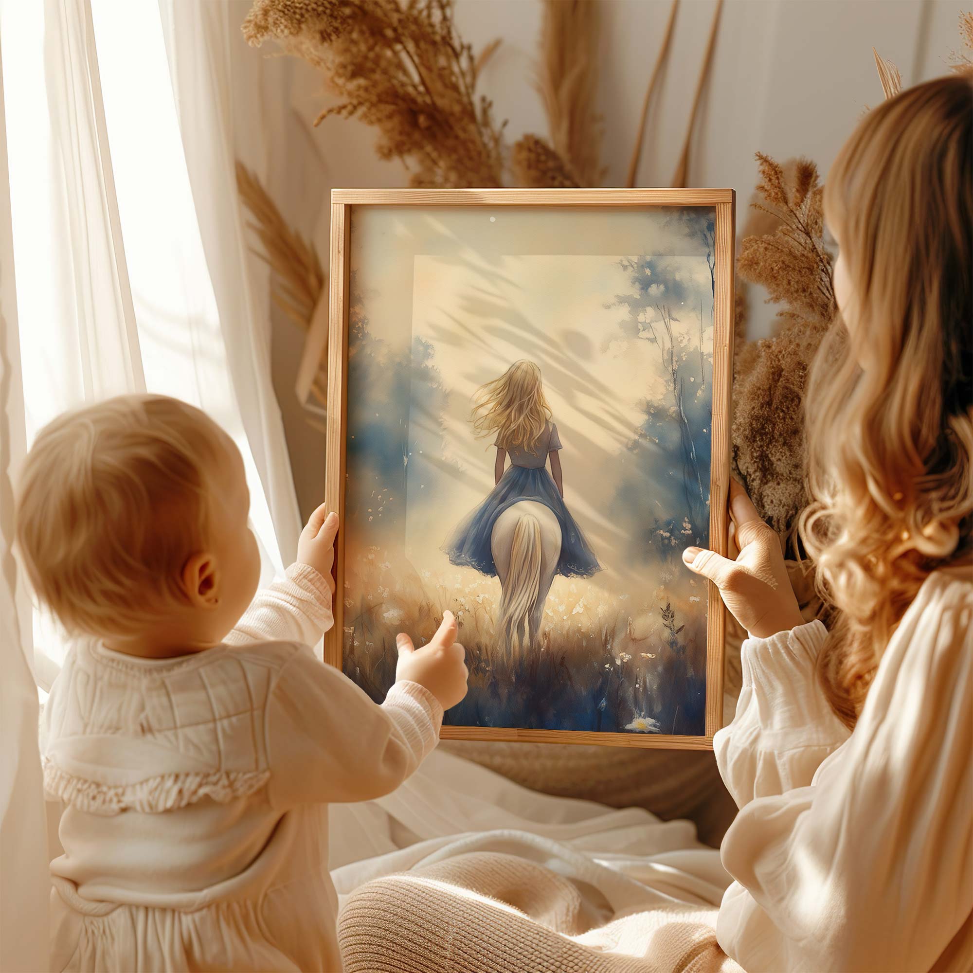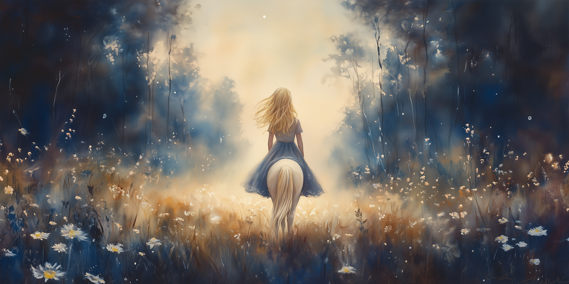 Zachte droomrit door bloemenveld in pastel