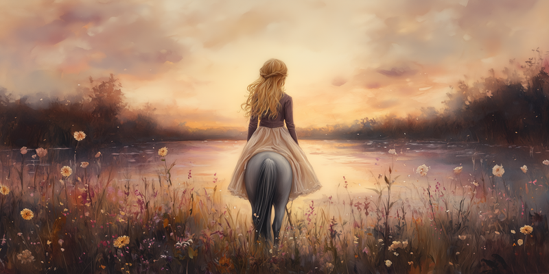 Zachte Droomrit door een Bloemenveld