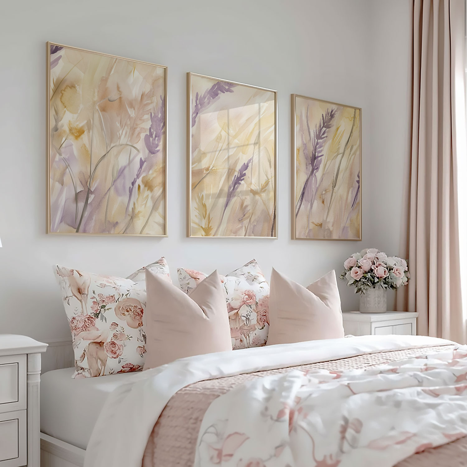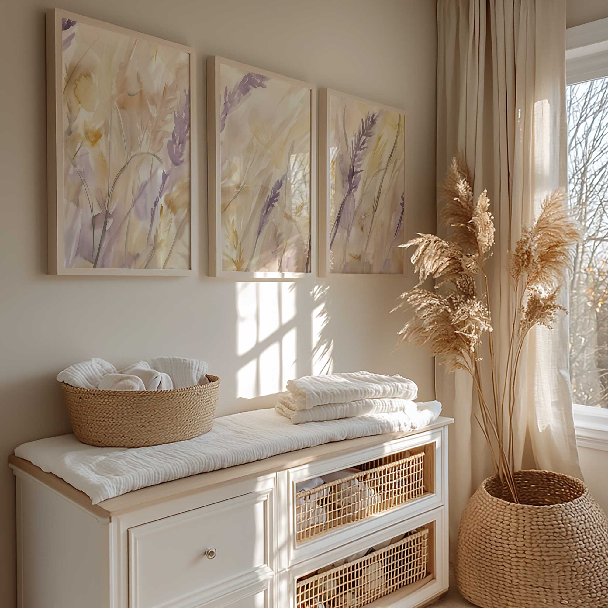 Zachte Lavendelvelden – Dromerige Waterverf Wanddecoratie