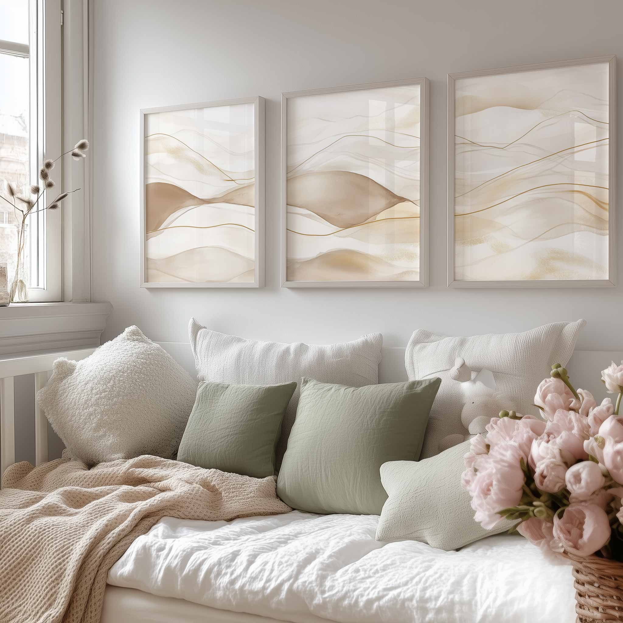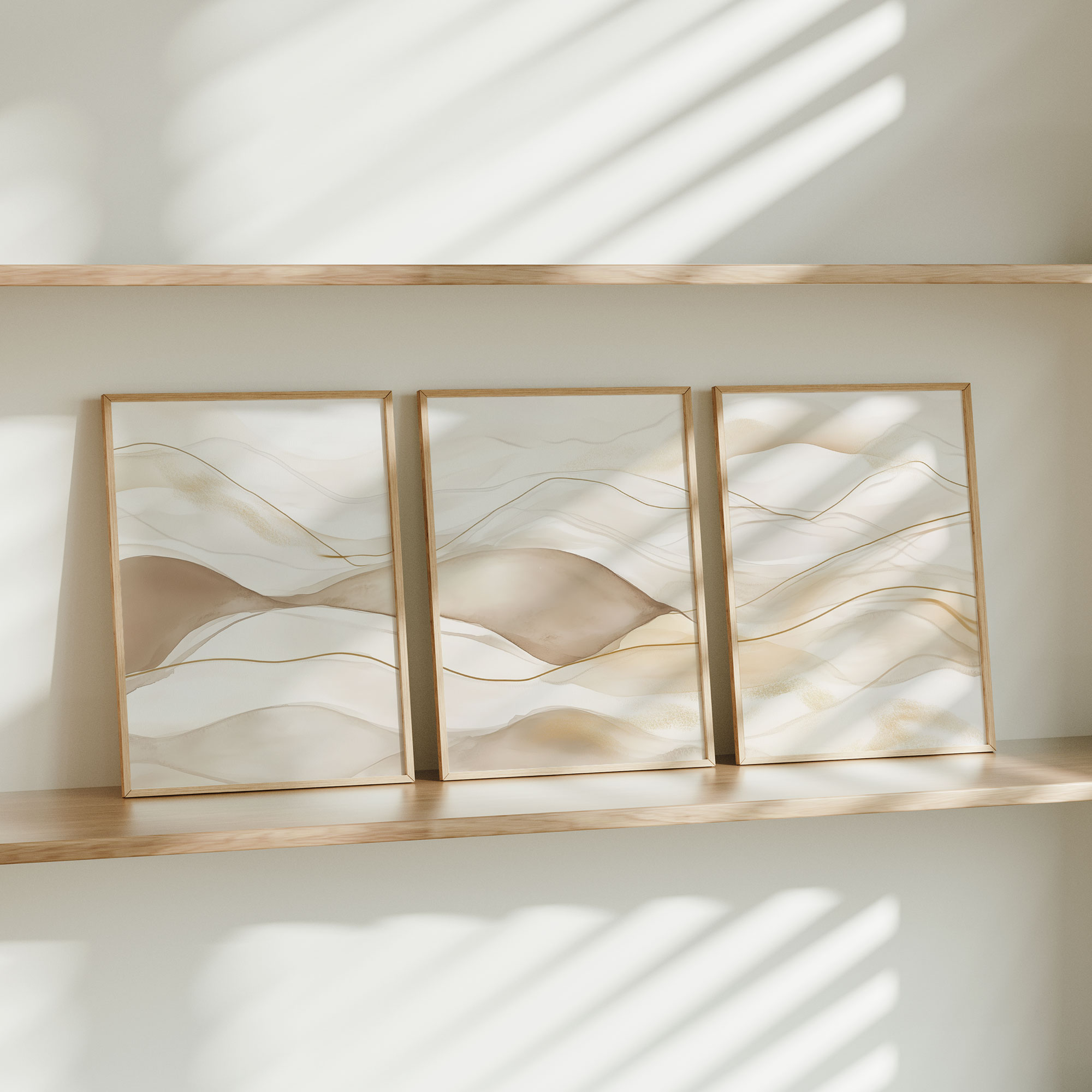 Zachte Lijnen van Sereniteit – Abstracte Bergen in Beige