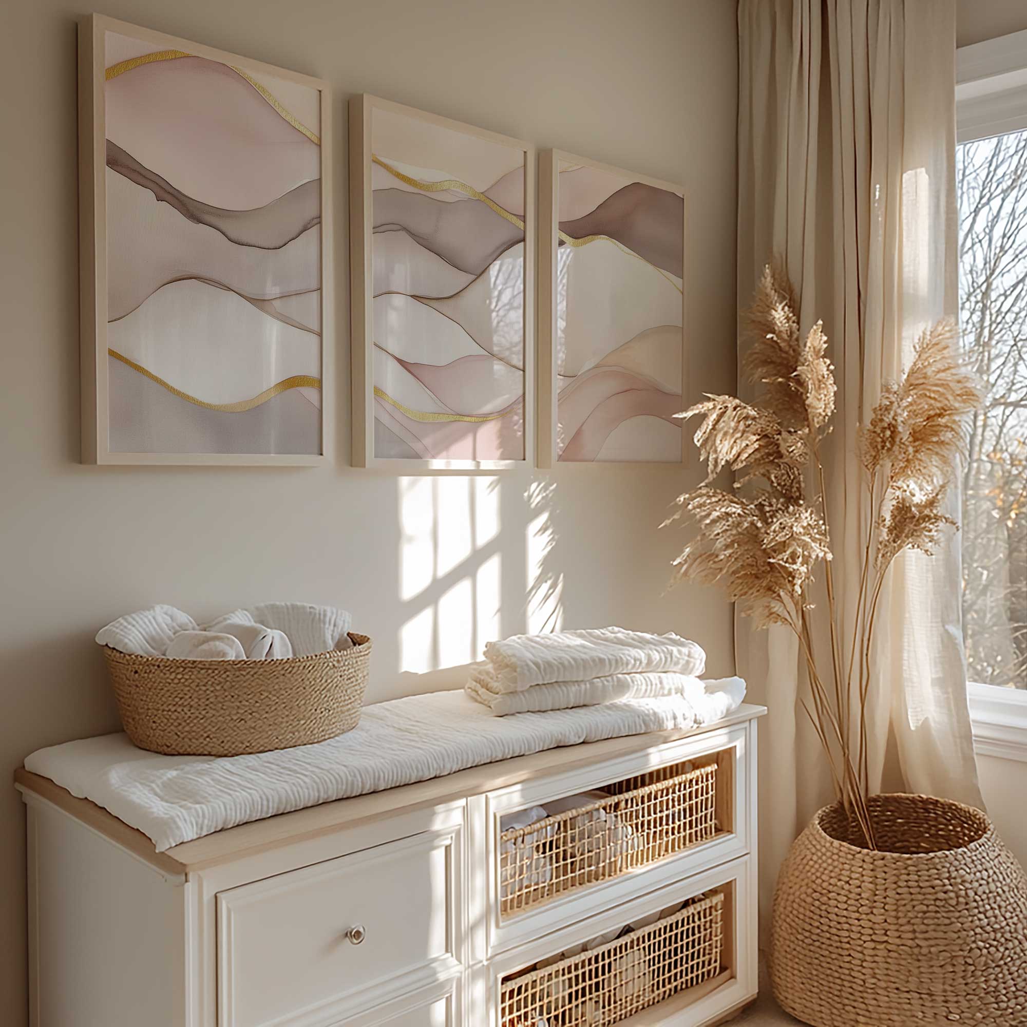 Zachte Pastelgolven: Speelse Elegantie in Roze en Beige
