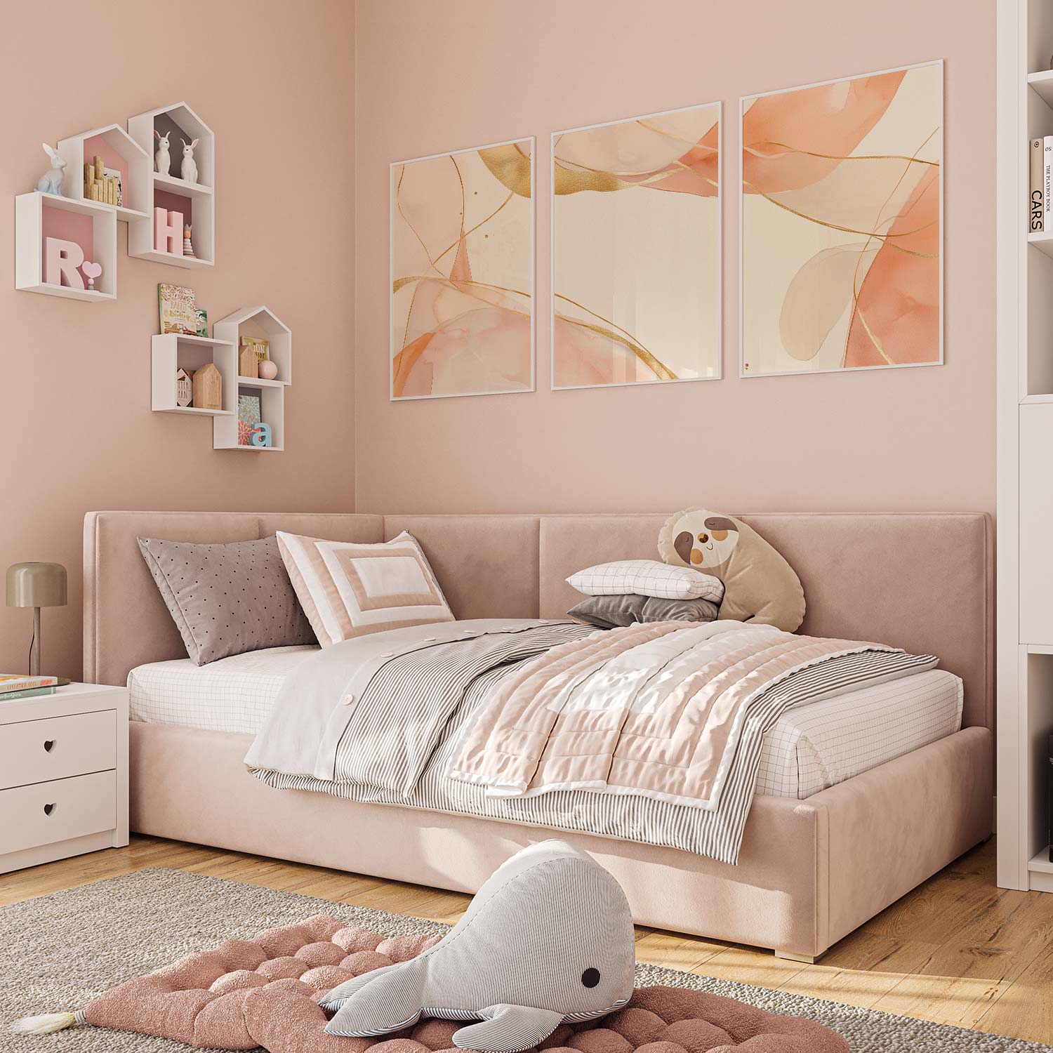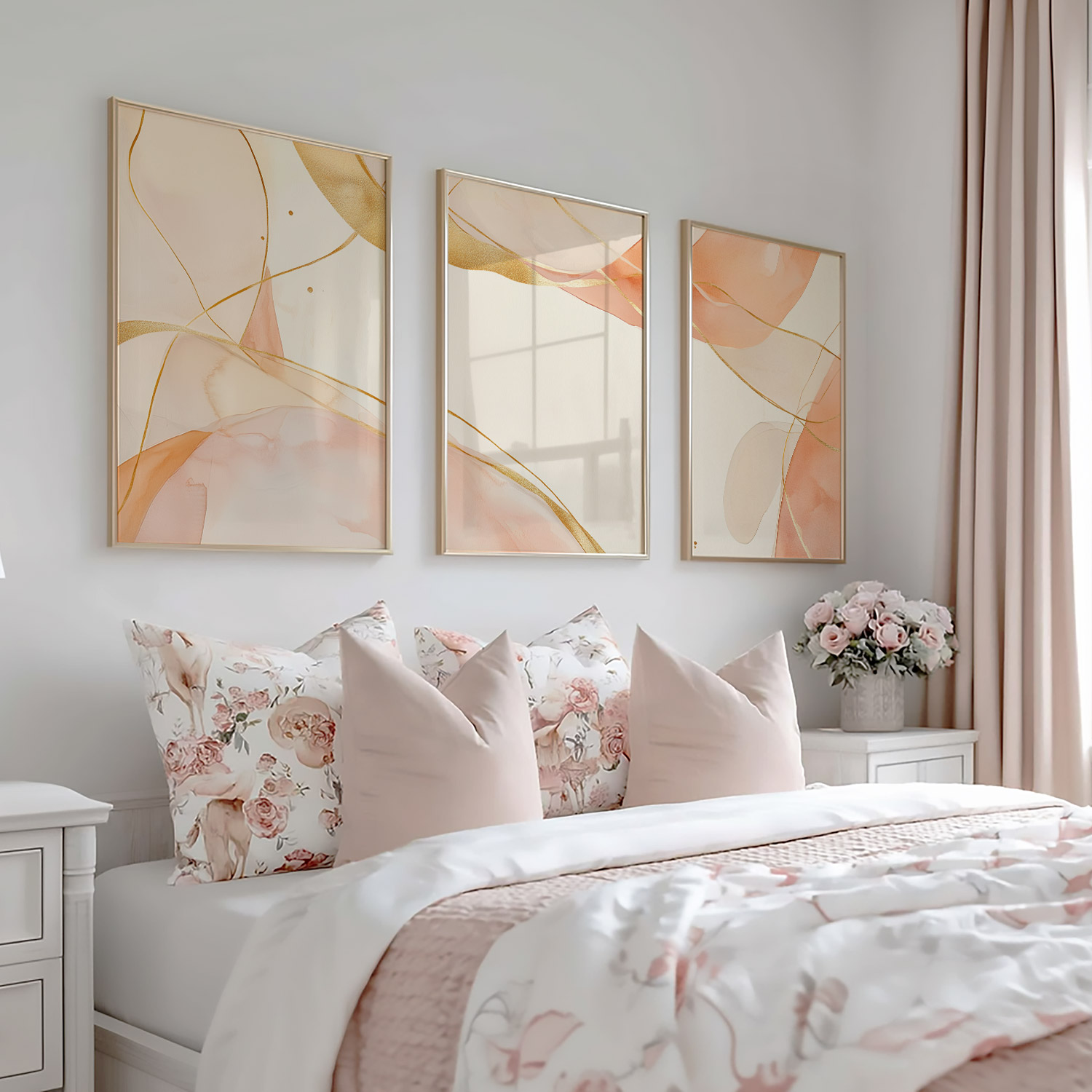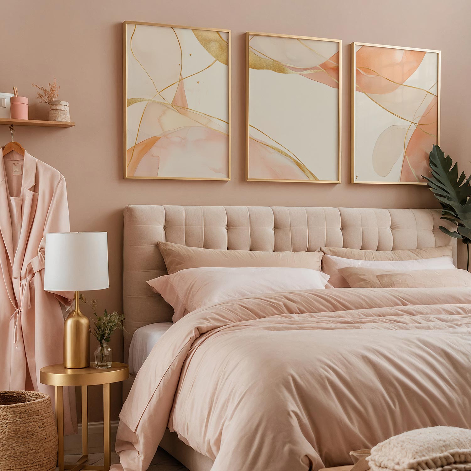 Zachte Peachtinten en Gouden Lijnen – Speelse Sereniteit